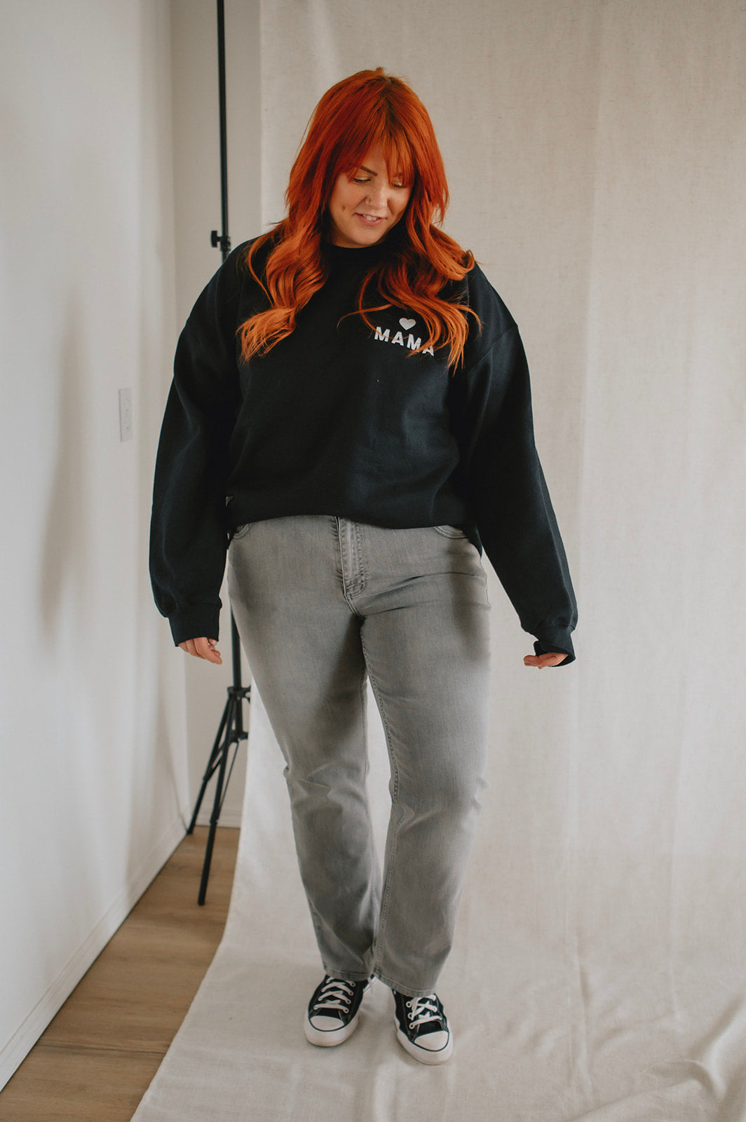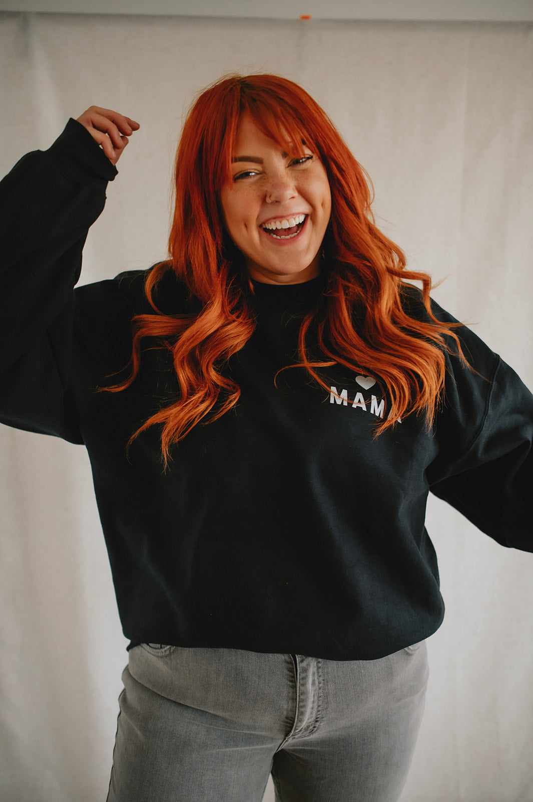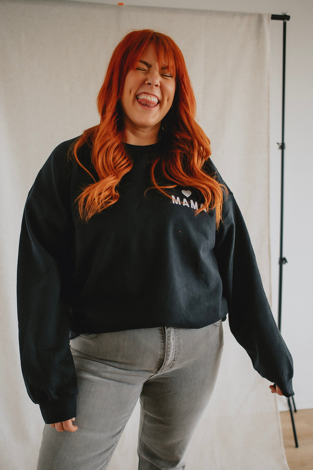 Calling all sweatshirt lovers! This heavyweight crew neck sweatshirt has a classic cut with long sleeves and a perfect relaxed/unisex feel. Finished off with the cutest Mama and heart graphic on the chest, this is a great gift for a Mama in your life or for yourself!