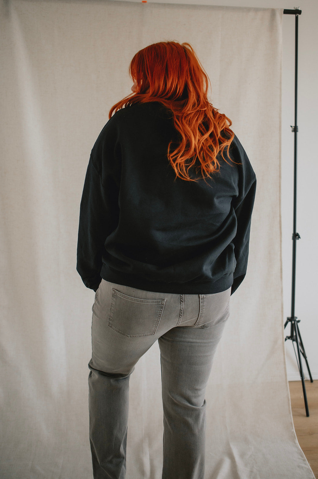 - True to size, as a unisex sweatshirt. If you’d like a more form fitting style, go down one size. Up one size for an extra oversized fit.
