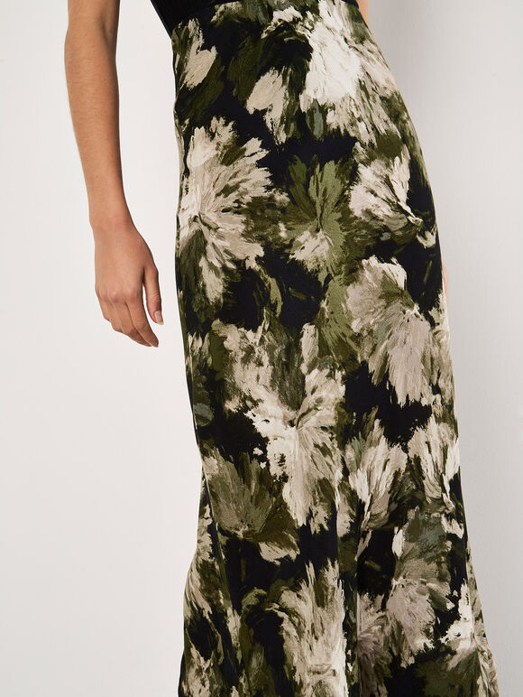 Lightweight and woven, this floaty maxi skirt features a painterly floral print and an elastic waist for a comfortable fit. Style yours with a chunky knit and leather boots to complete the look.