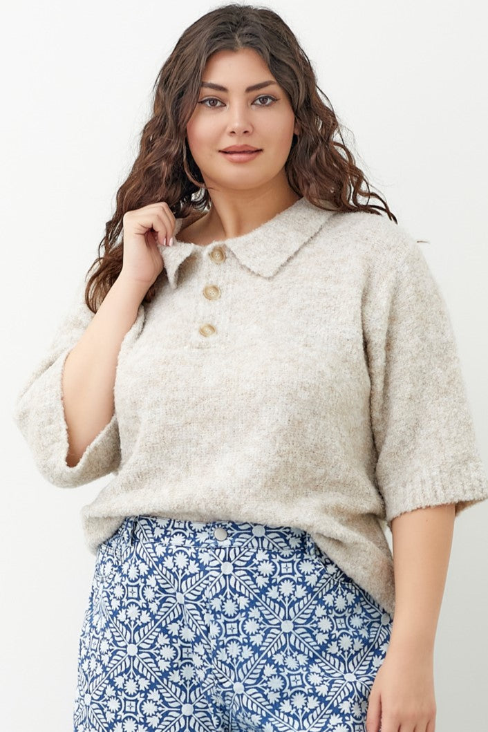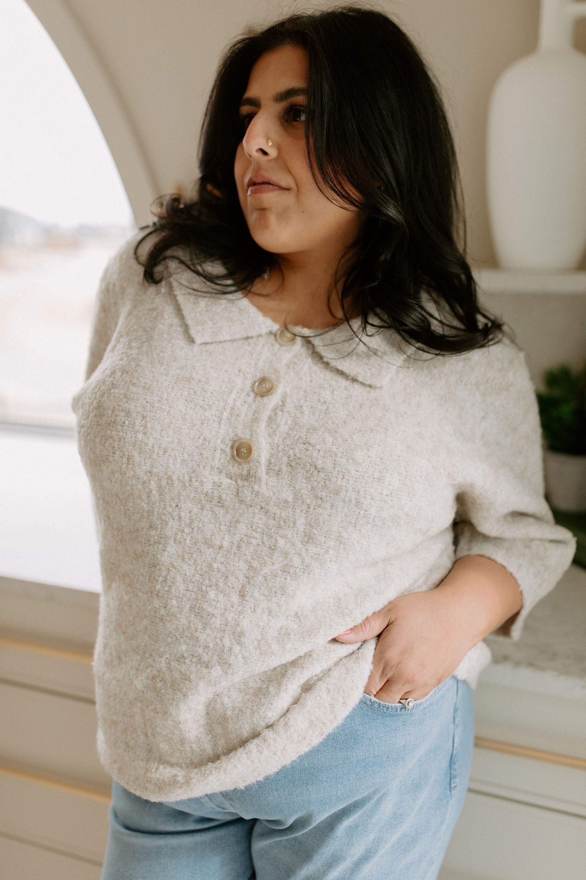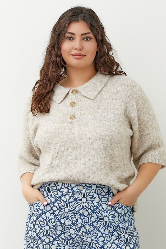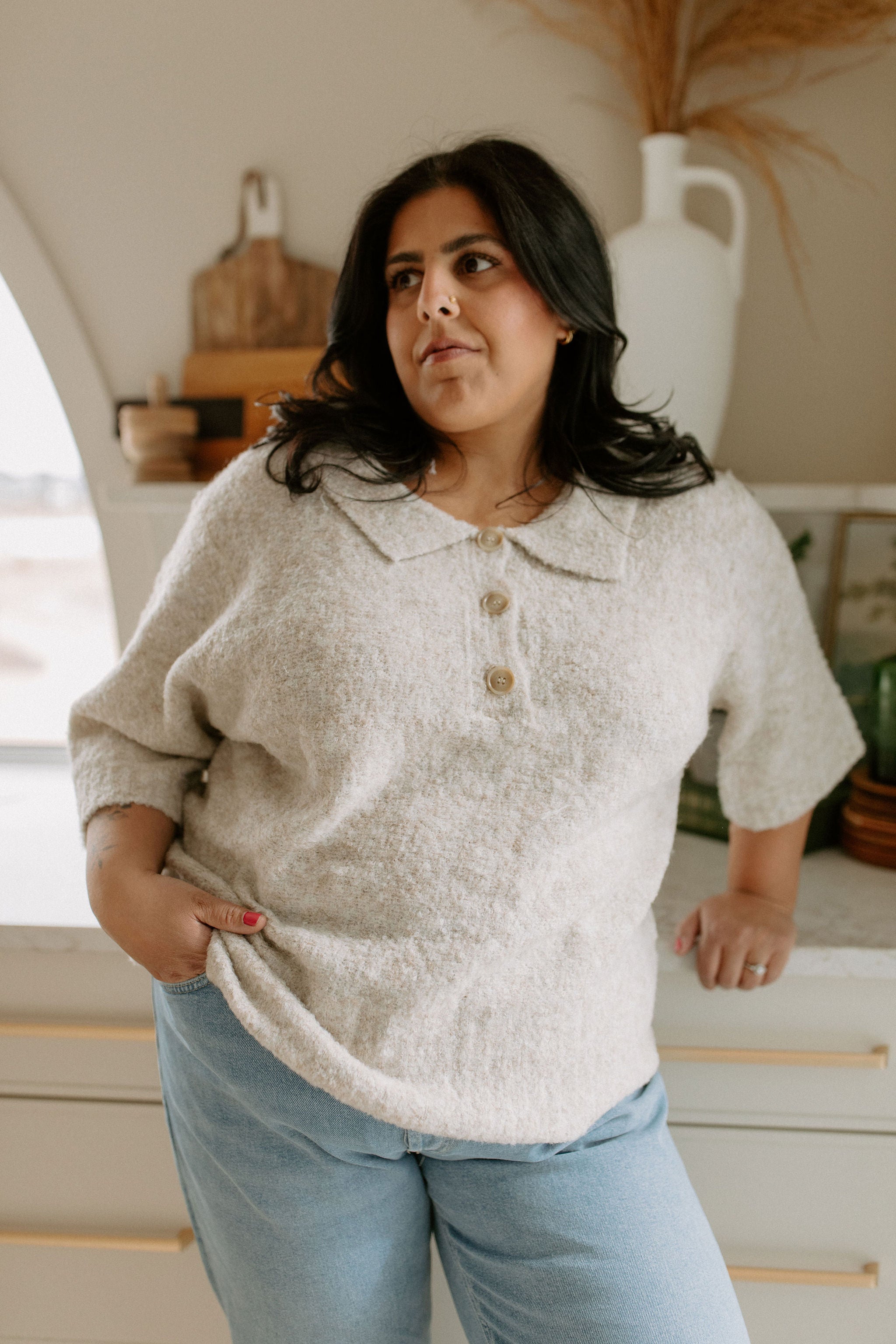 The Tori Boucle Polo Top - Oatmeal - PLUS
