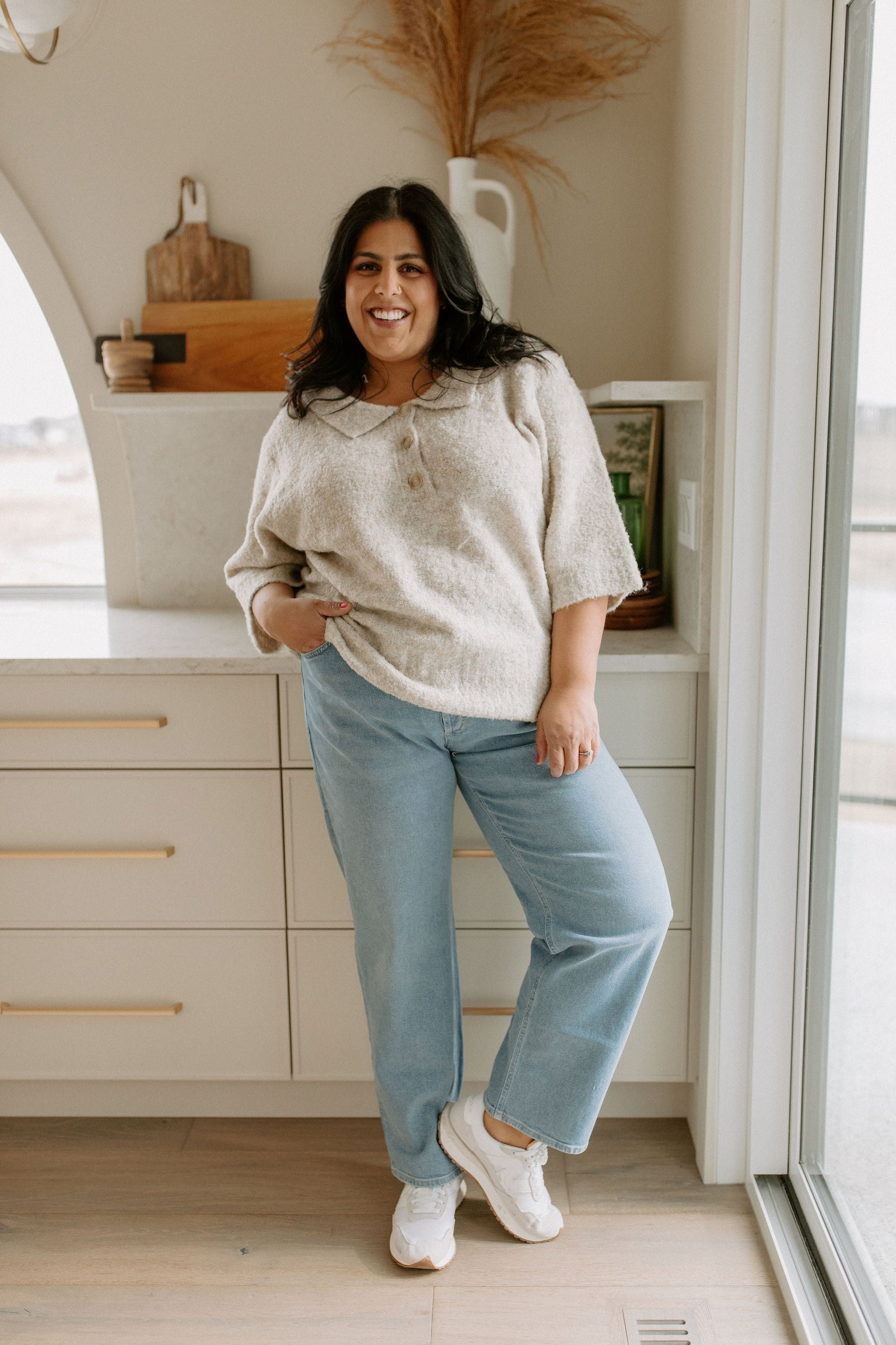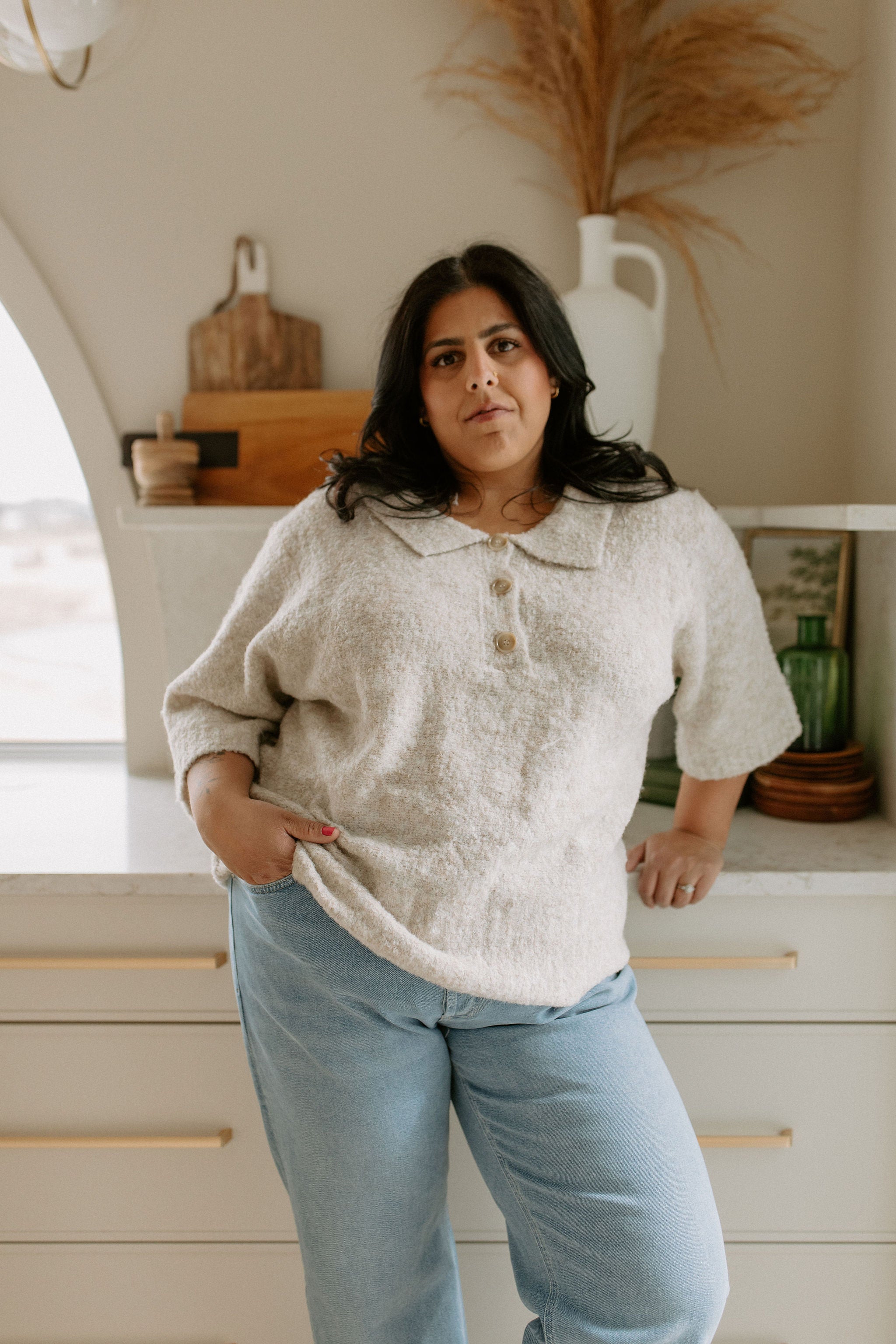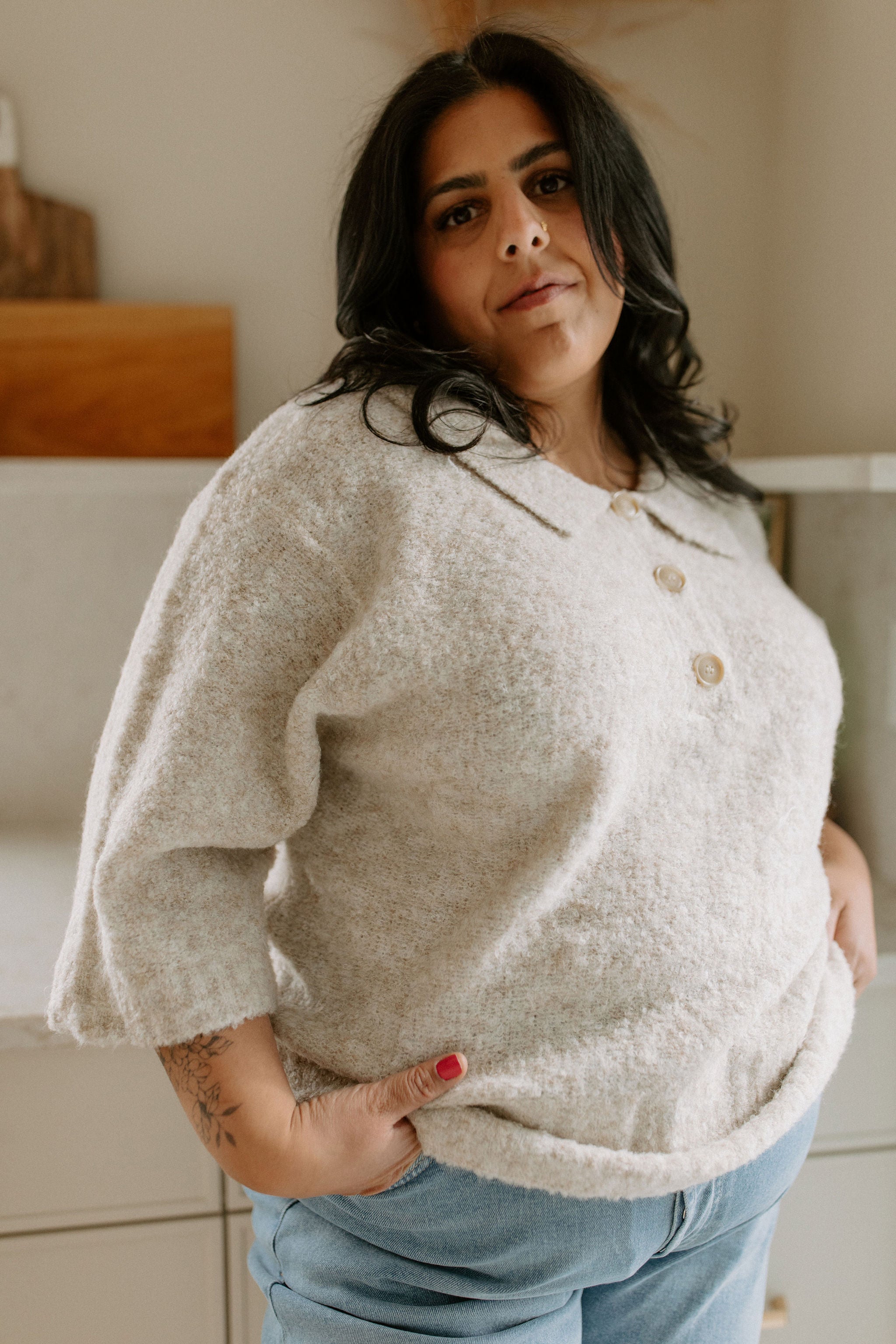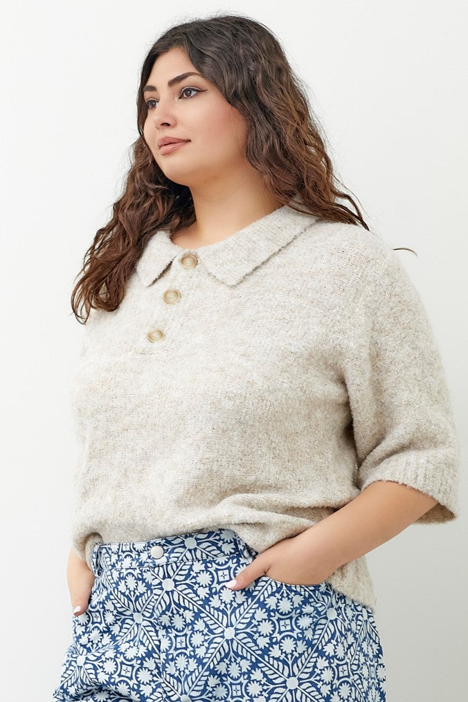 The Tori Boucle Polo Top - Oatmeal - PLUS