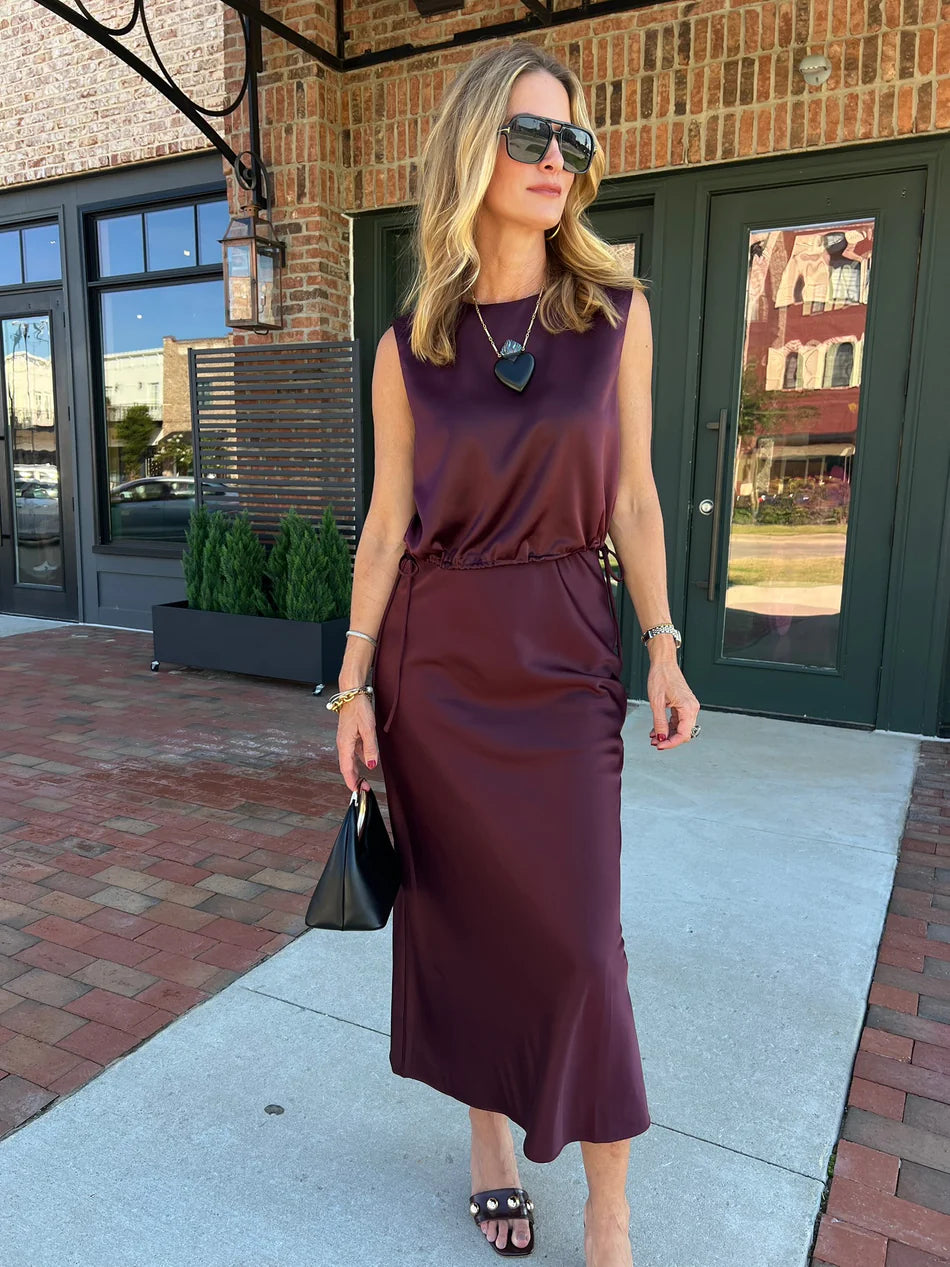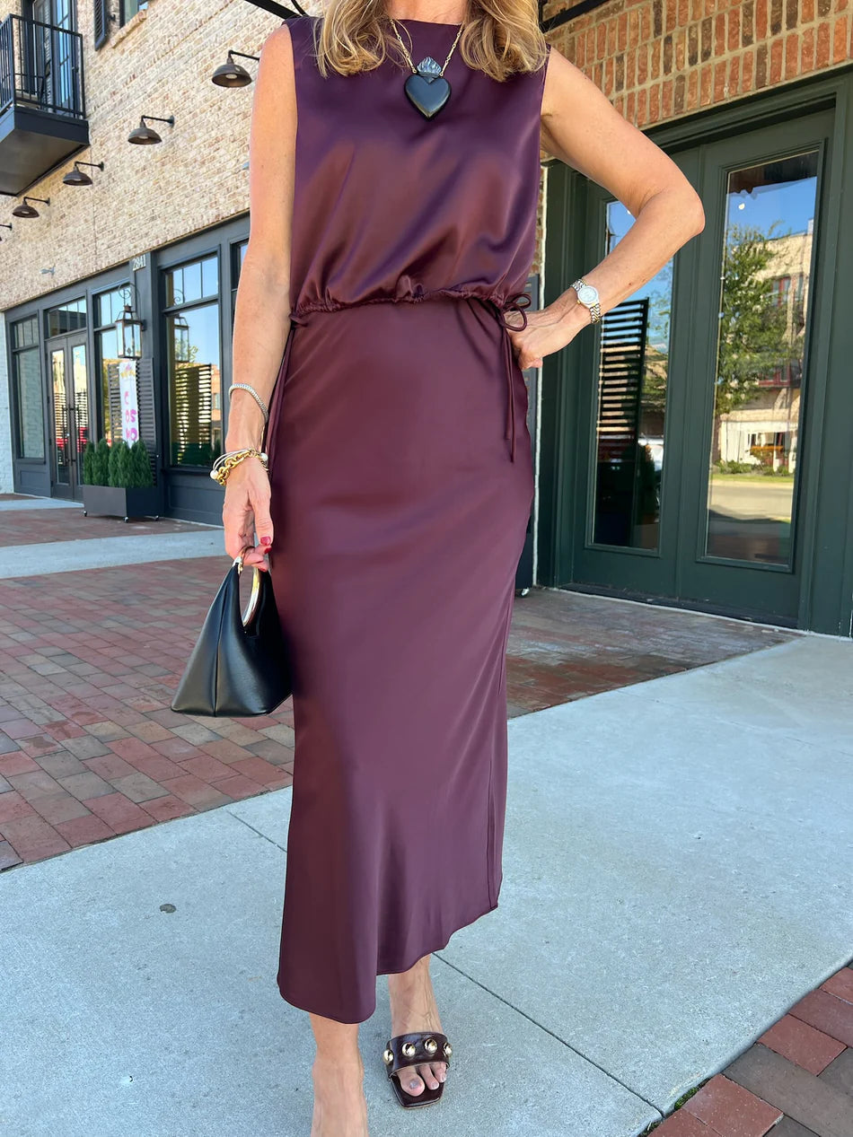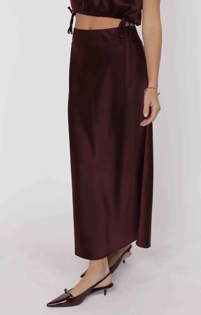 Unleash your powerful and captivating style with the Deep Trance Midi Skirt. Made of luxurious satin in a rich wine color, this skirt will hypnotize all who see it. Perfect for a night out or a special event, it will make you feel confident and irresistible.