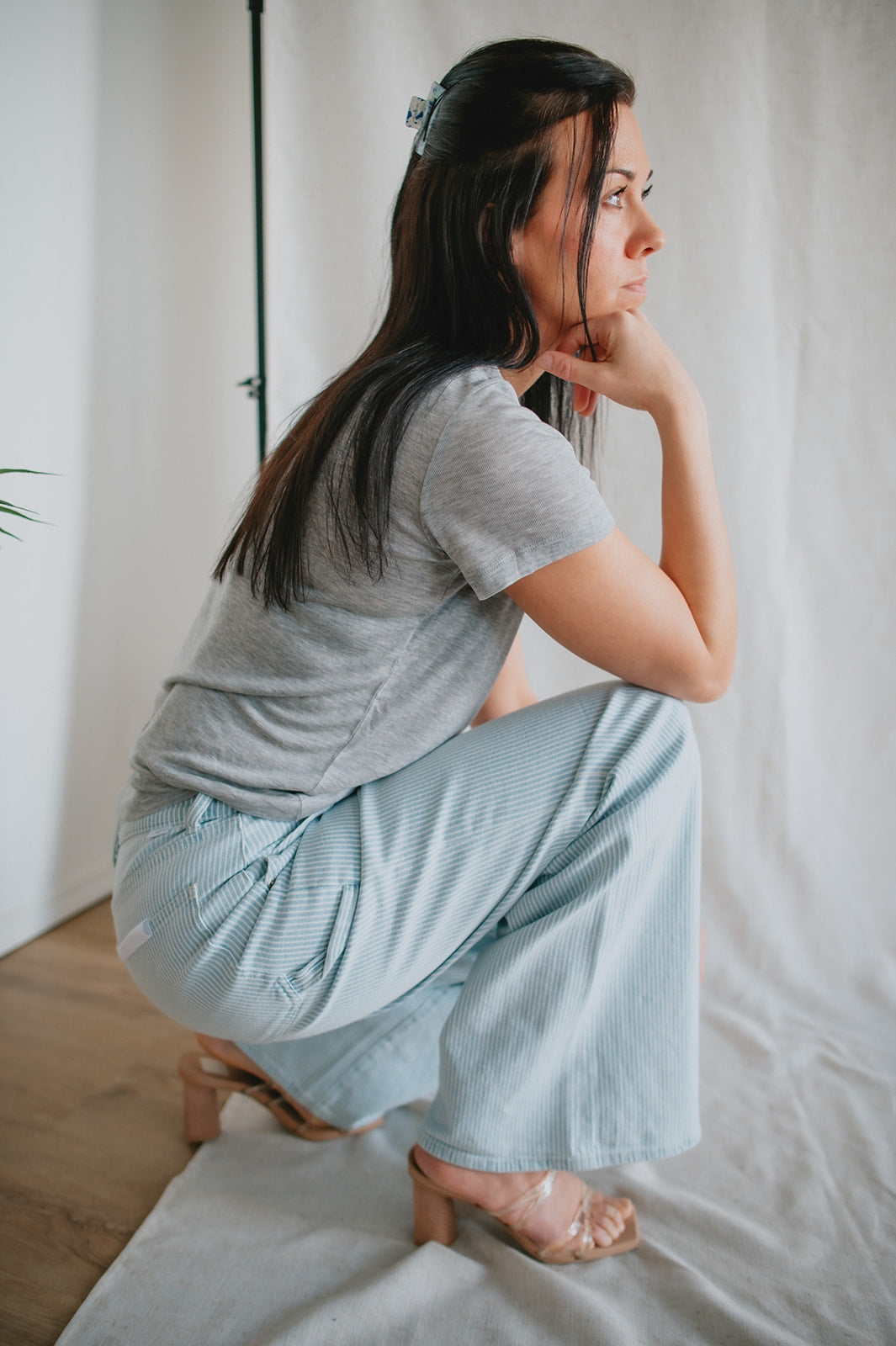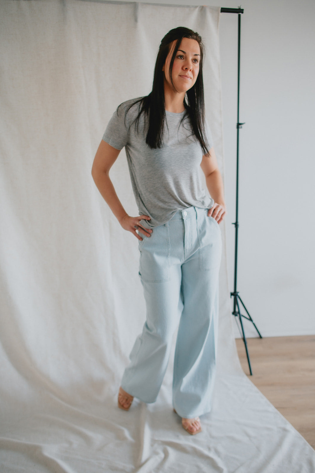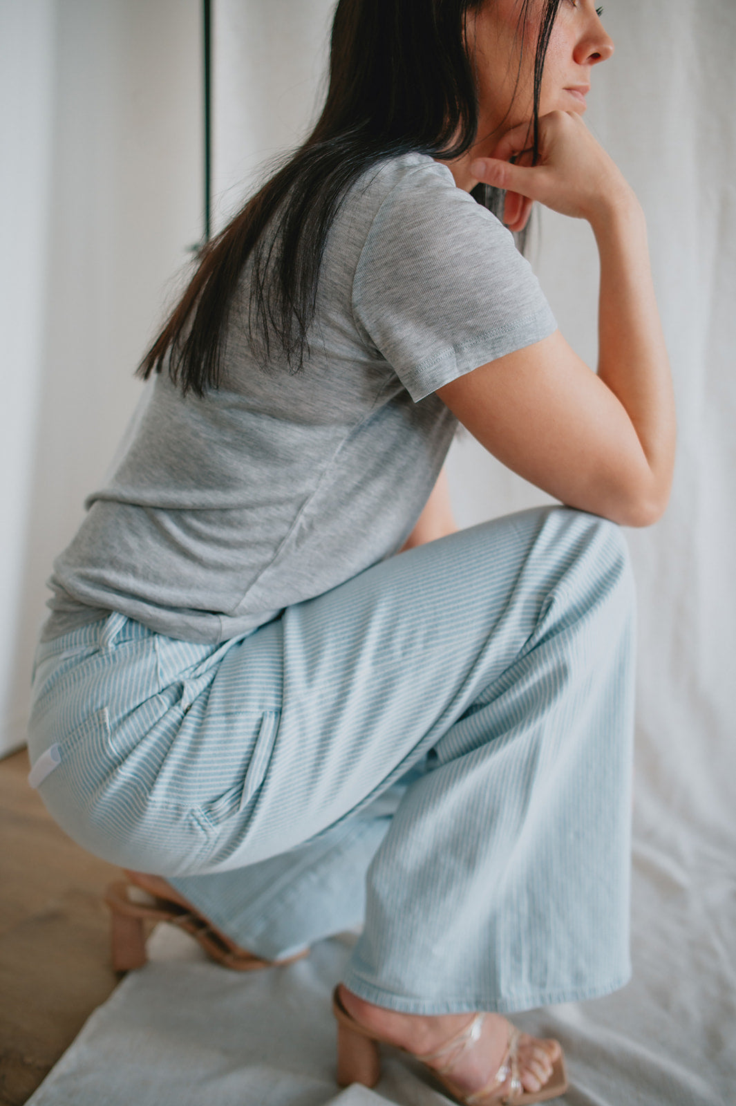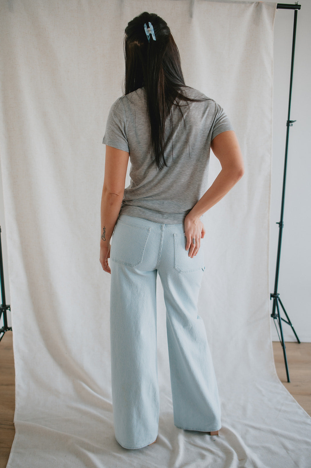 Step up your style game with these fabulous wide leg pants featuring eye-catching blue pinstripe detailing. Designed for the modern woman, the Far Out Wide Leg Pant effortlessly combines comfort and chic sophistication.