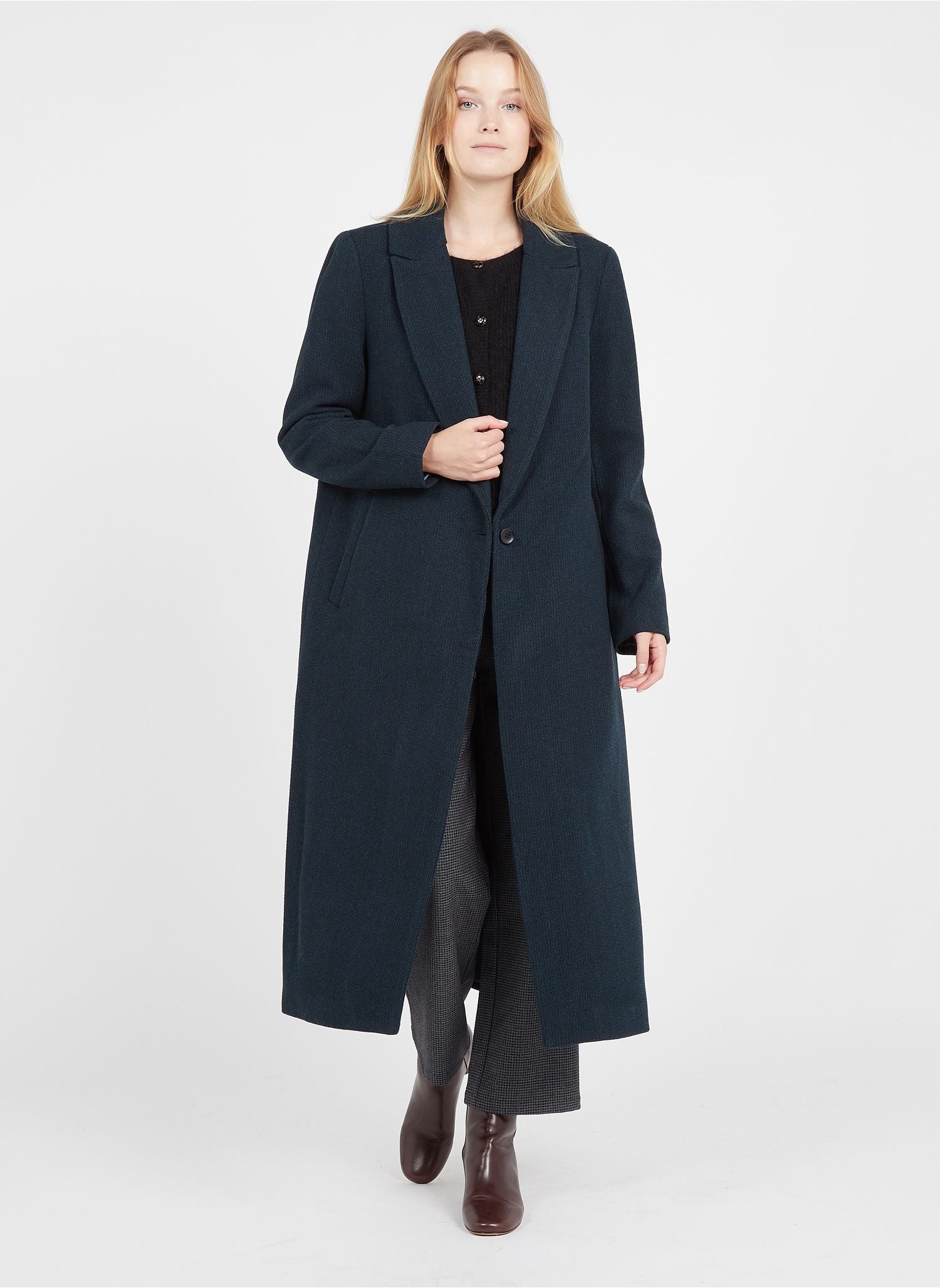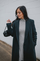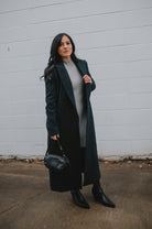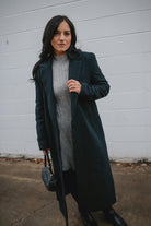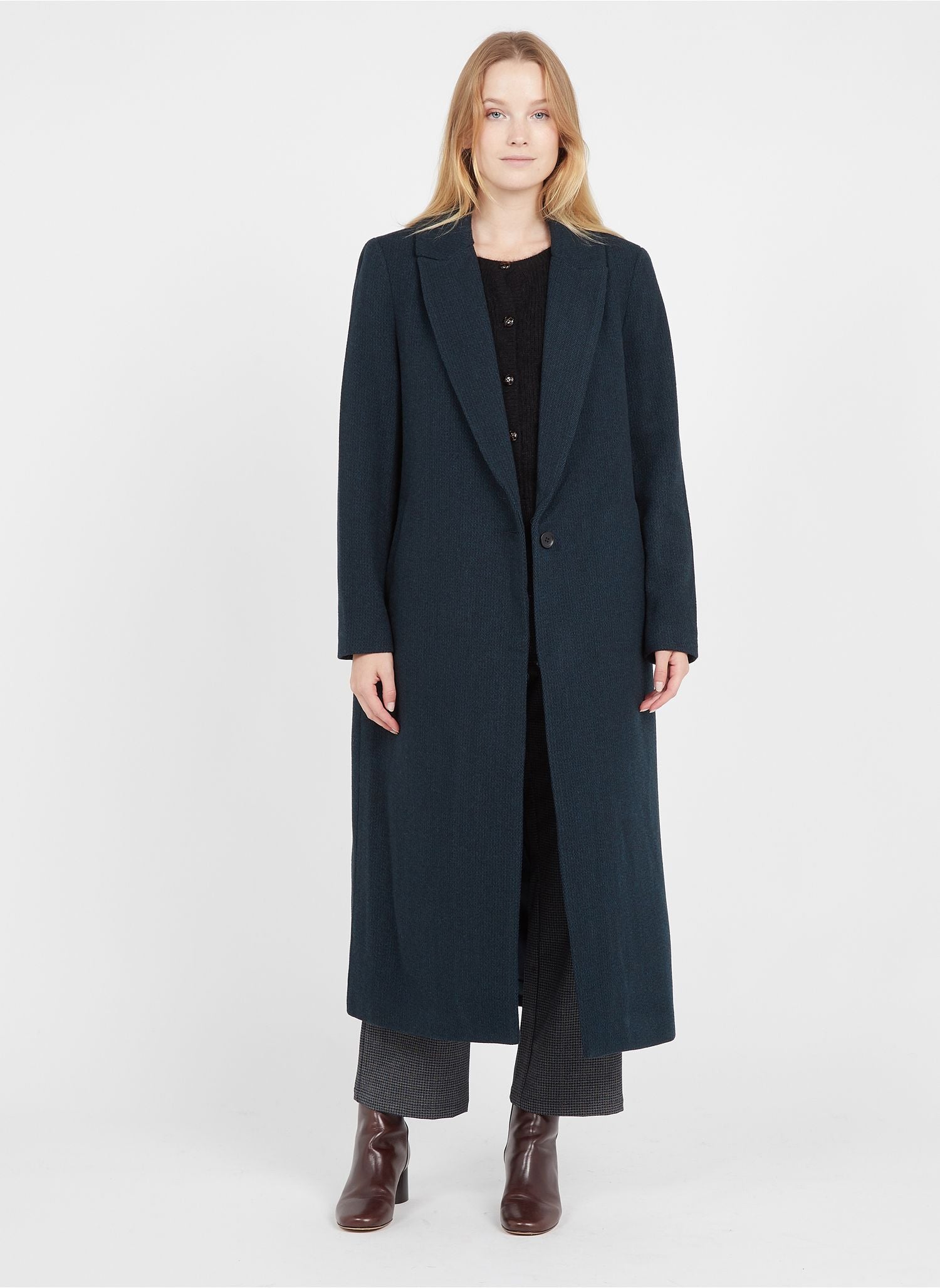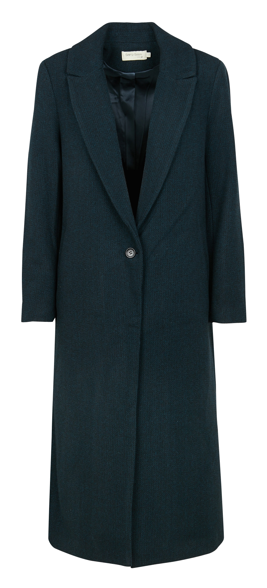 Luxury at it's finest! This beautiful long jacket is the jacket of the season. The long line and one button closure silhouette is so classic and timeless. The cobalt satin on the inside adds that little bit of romance.