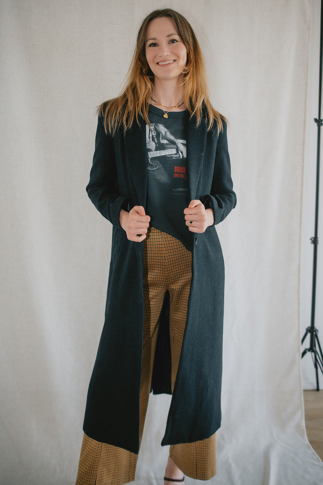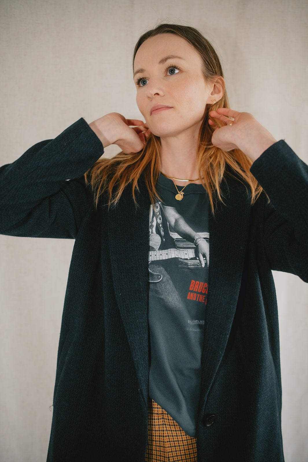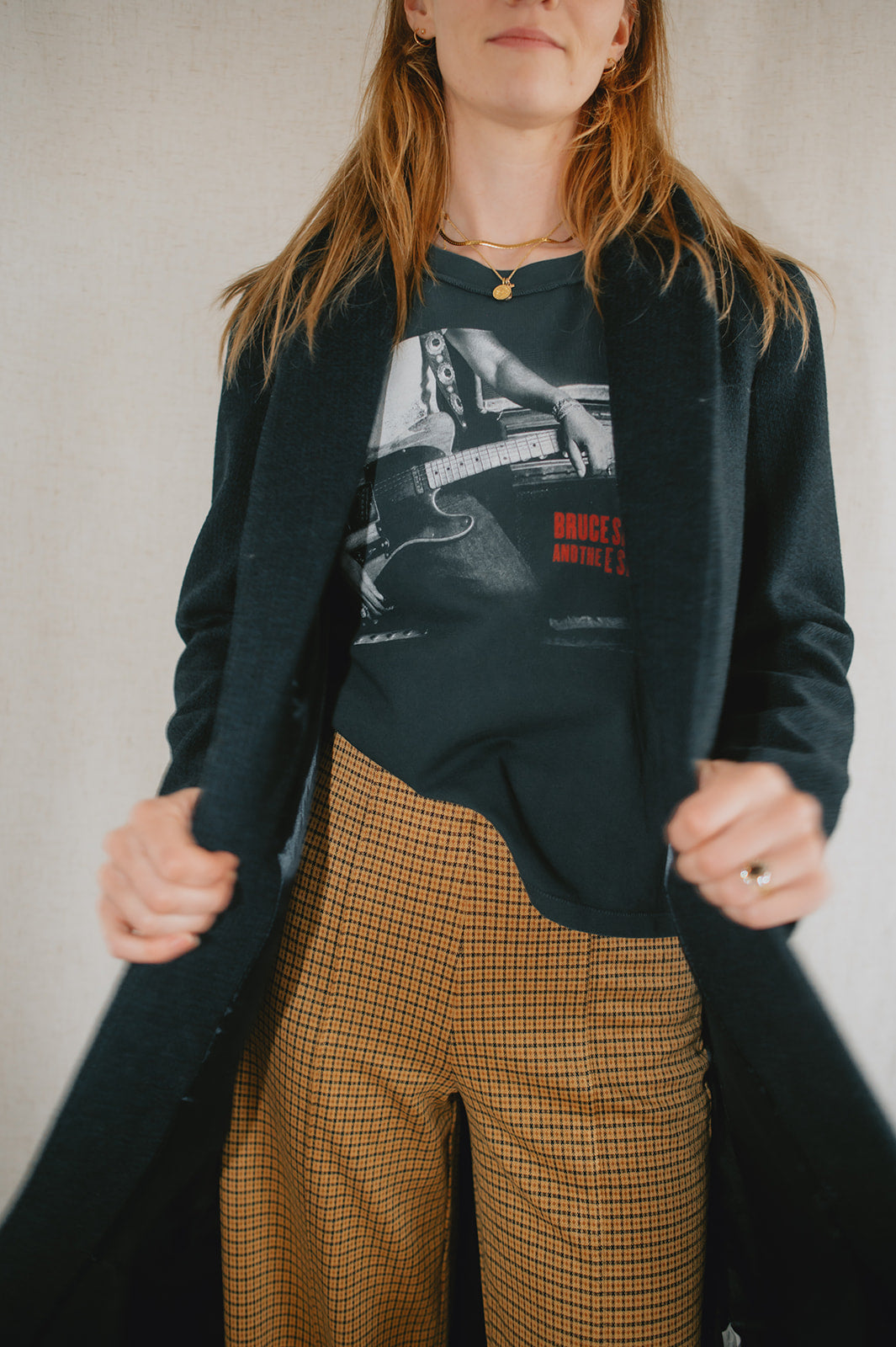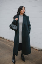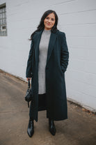 Luxury at it's finest! This beautiful long jacket is the jacket of the season. The long line and one button closure silhouette is so classic and timeless. The cobalt satin on the inside adds that little bit of romance.