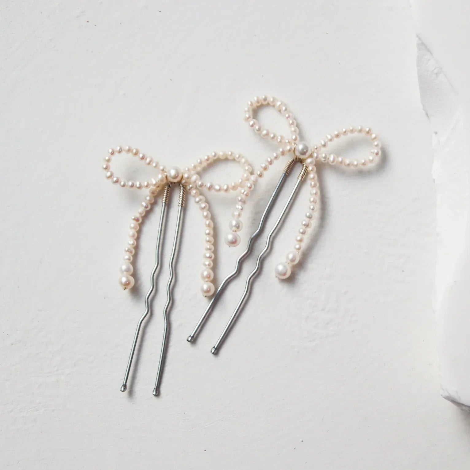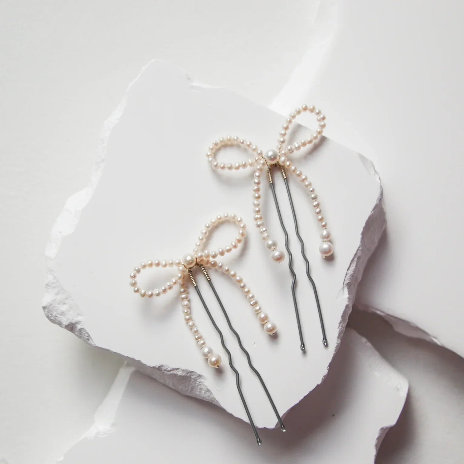 The Mini Pearl Bow Hair Pins (SET of 2)