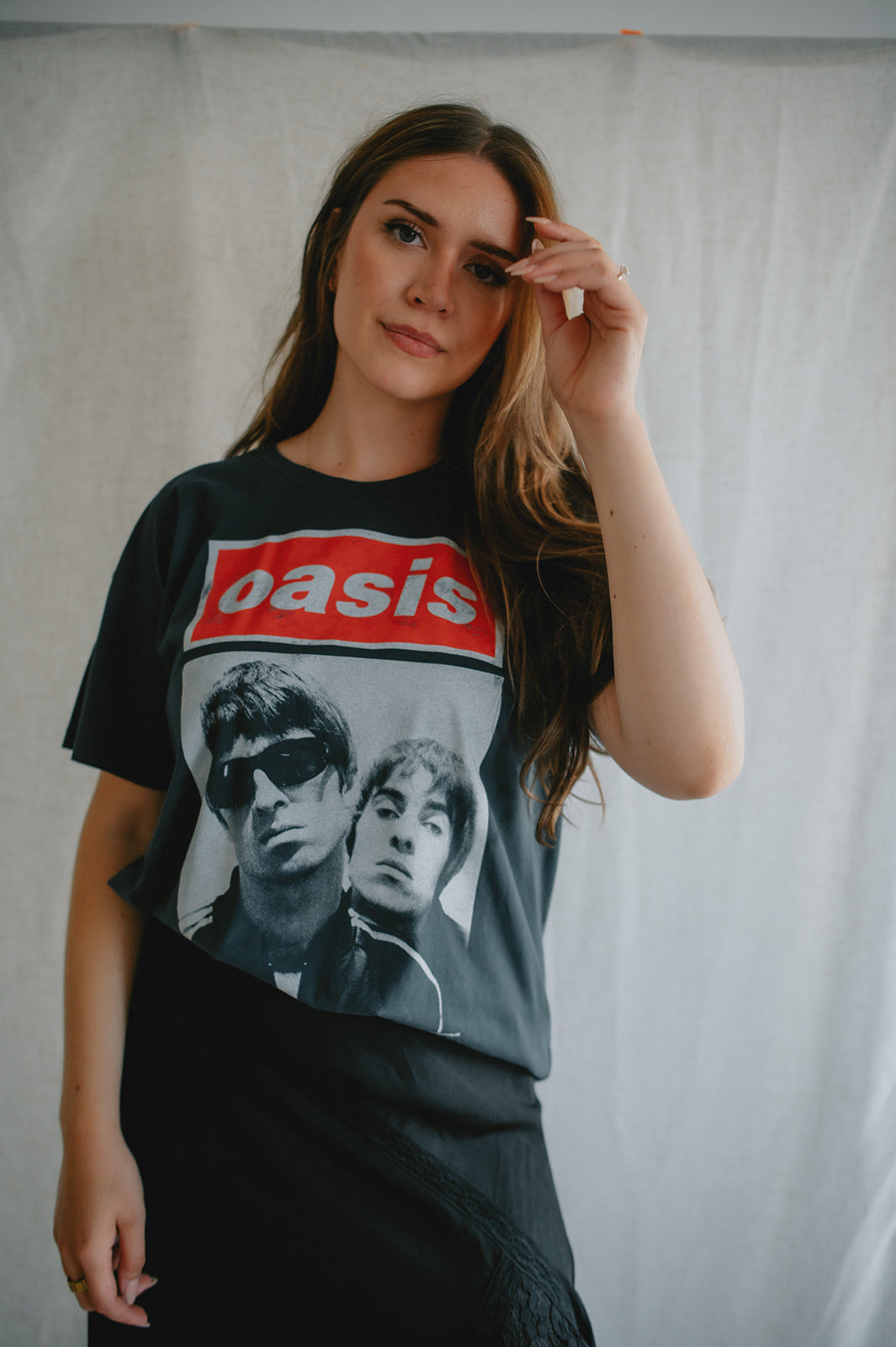 An image of Liam and Noel, the famous frontmen and feuding brothers who fueled the band’s creative energy, is featured alongside Oasis' iconic logo.