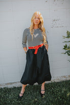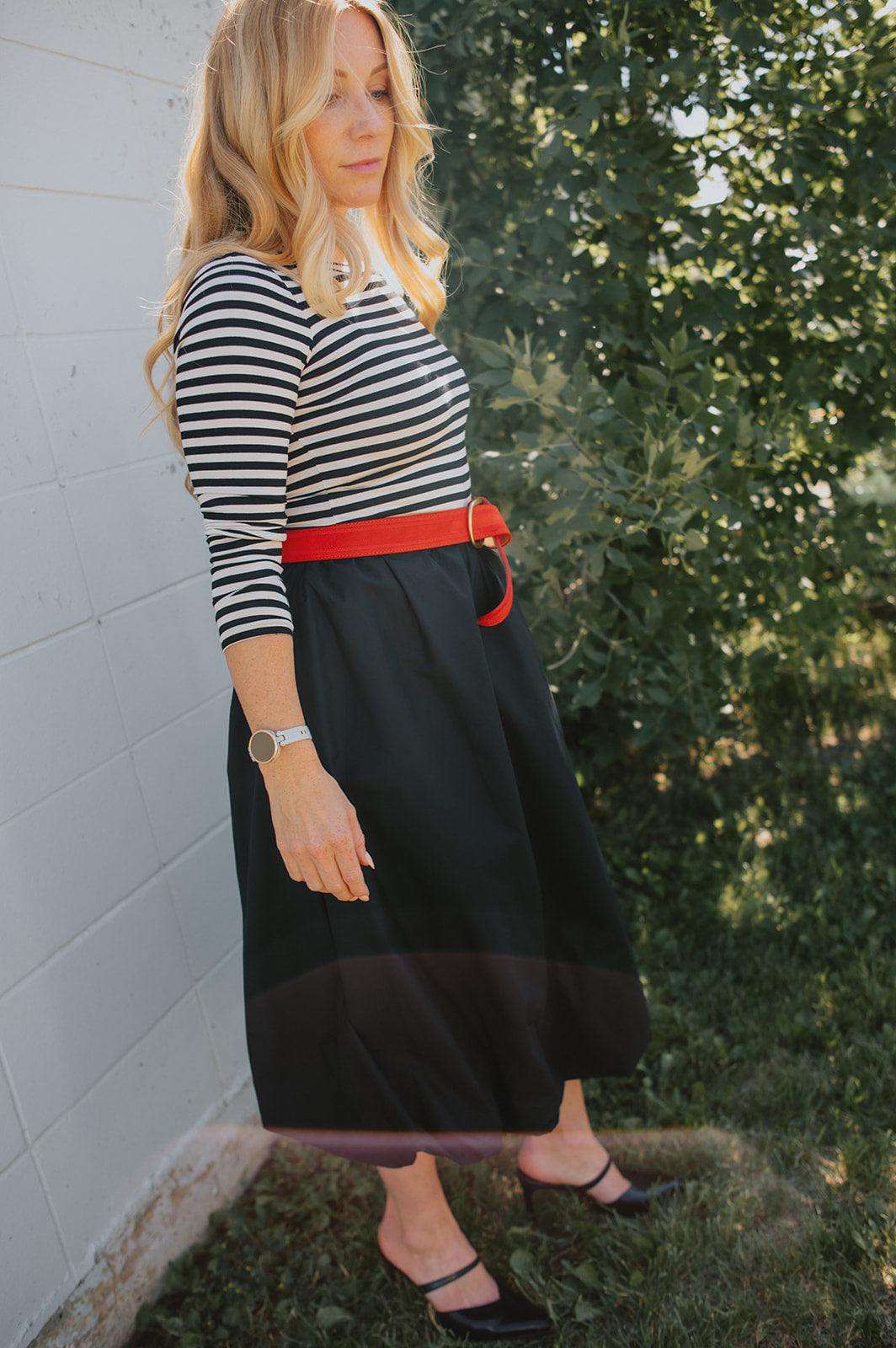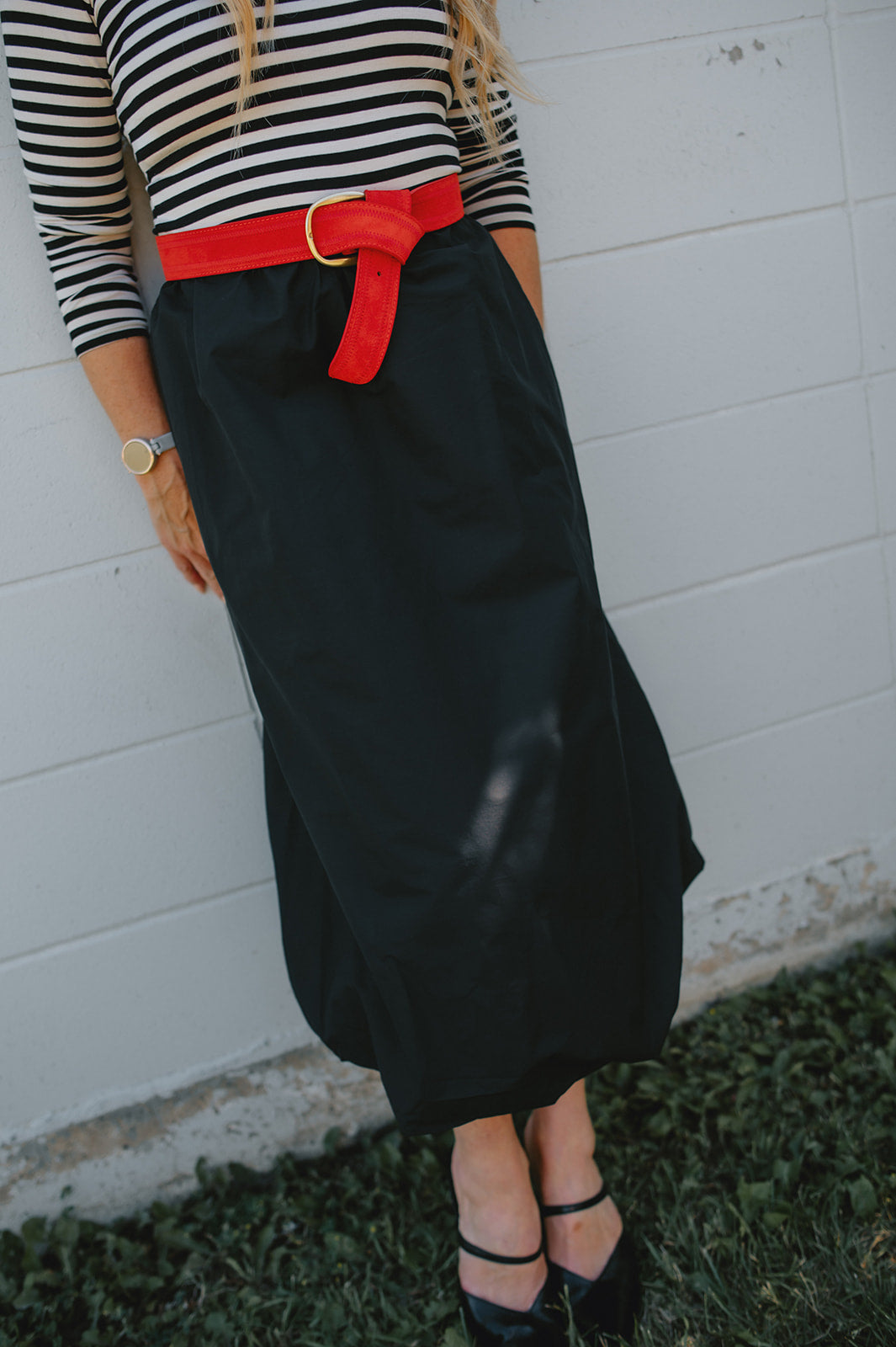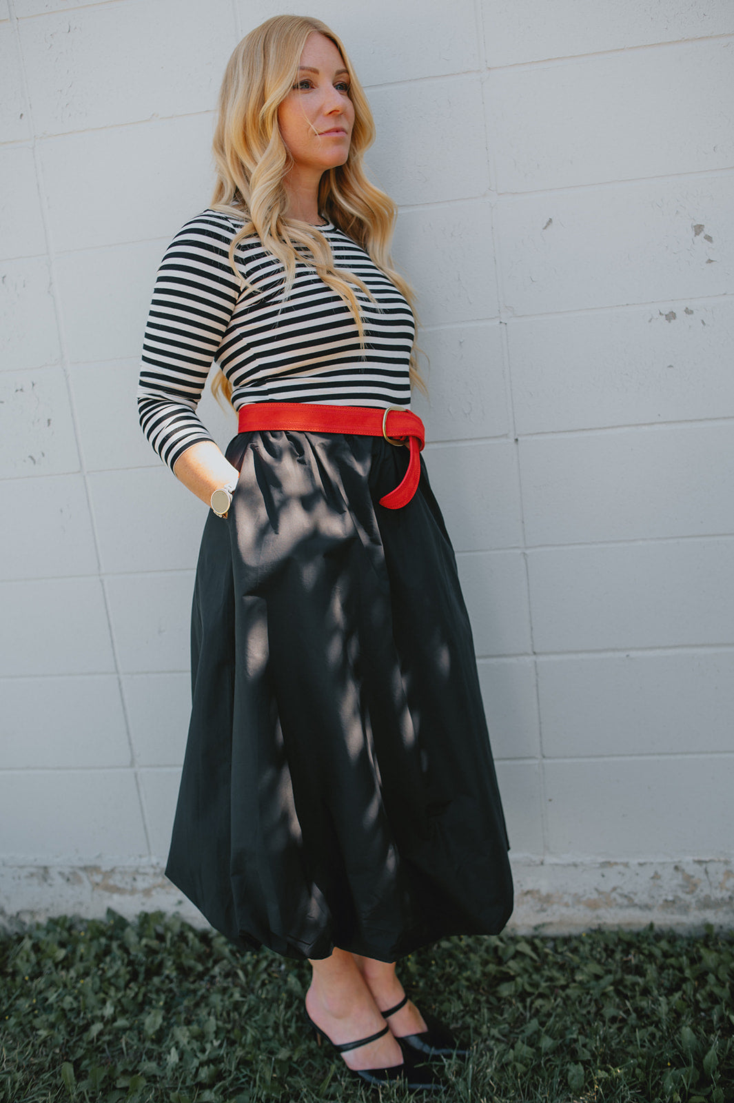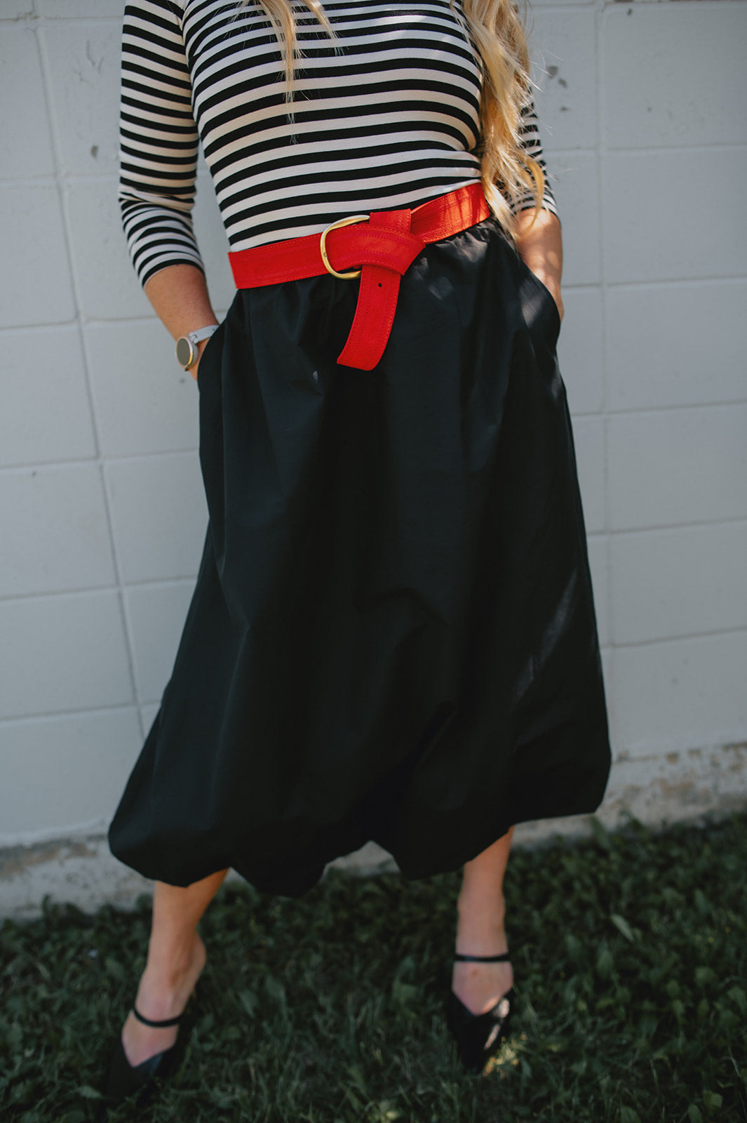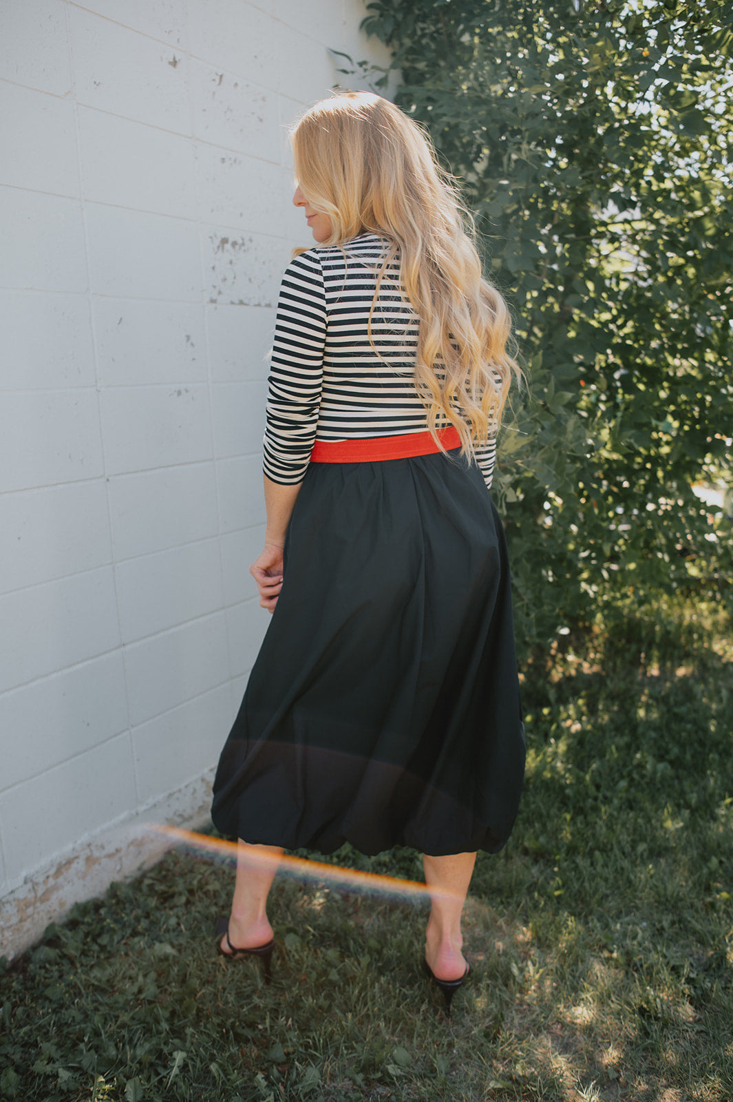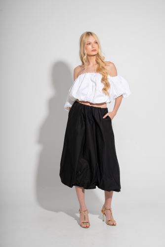 • Casual Chic: Pair the Bubble Hem Skirt with a fitted knit top or a simple t-shirt. Add some sneakers for a trendy yet relaxed outfit perfect for exploring local art galleries or meeting friends for coffee.