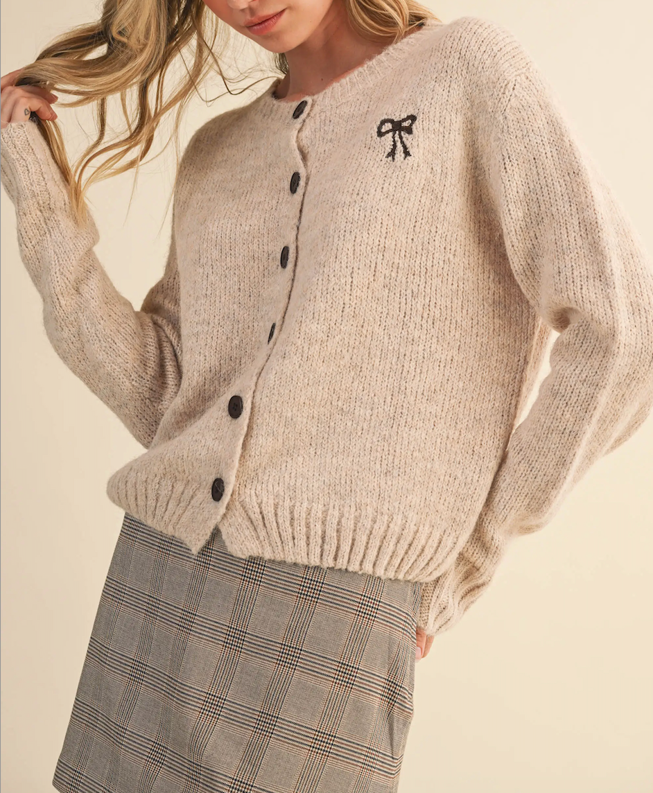 The Piper Bow Cardigan - Beige
