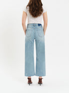 The Pleaser is our tried and true high rise wide ankle, featuring seaming details at the waist against a light wash with slight fading. Constructed from our Hug denim, it’s flexible enough to hug your body while still cinching you in.