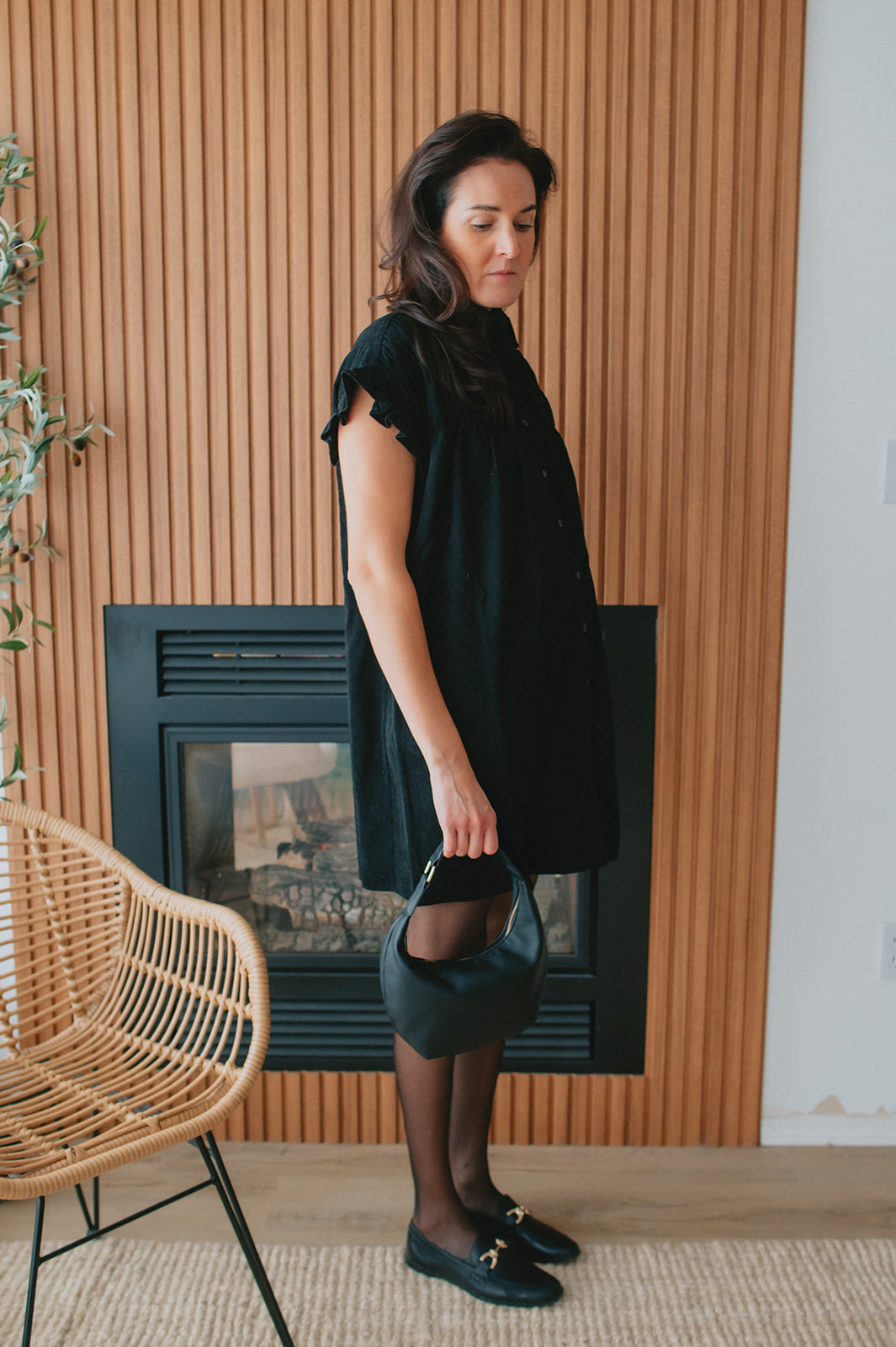A full-length contrast button closure runs down the front, adding definition and versatility to the look. Effortlessly modern and easy to style, it’s a timeless piece that transitions seamlessly from day to evening.