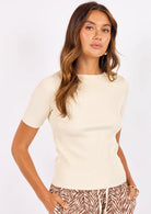 Sweet with a modern edge, the Shortcake Sweater Top is an elevated everyday essential. Designed in a soft ribbed knit, this style features a classic crew neckline and short sleeves for an easy, flattering fit. The unexpected twist-back cutout detail adds a subtle statement, giving this timeless silhouette a fresh update.