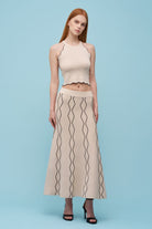 Meet the Sway Knit Skirt that does all the flirting for you. Designed in a soft, body-skimming knit with an easy pull-on waistband, this midi moves with you while the playful wave pattern adds just the right amount of attitude. Equal parts polished and relaxed, it’s the piece you’ll reach for when you want to look put-together without trying too hard.