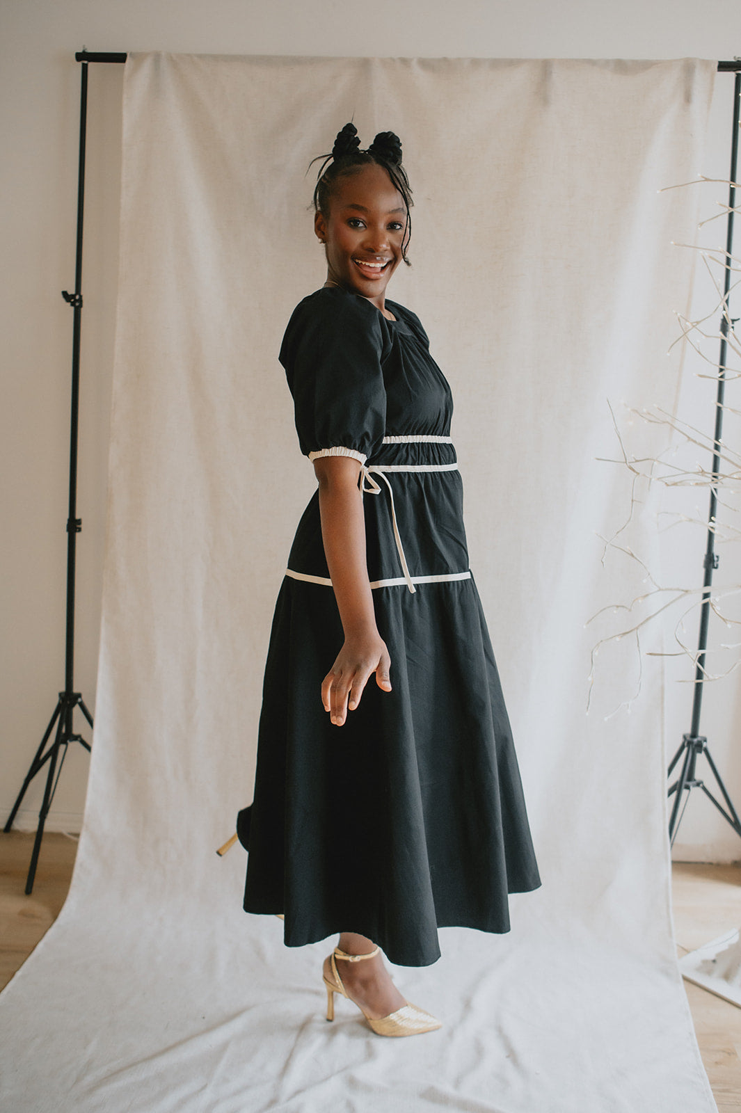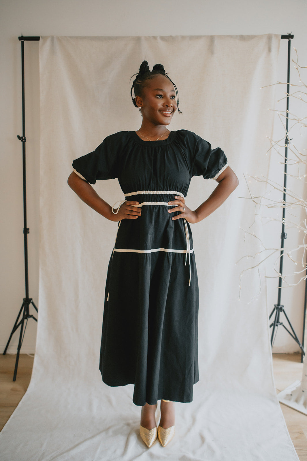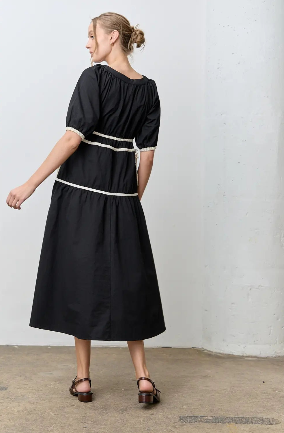 The Tie Contrast Midi Dress - Black