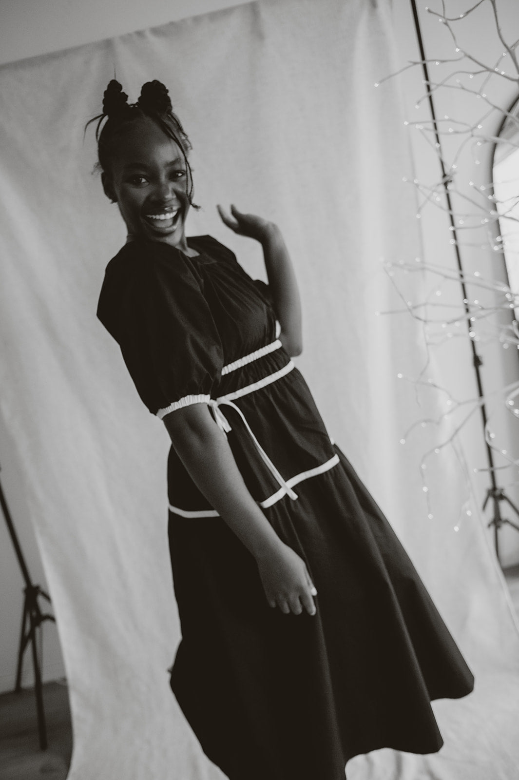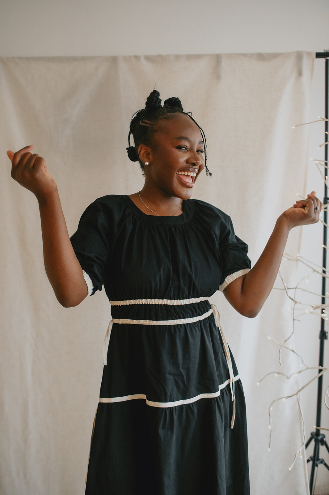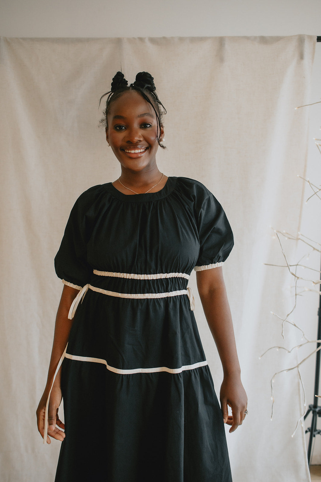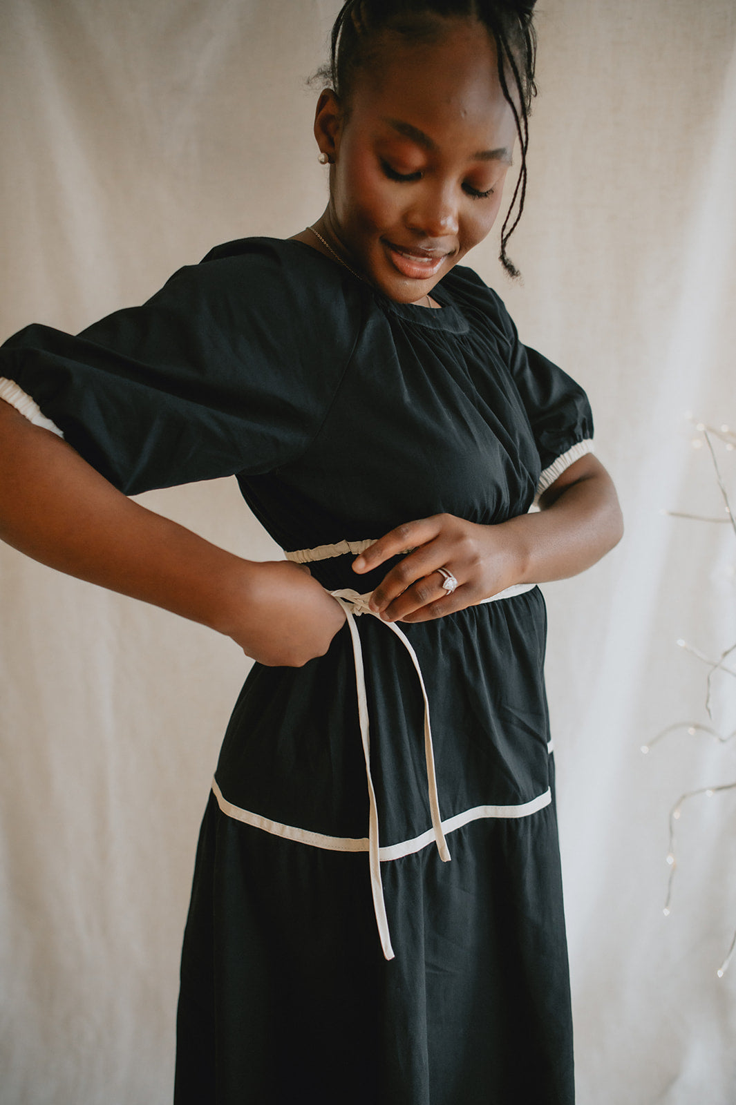 The Tie Contrast Midi Dress - Black