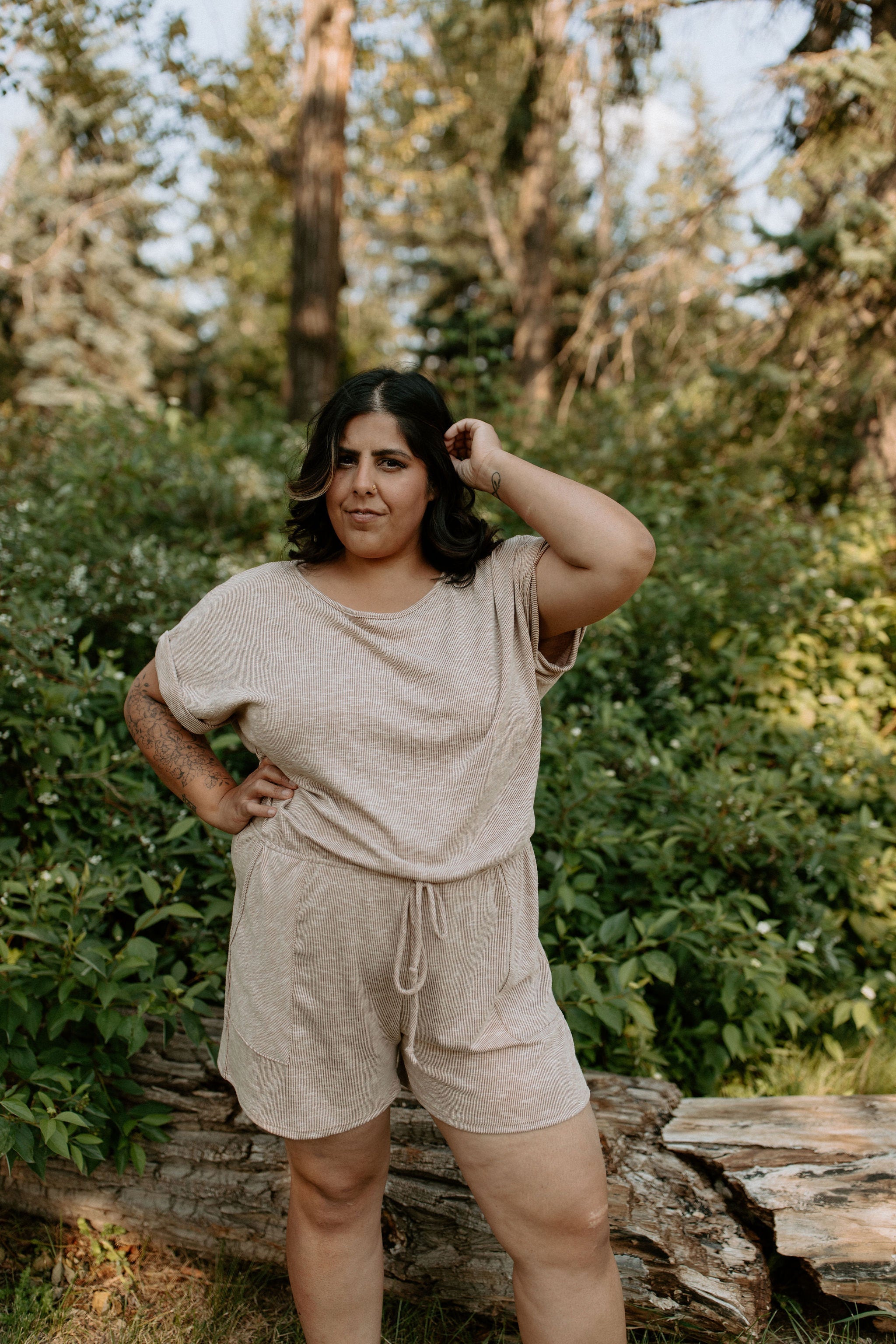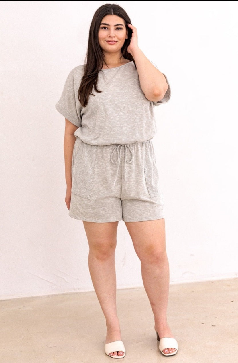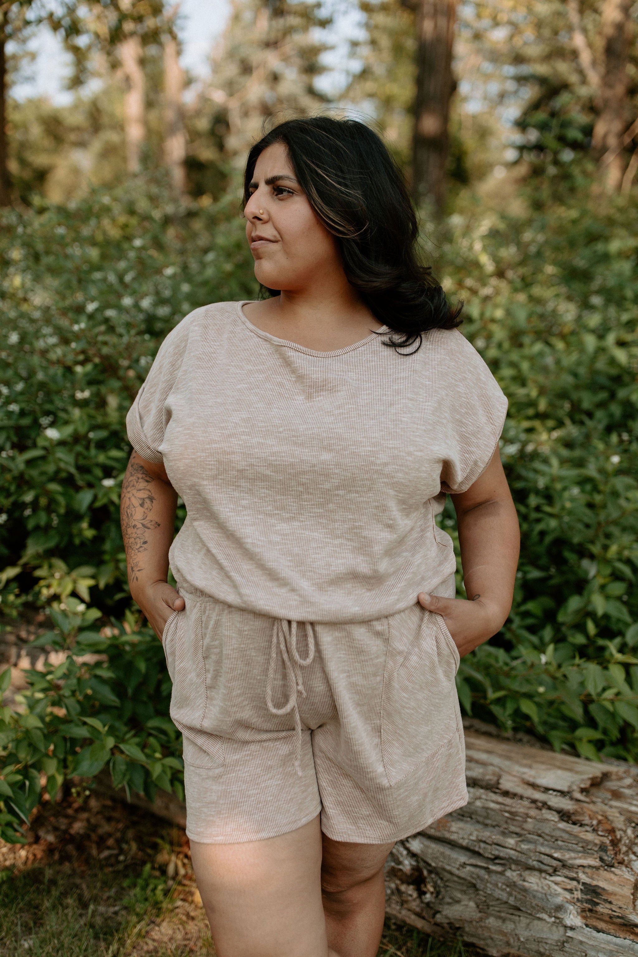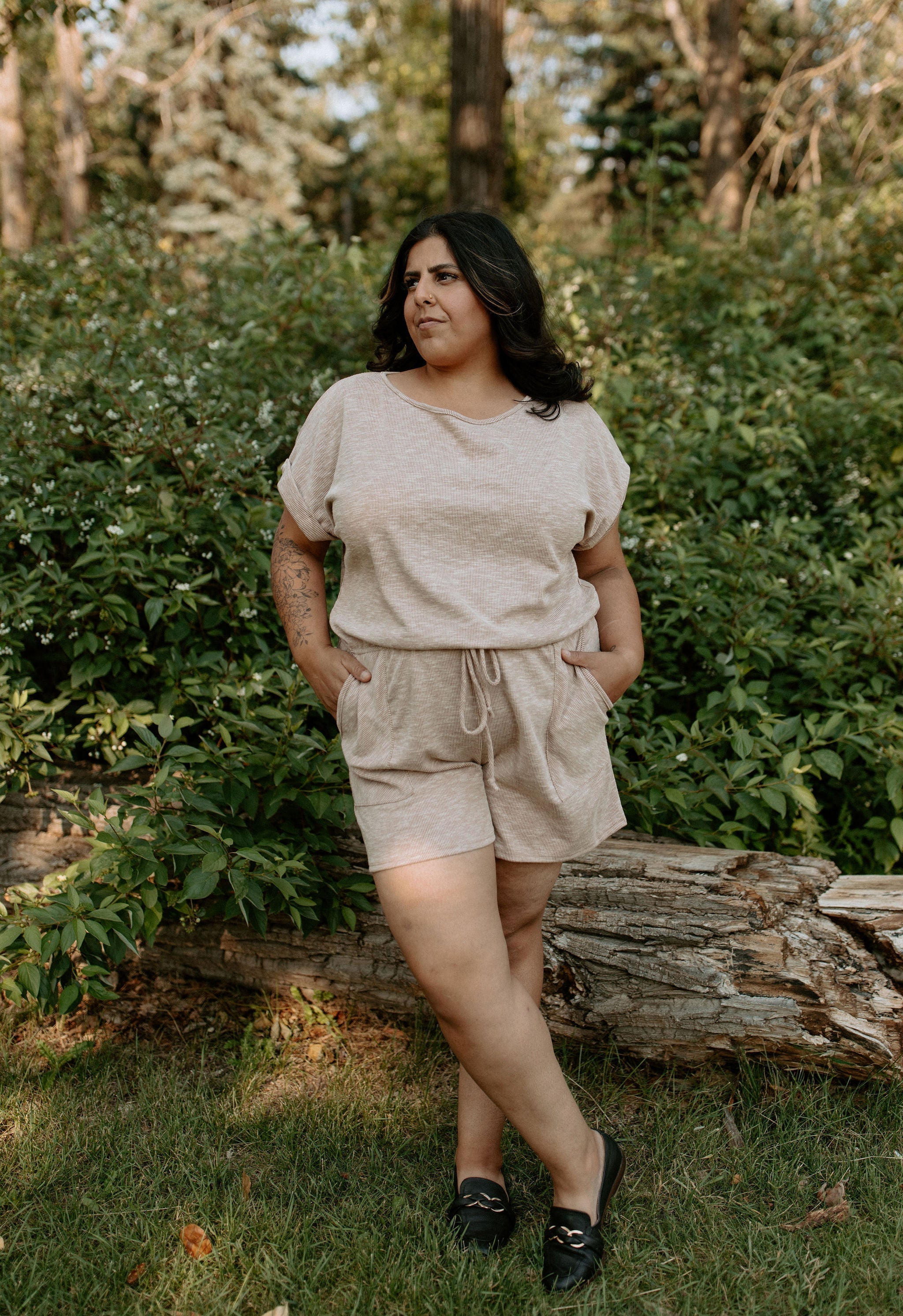 The Sandy Short Sleeve Romper - Latte - PLUS