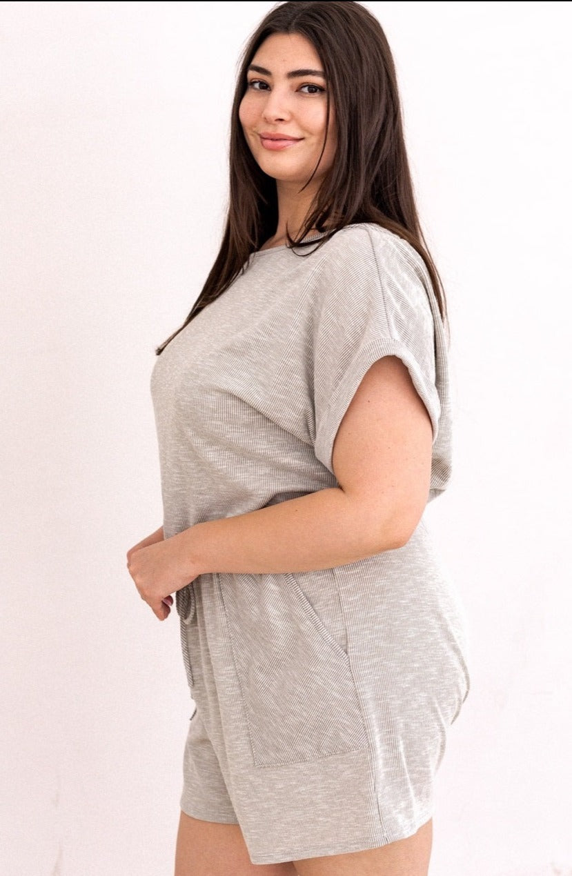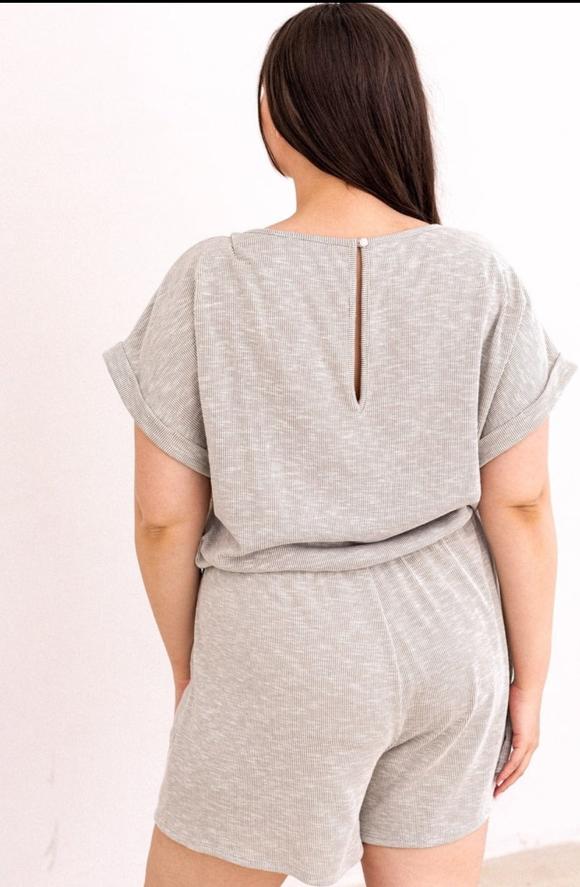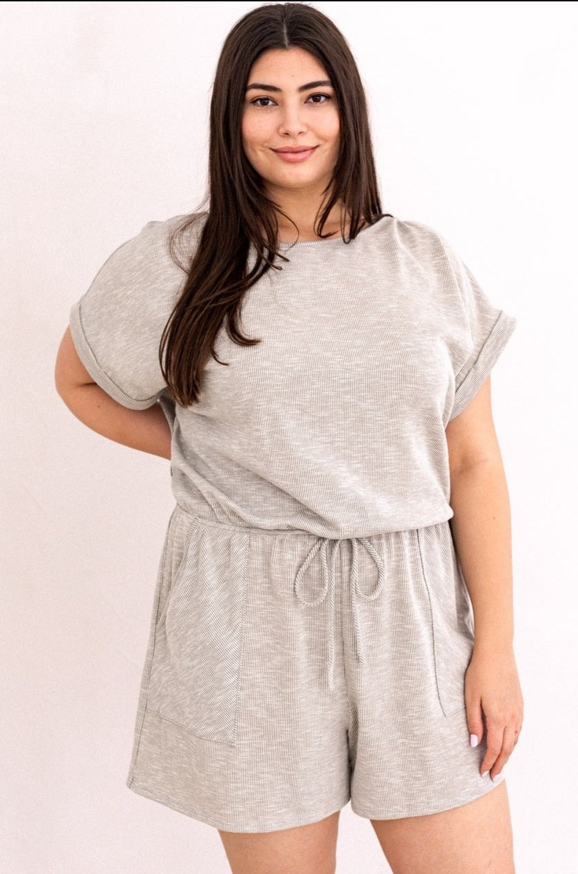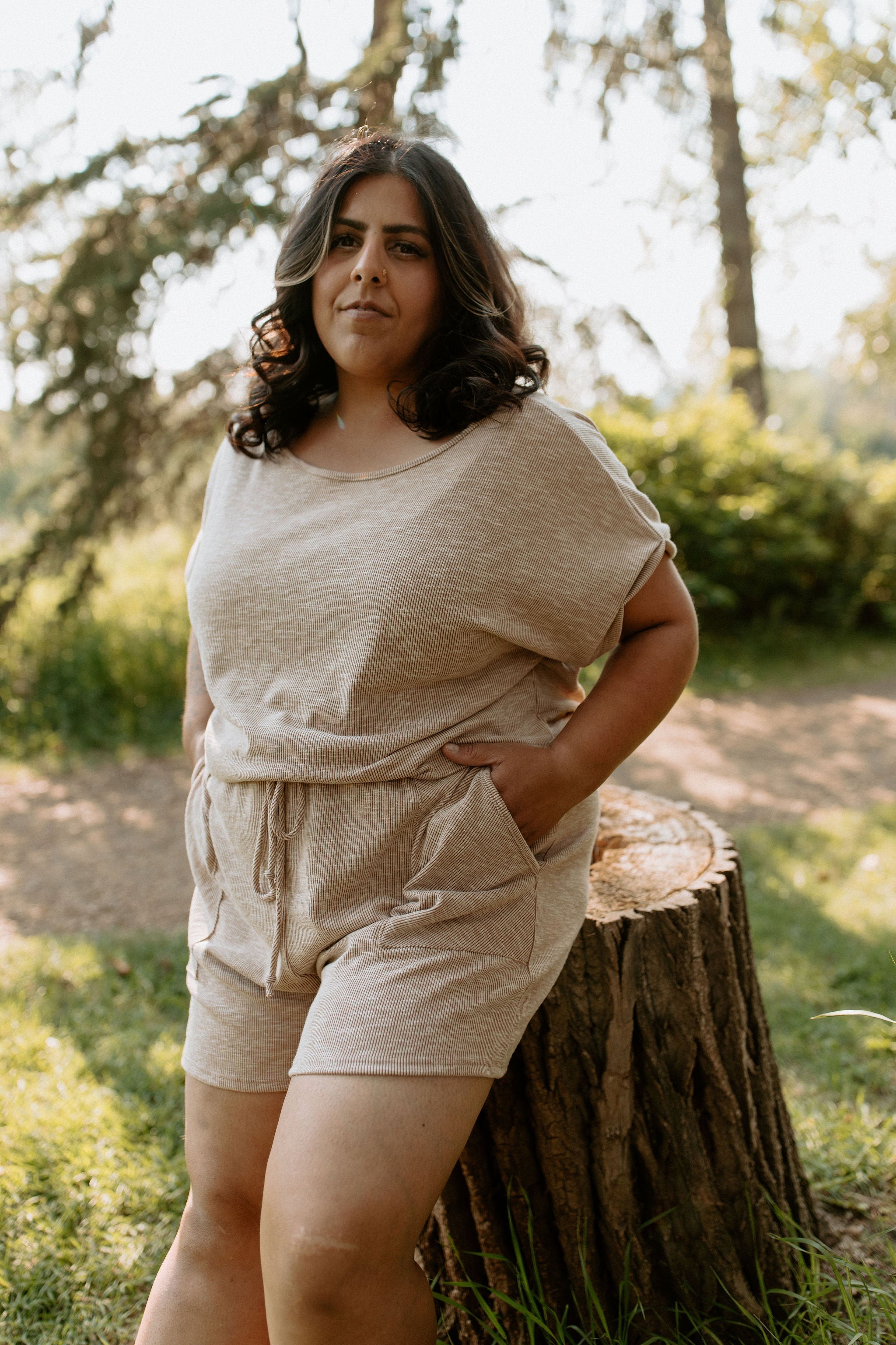The Sandy Short Sleeve Romper - Latte - PLUS