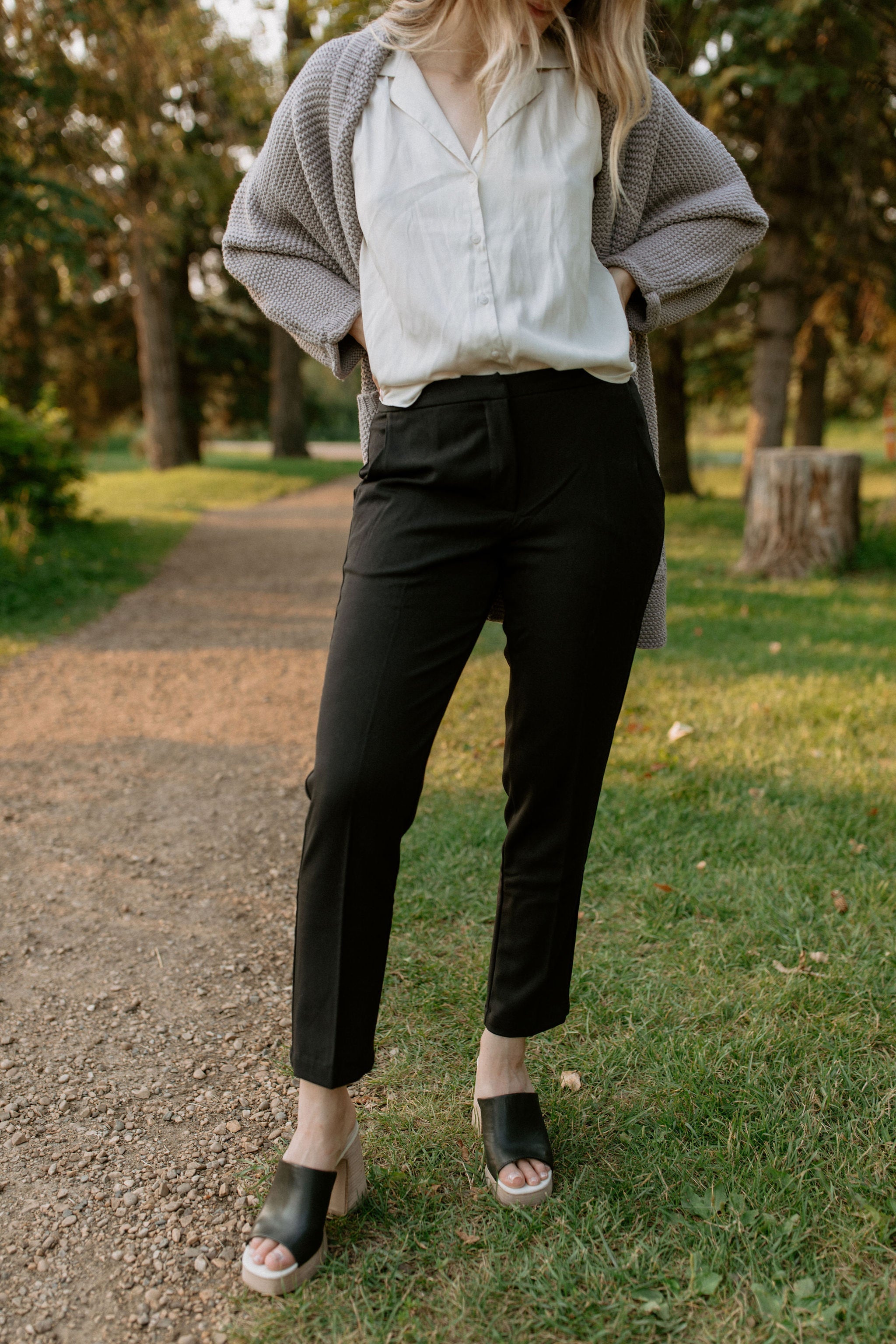 You loved the Halle pant so much, we brought in her twin! The Halle 2.0 is an updated dressed pant style, crafted from a classic tailored fabric blend of viscose and polyester with stretch. They are designed with a regular waist, tapered legs and an above the ankle-length. The pants are finished with press creases, side slant pockets, back welt pockets and a hidden zipper closure.