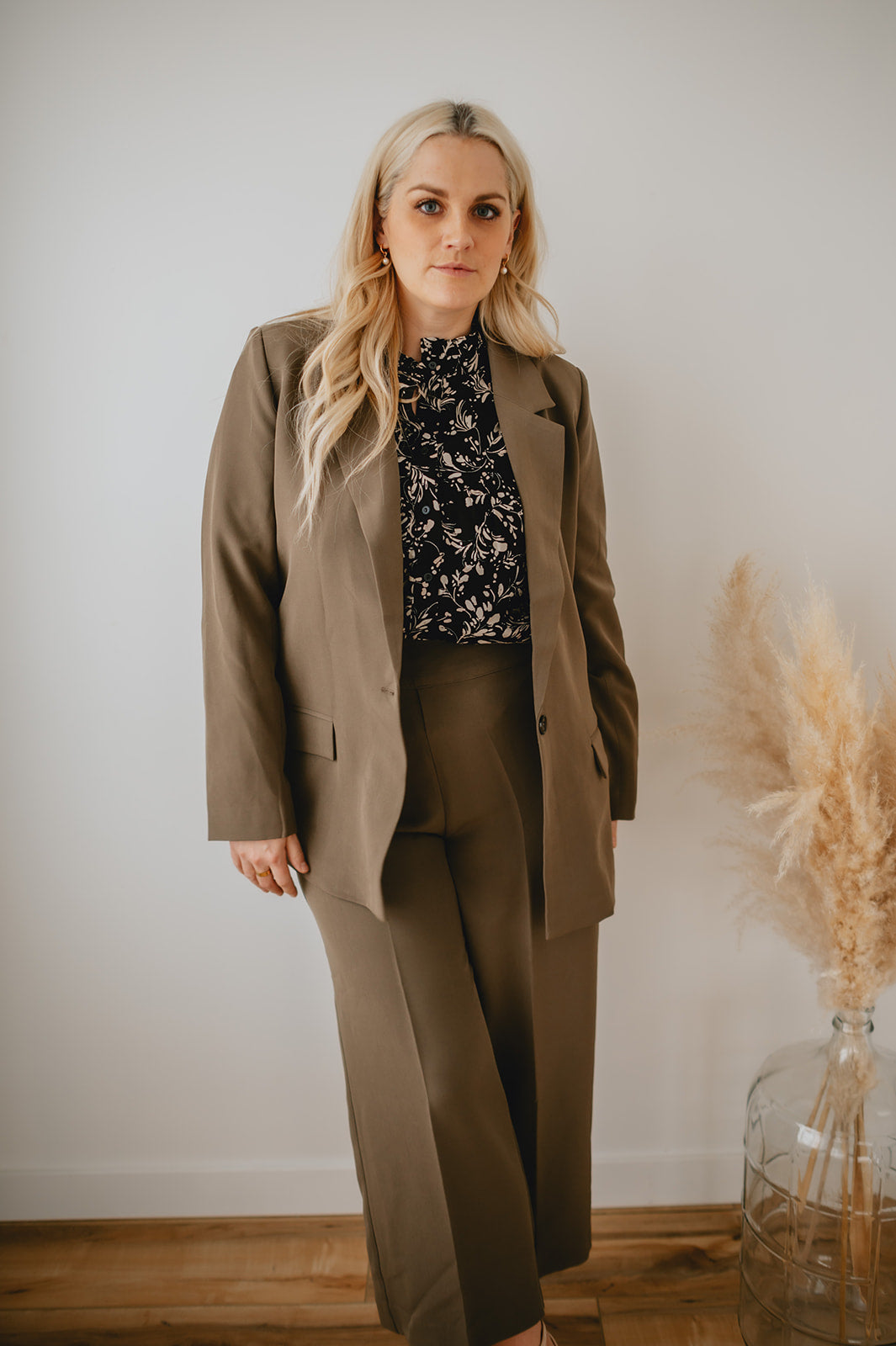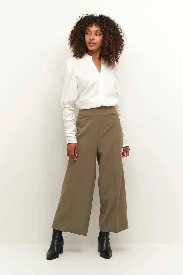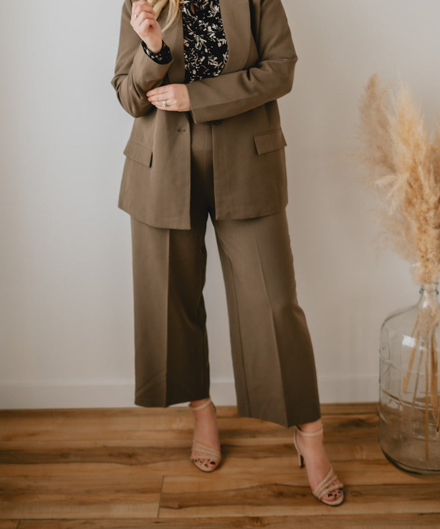 Wide leg trousers of your dreams in the most beautiful colour. Add an ankle boot to this cropped pant for the perfect dream team. Best part? There is a matching blazer.