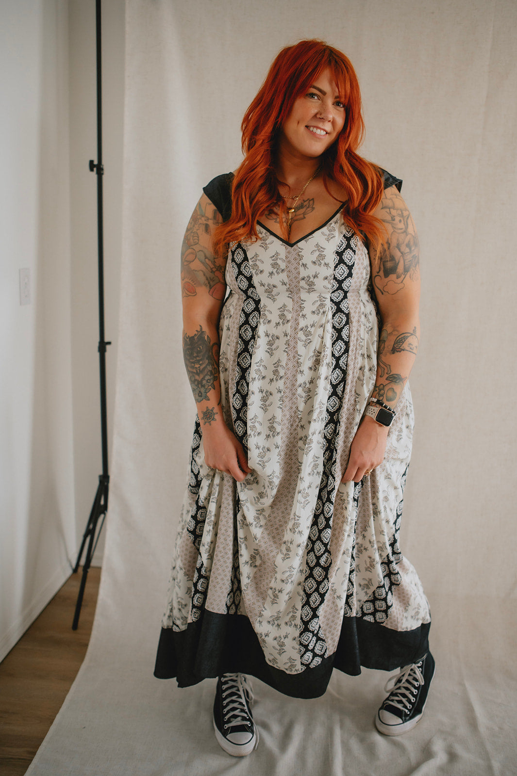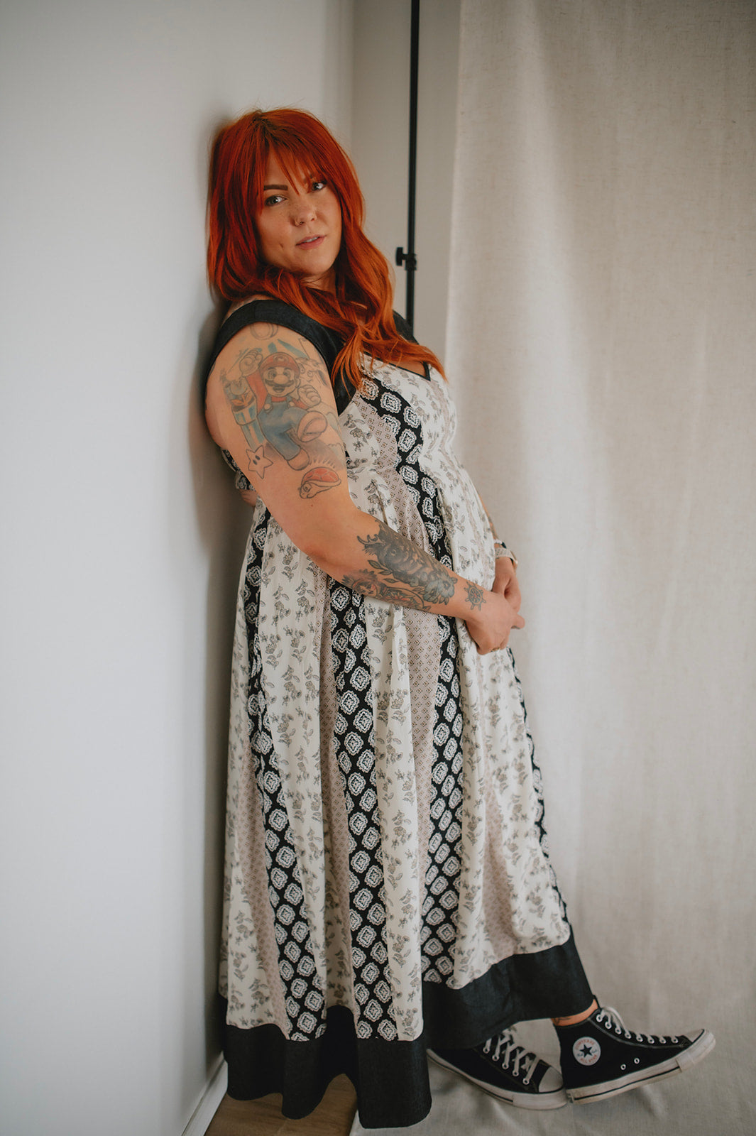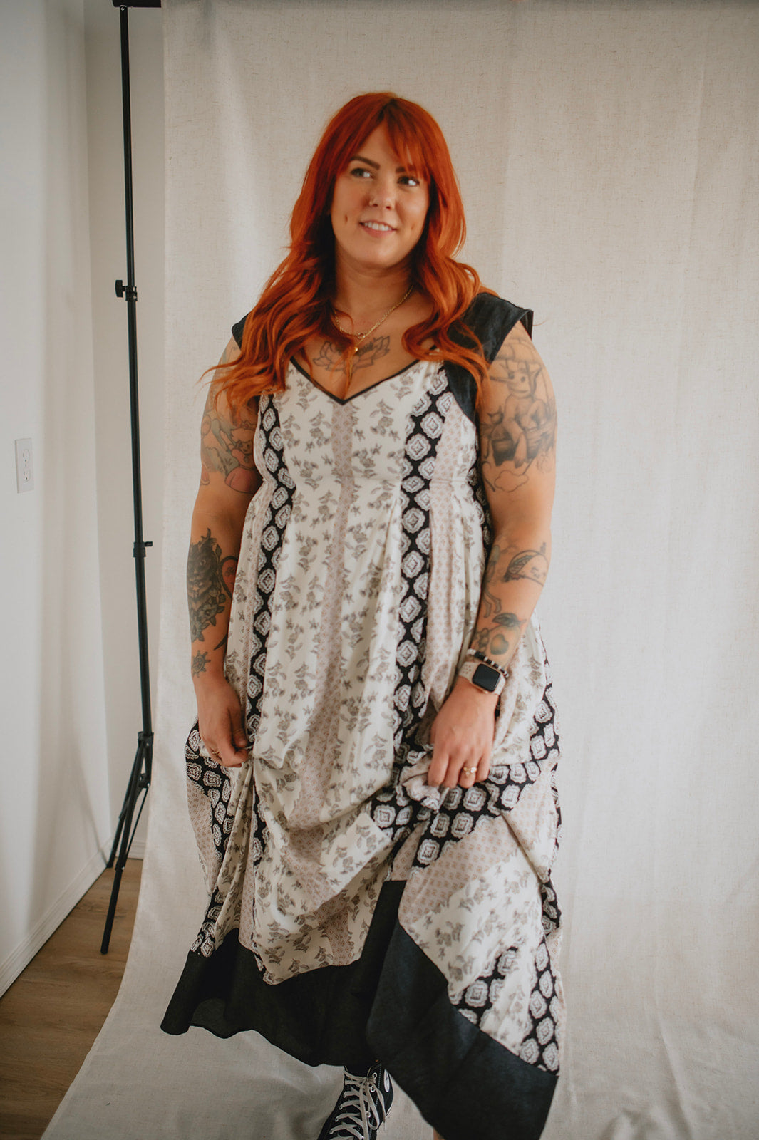Meet the new girl on the block: The Cameron Denim Detail Midi Dress, a captivating fusion of style and comfort. Featuring a flattering v-neck and midi length, this dress showcases mixed pattern panels for a unique aesthetic. With denim straps and bottom hem accents, along with a lower back peek-a-boo detail, it exudes casual sophistication. Complete with a smocked back and bra-friendly design, it offers both versatility and ease of wear for any occasion.