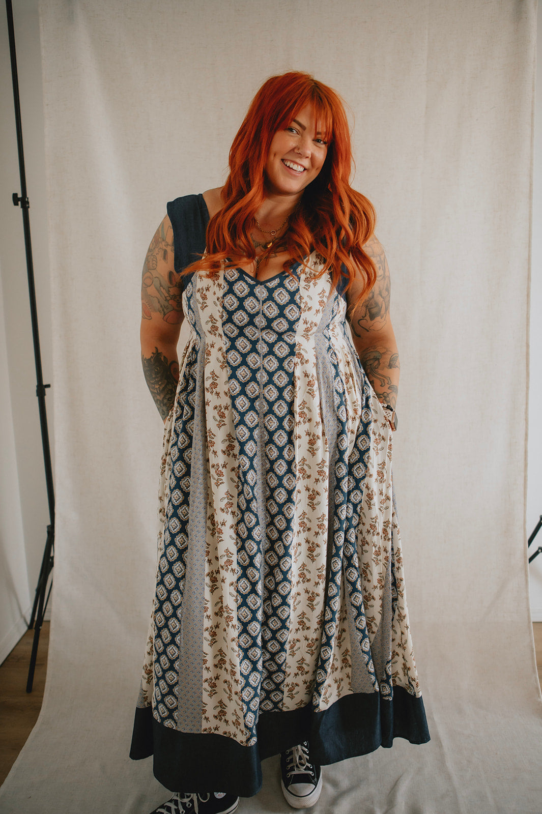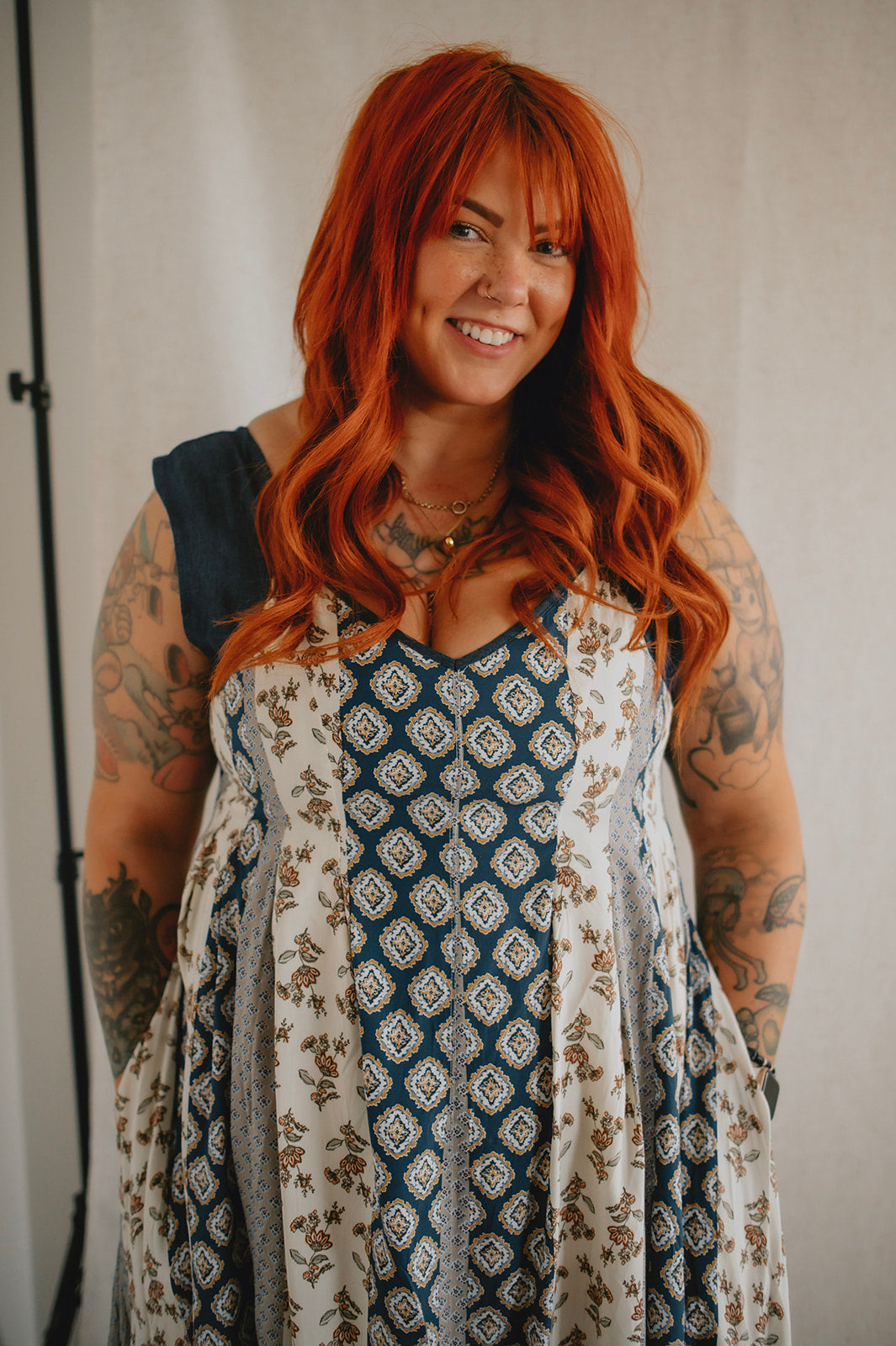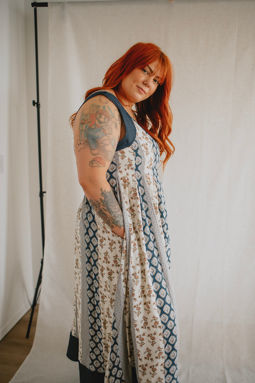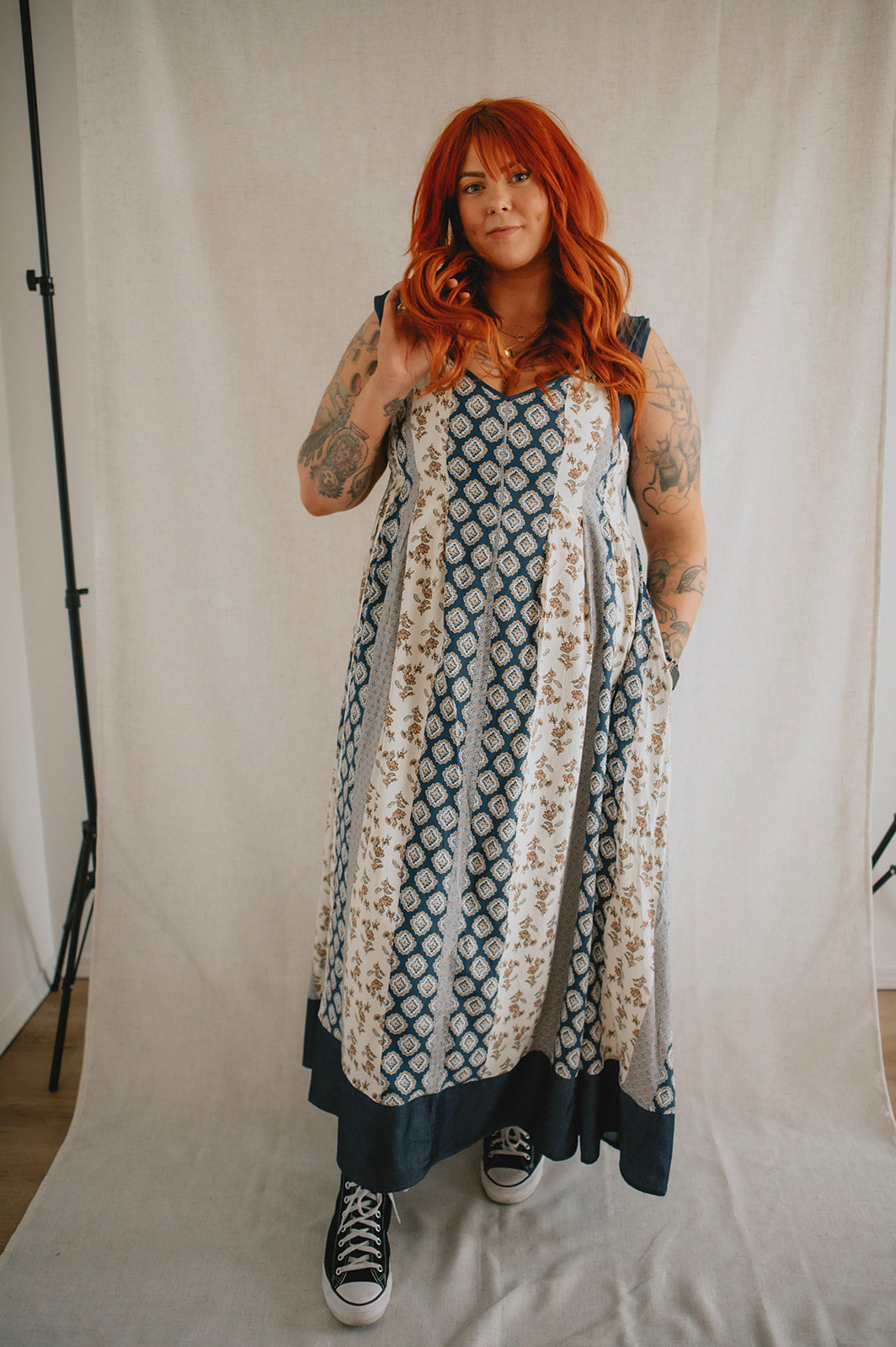 Meet the new girl on the block: The Cameron Denim Detail Midi Dress, a captivating fusion of style and comfort. Featuring a flattering v-neck and midi length, this dress showcases mixed pattern panels for a unique aesthetic. With denim straps and bottom hem accents, along with a lower back peek-a-boo detail, it exudes casual sophistication. Complete with a smocked back and bra-friendly design, it offers both versatility and ease of wear for any occasion.
