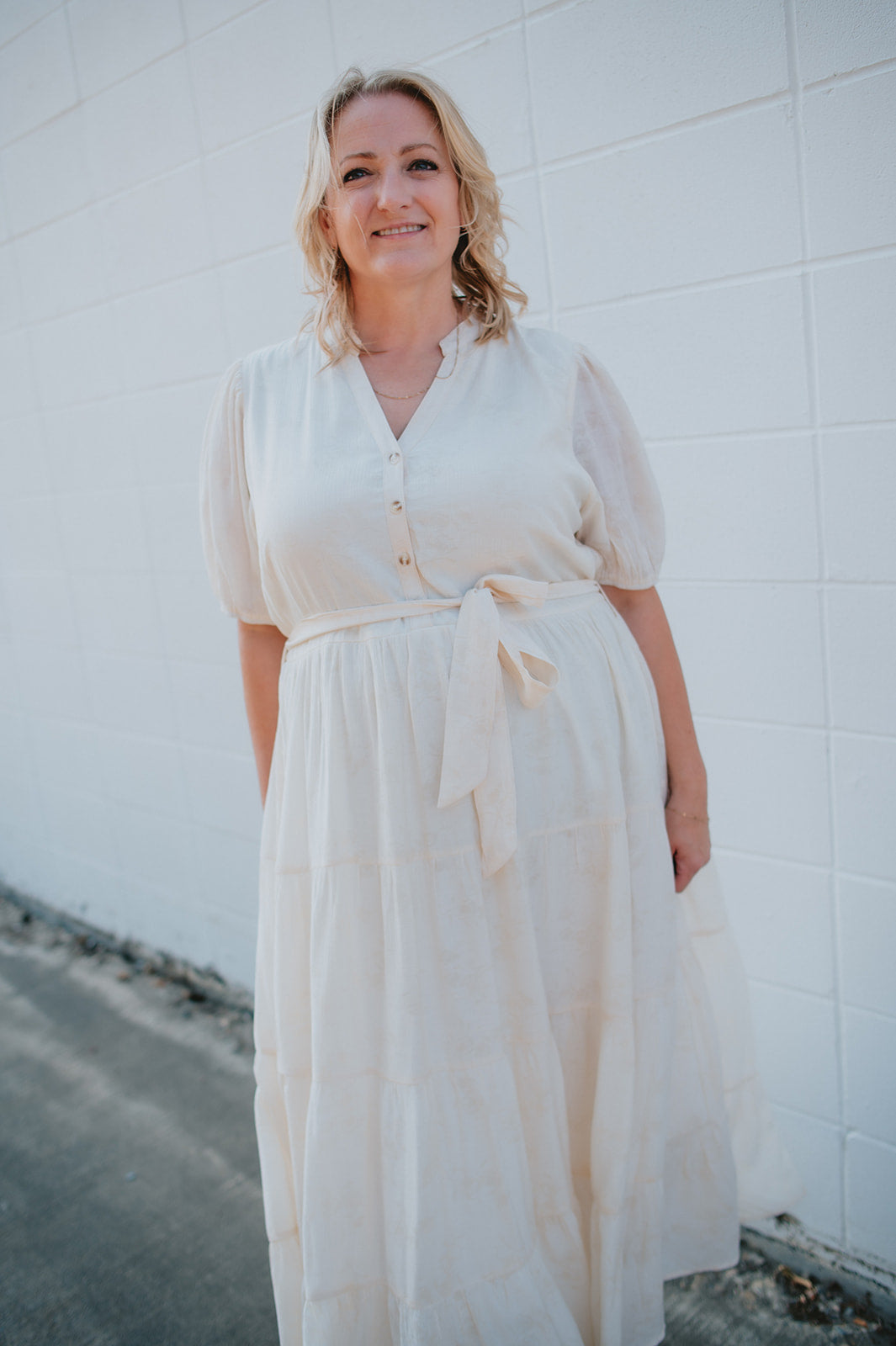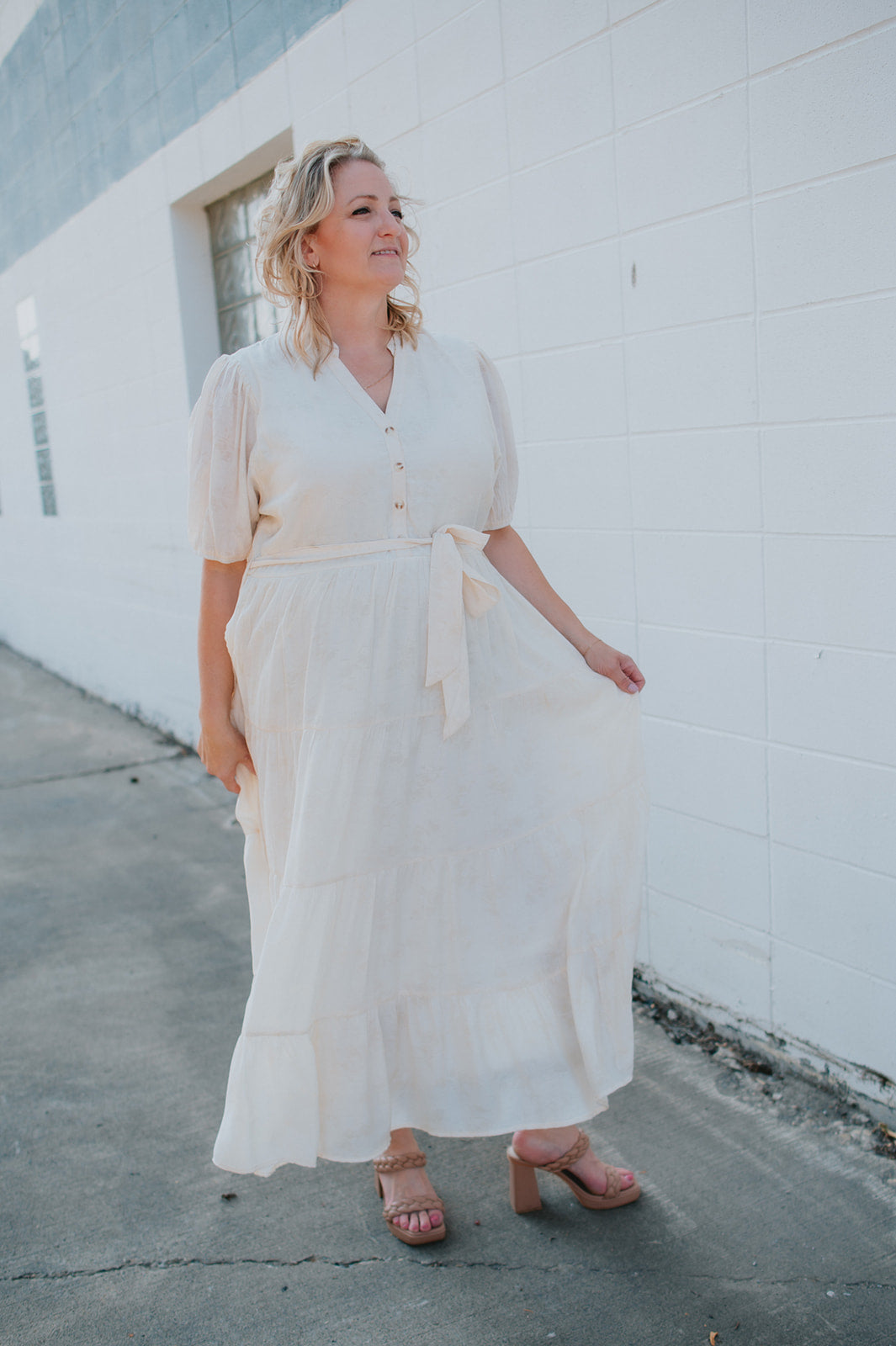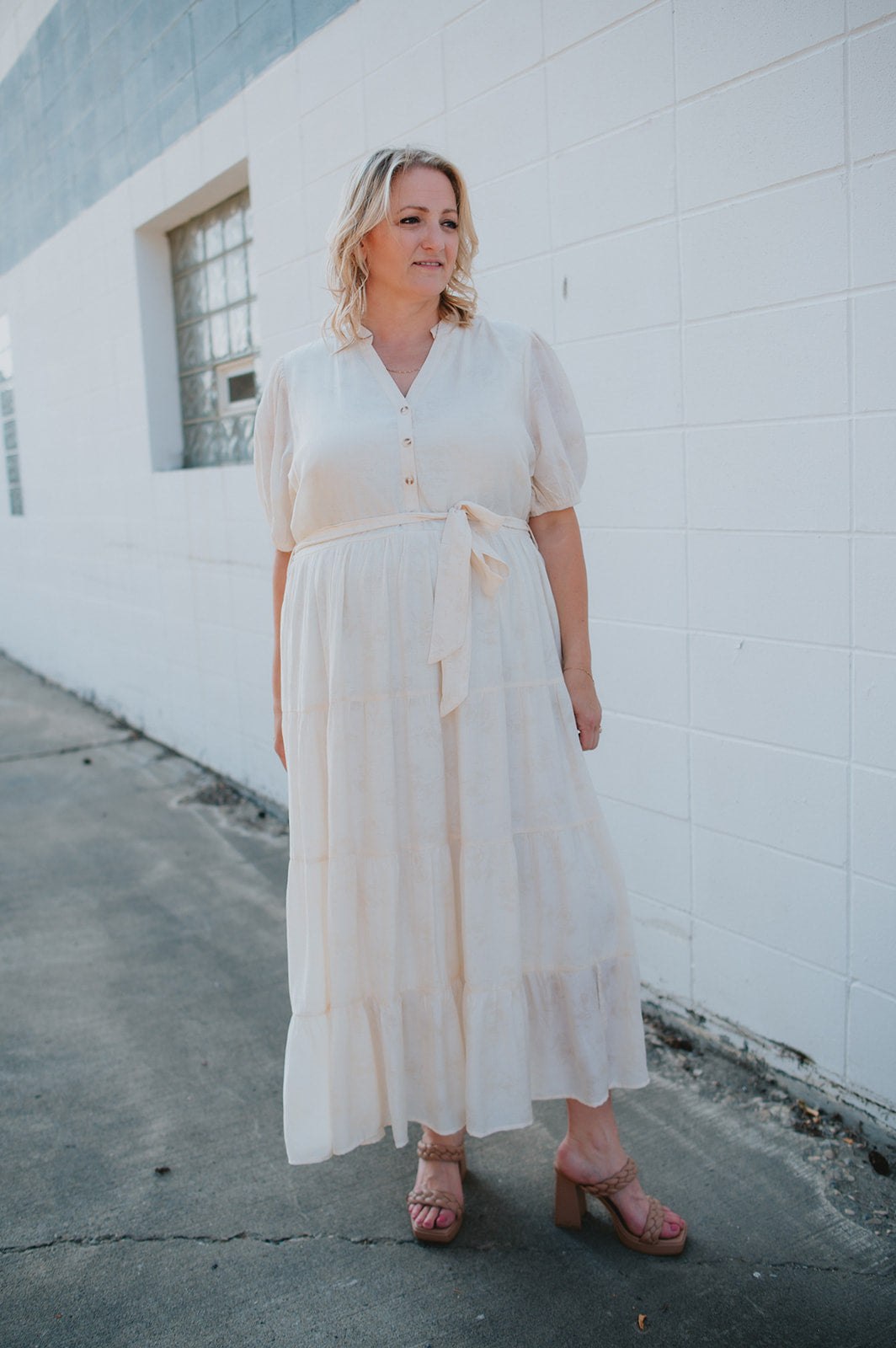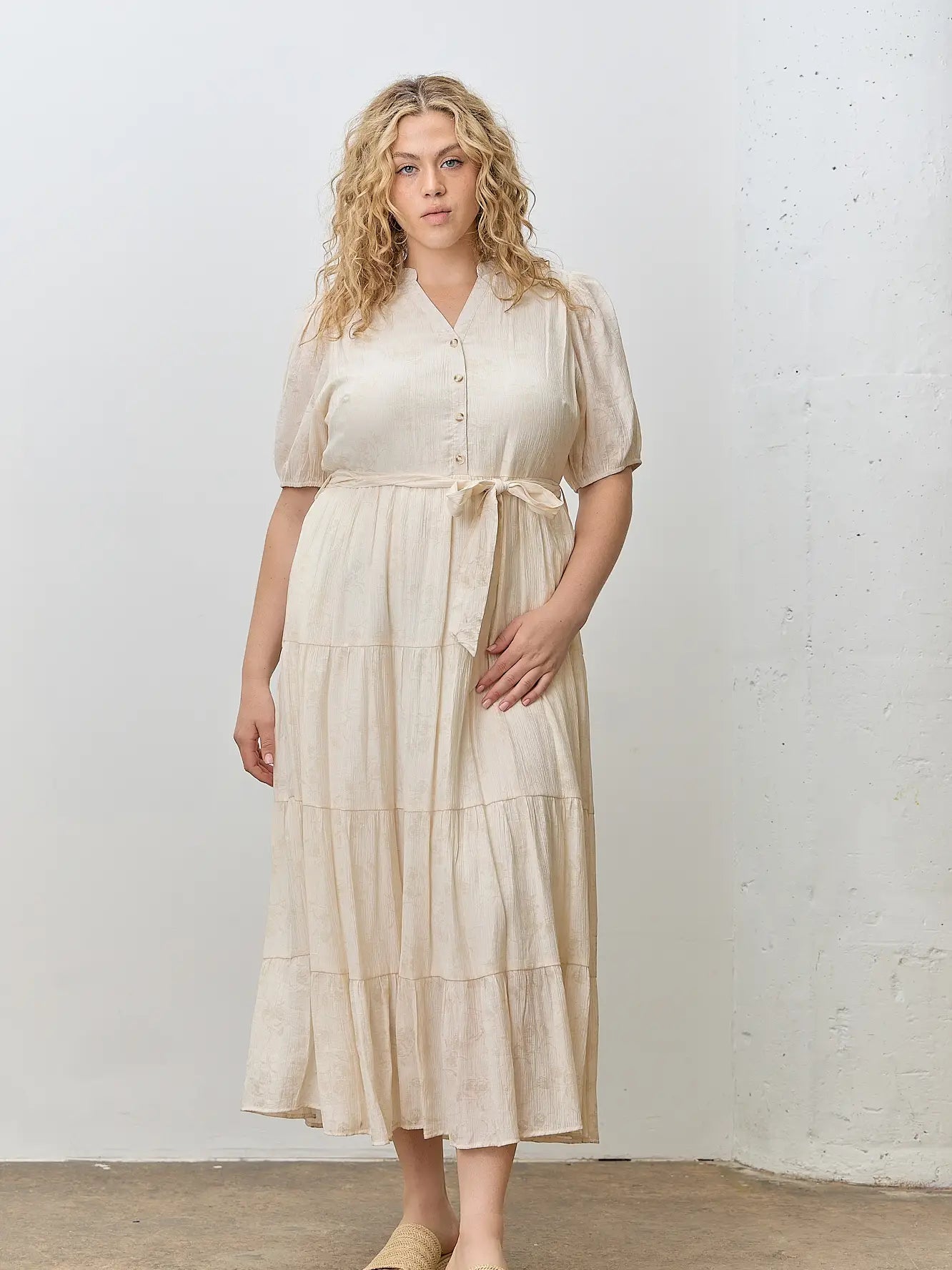 The Cassey Tiered Midi Dress - Cream - PLUS