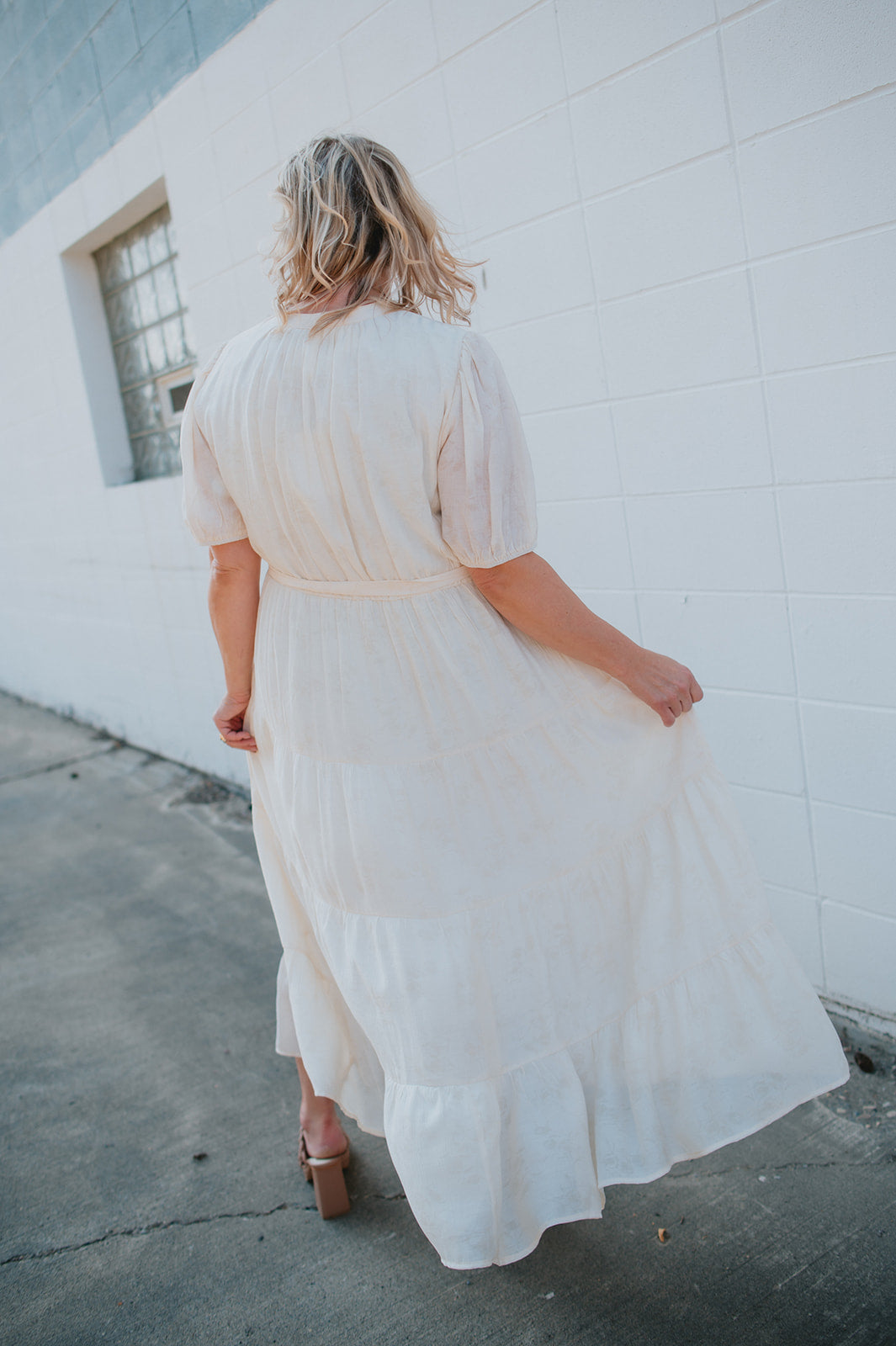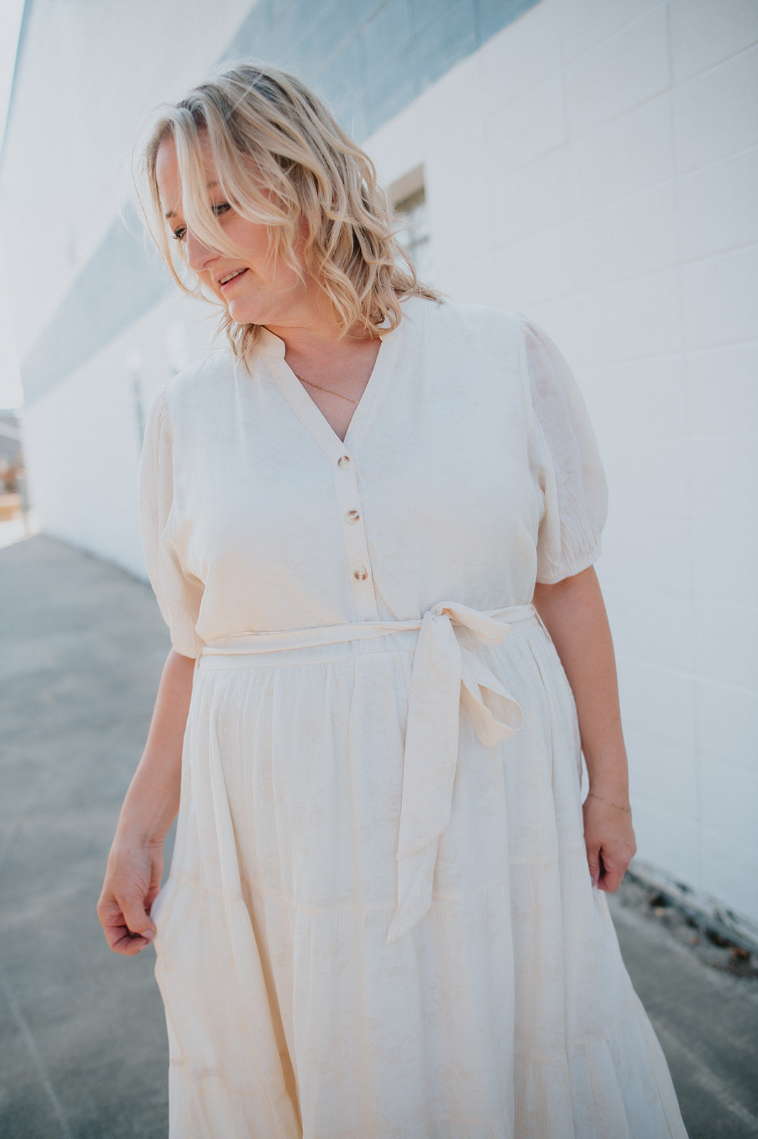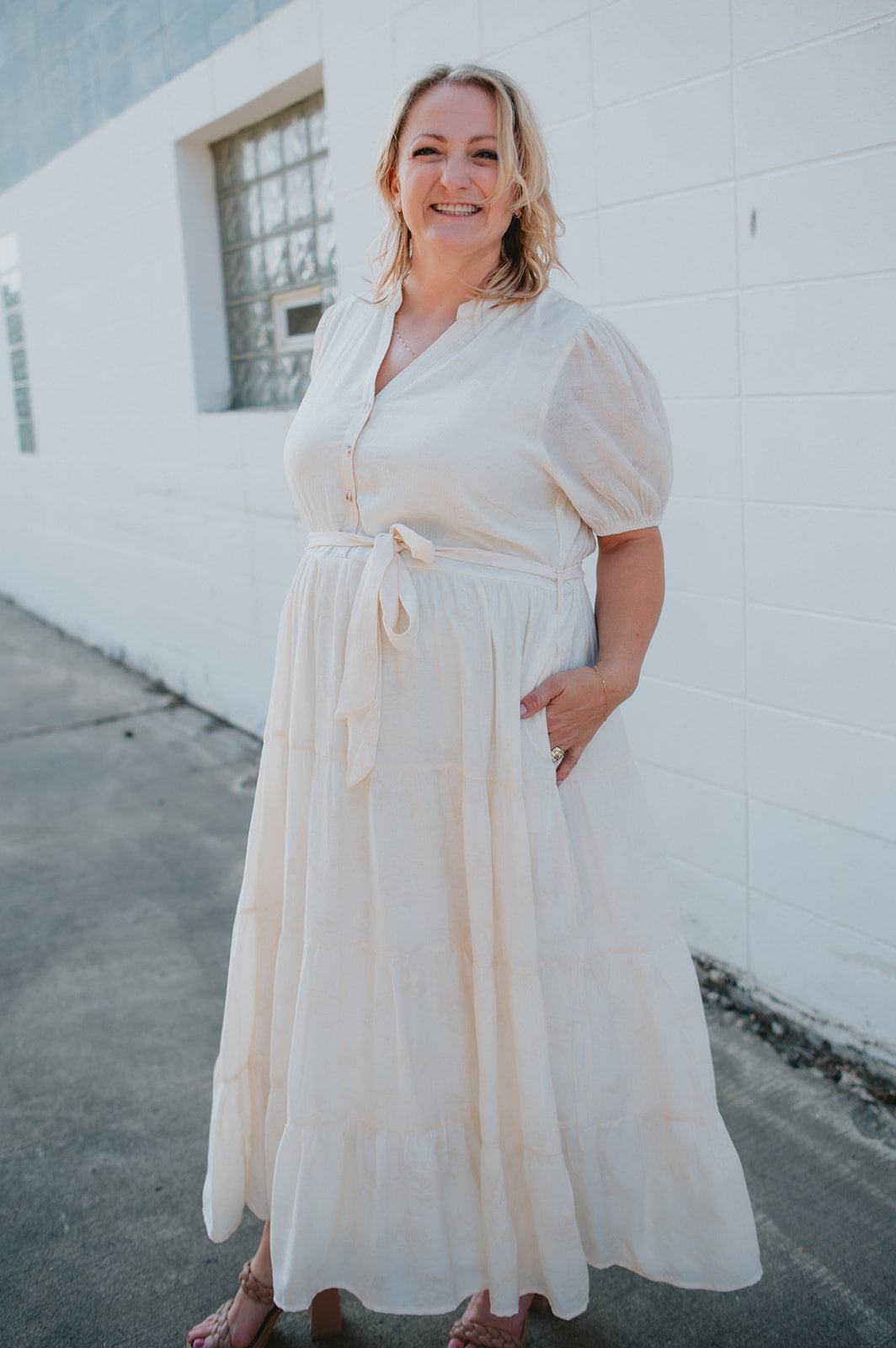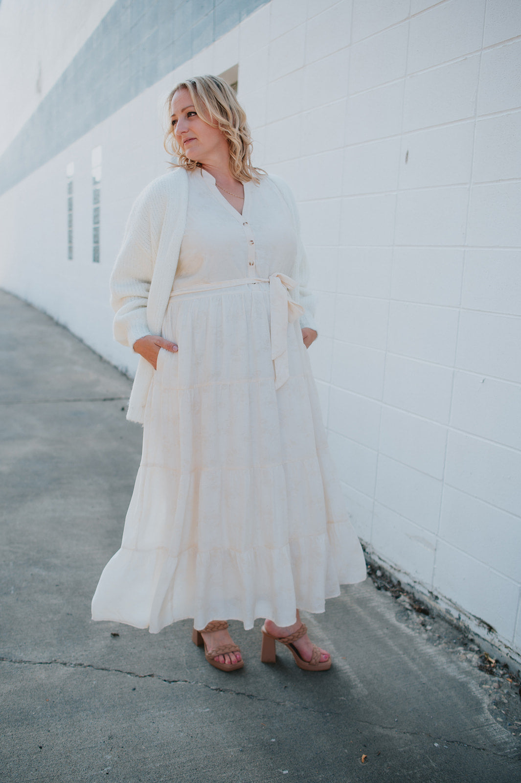 The Cassey Tiered Midi Dress - Cream - PLUS