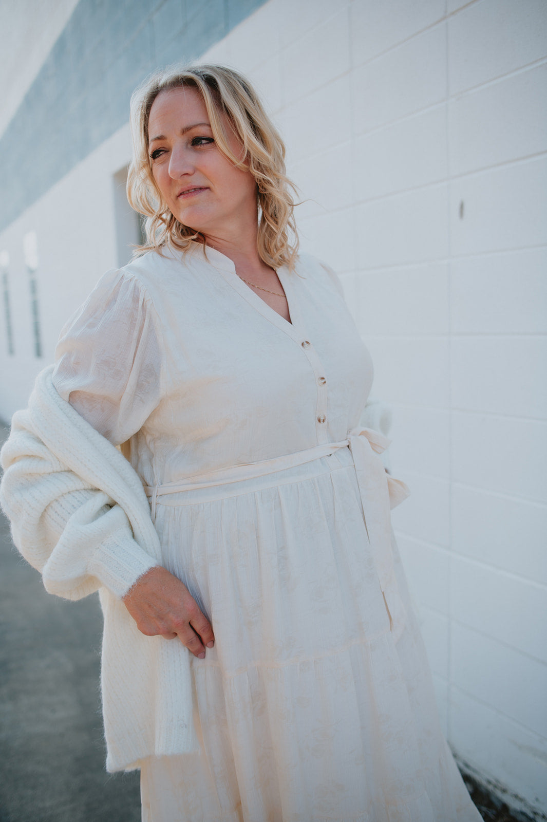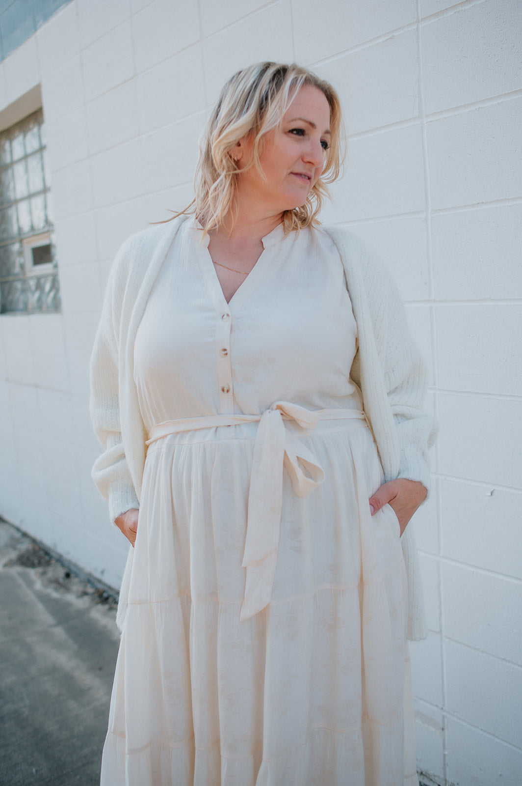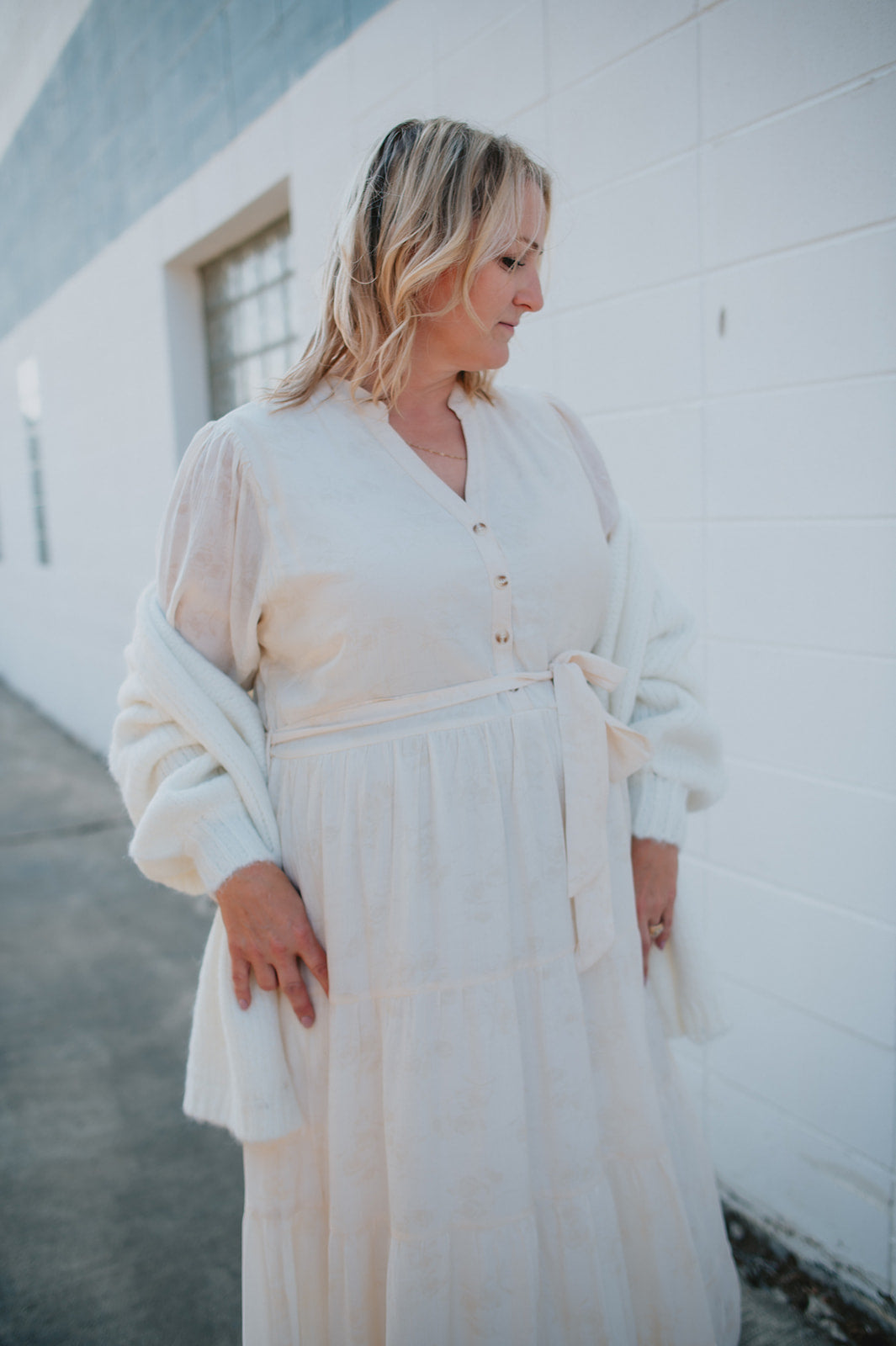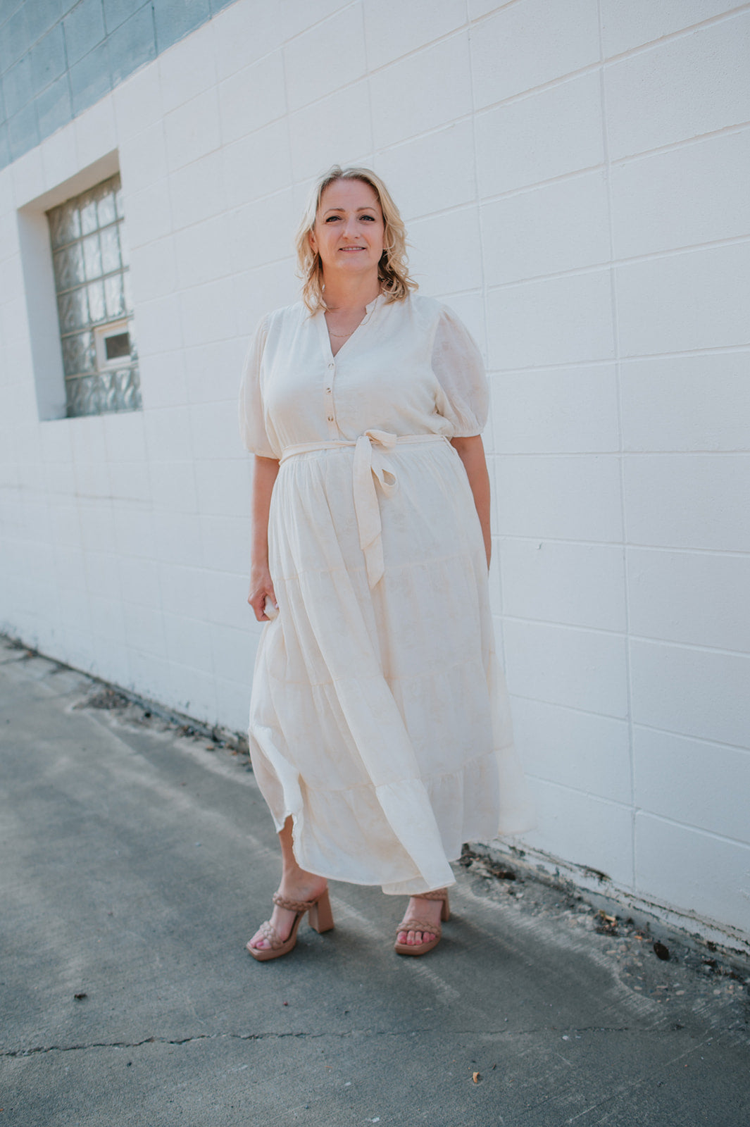 The Cassey Tiered Midi Dress - Cream - PLUS
