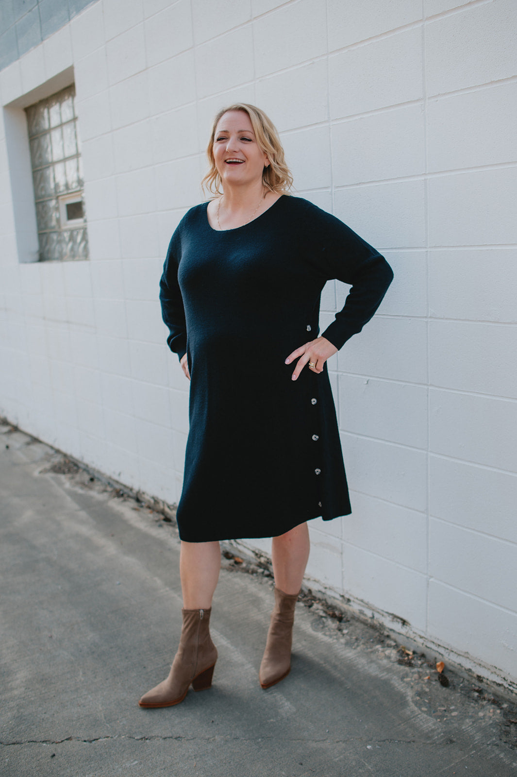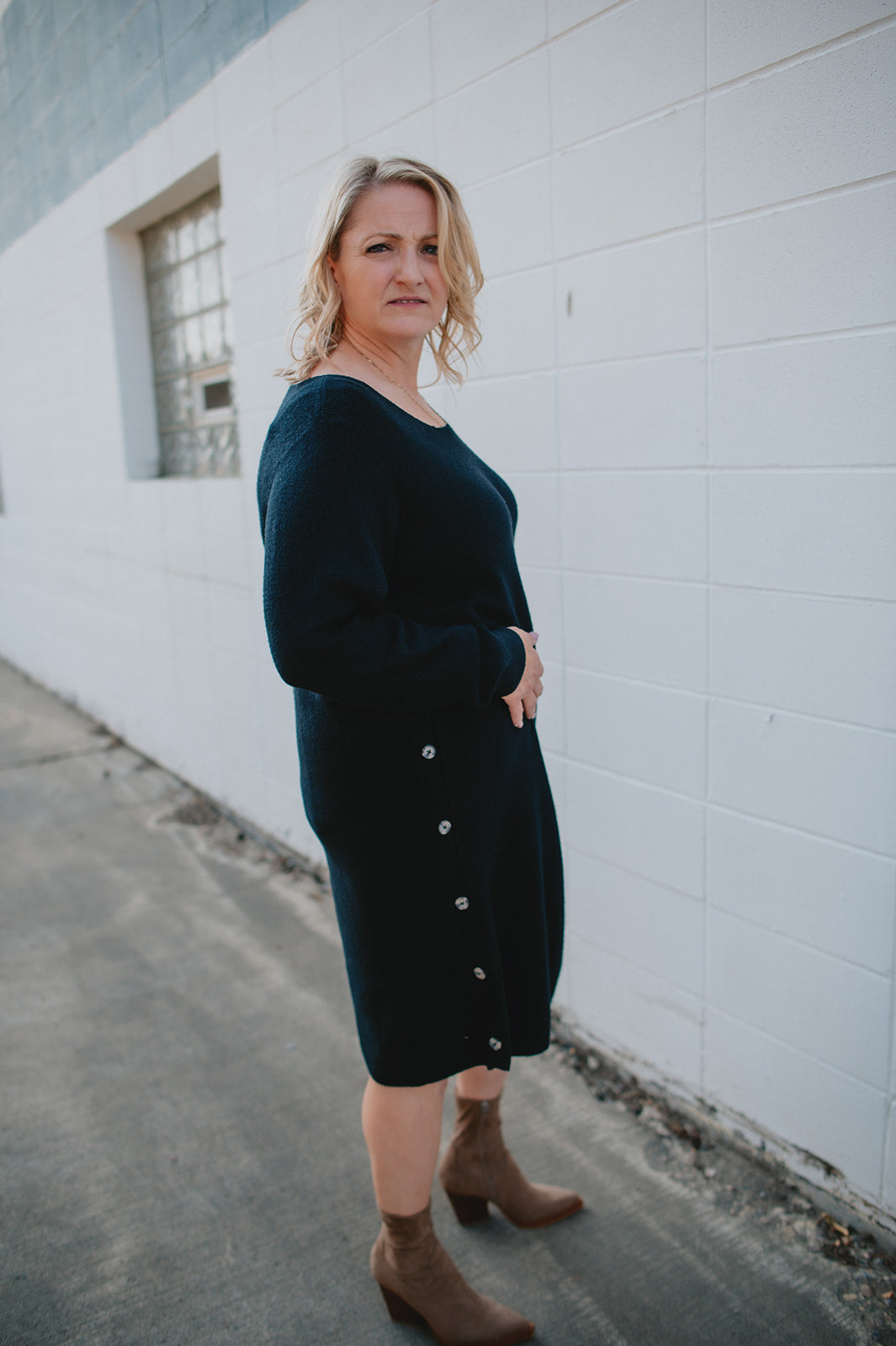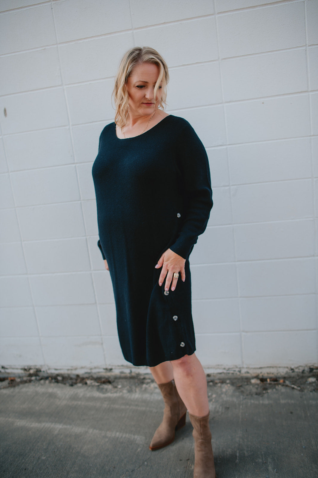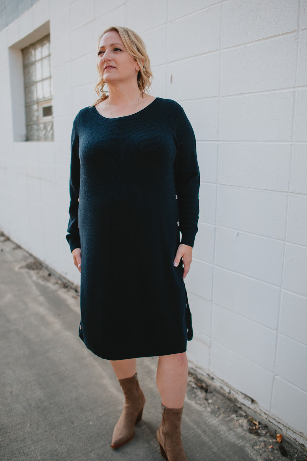 The Christine Knit Button Dress - PLUS