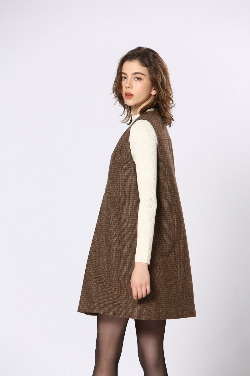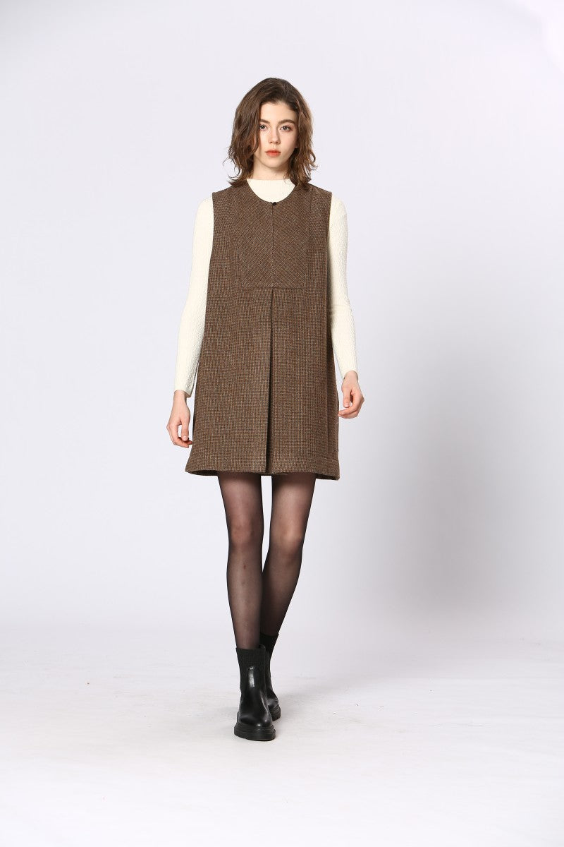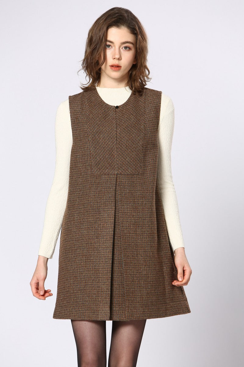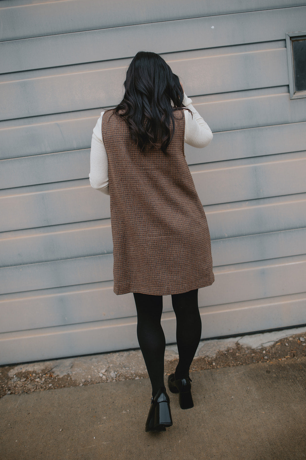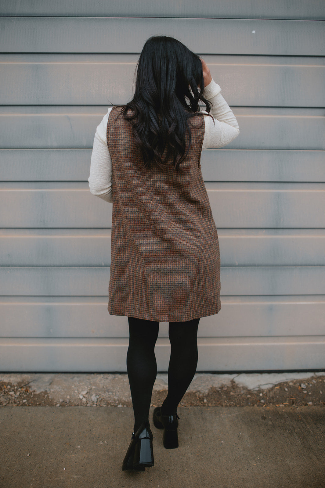 Channel your inner Stars Hollow charm with the Hazel Tweed Dress — a modern nod to classic academia. Crafted from soft wool-blend tweed in warm chestnut tones, it features a tailored silhouette.