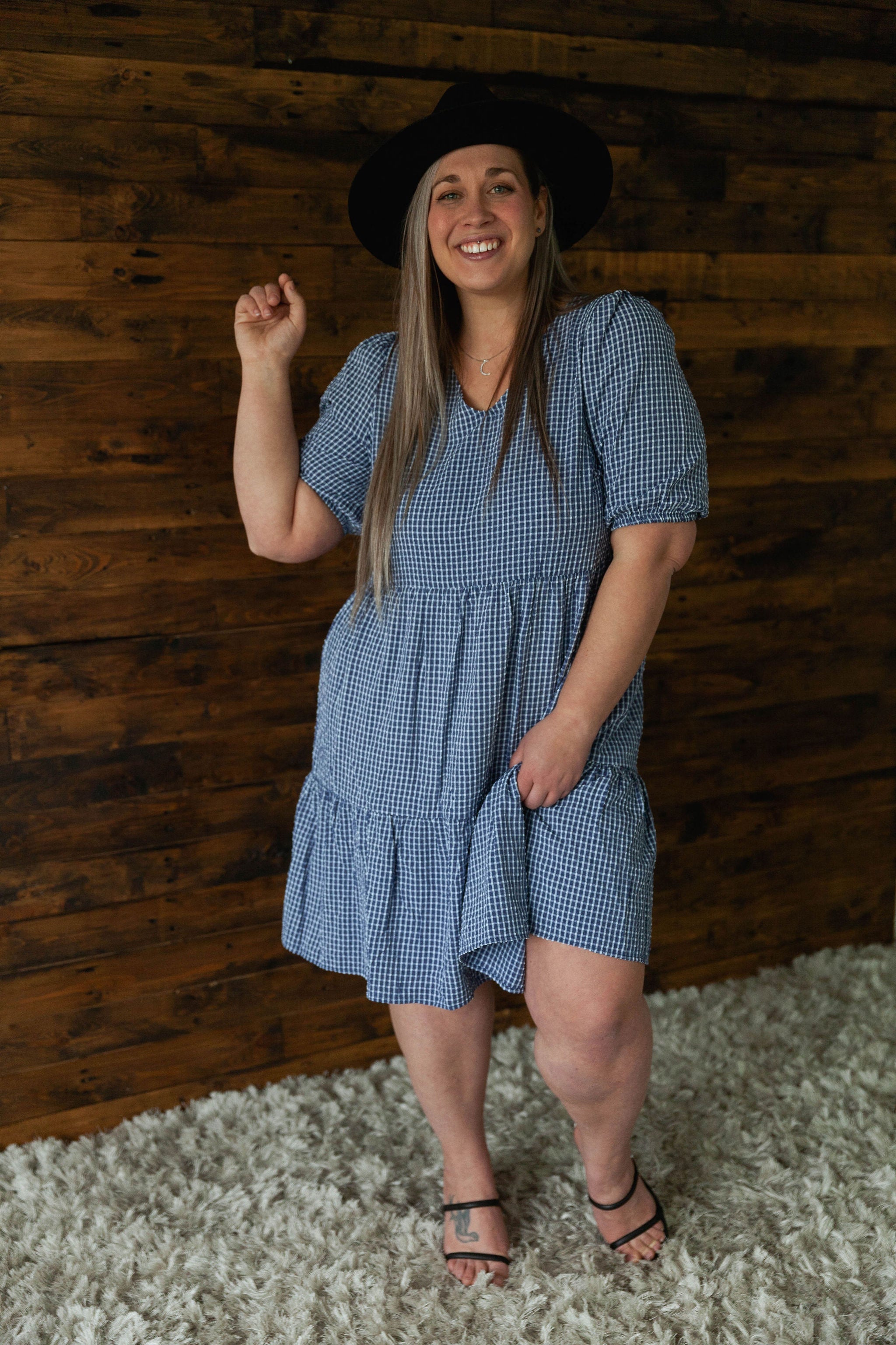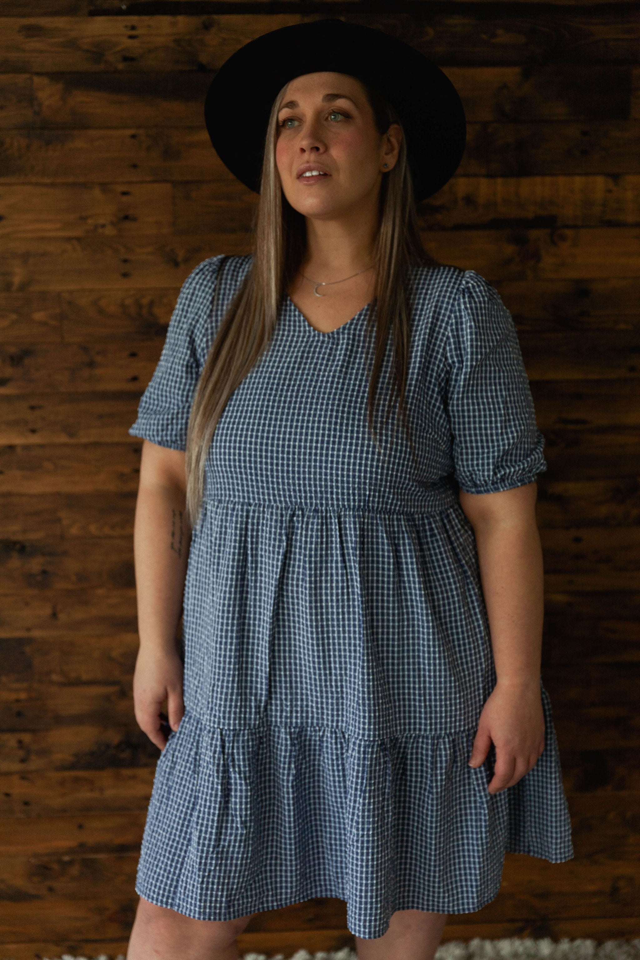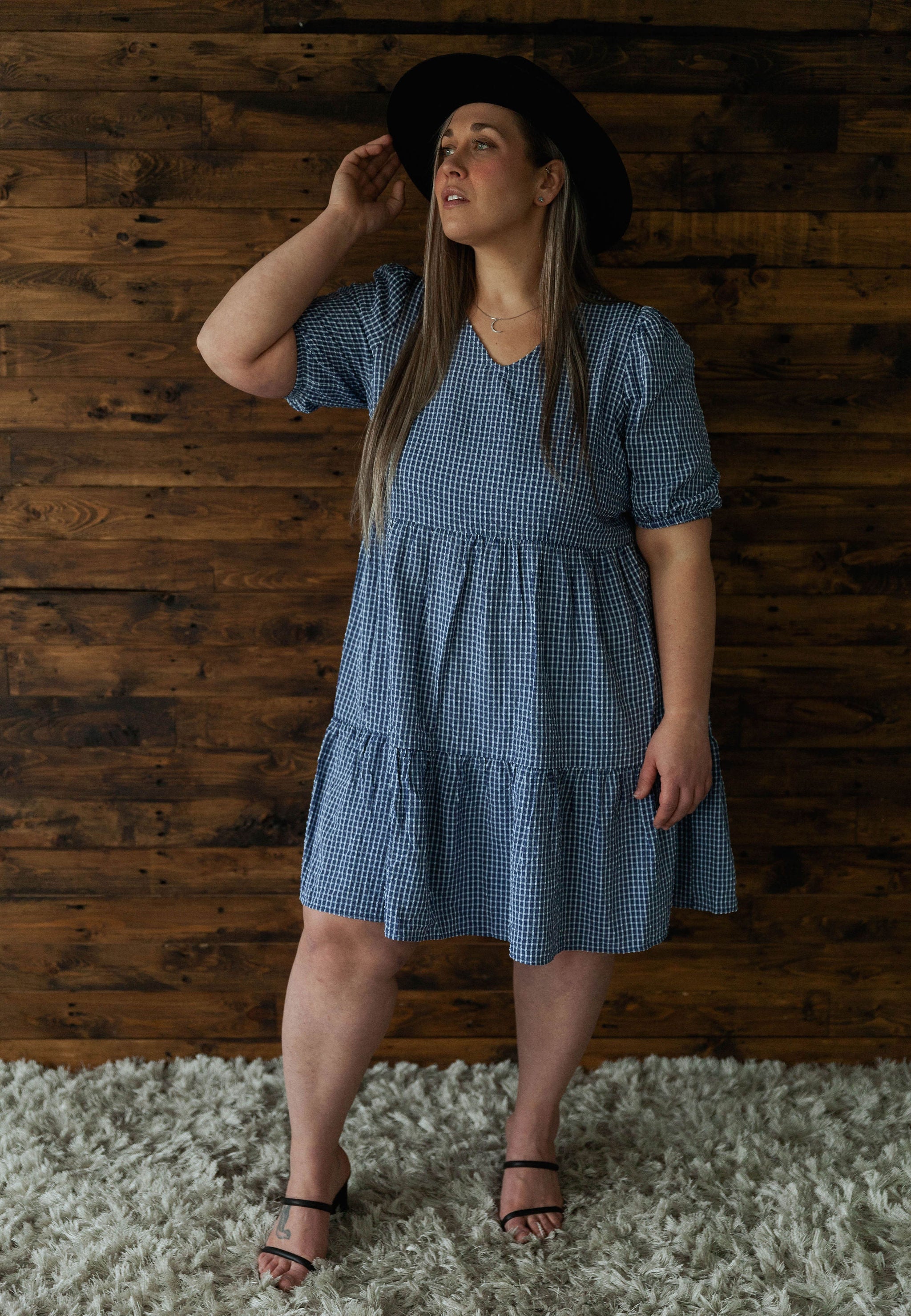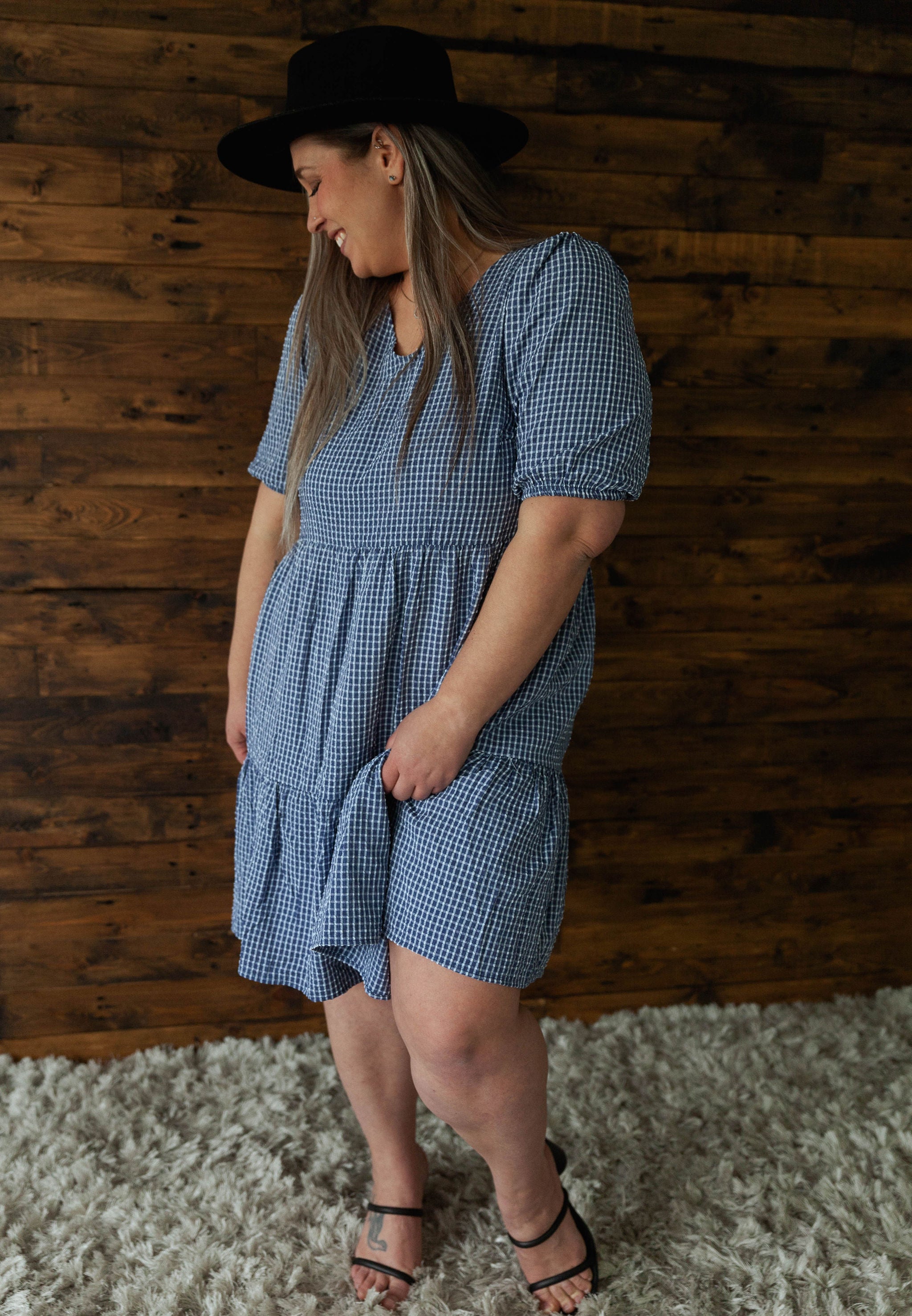 This lovely soft blue checked dress is perfect to see you through spring and summer. Its relaxed fit makes it super comfy and versatile.