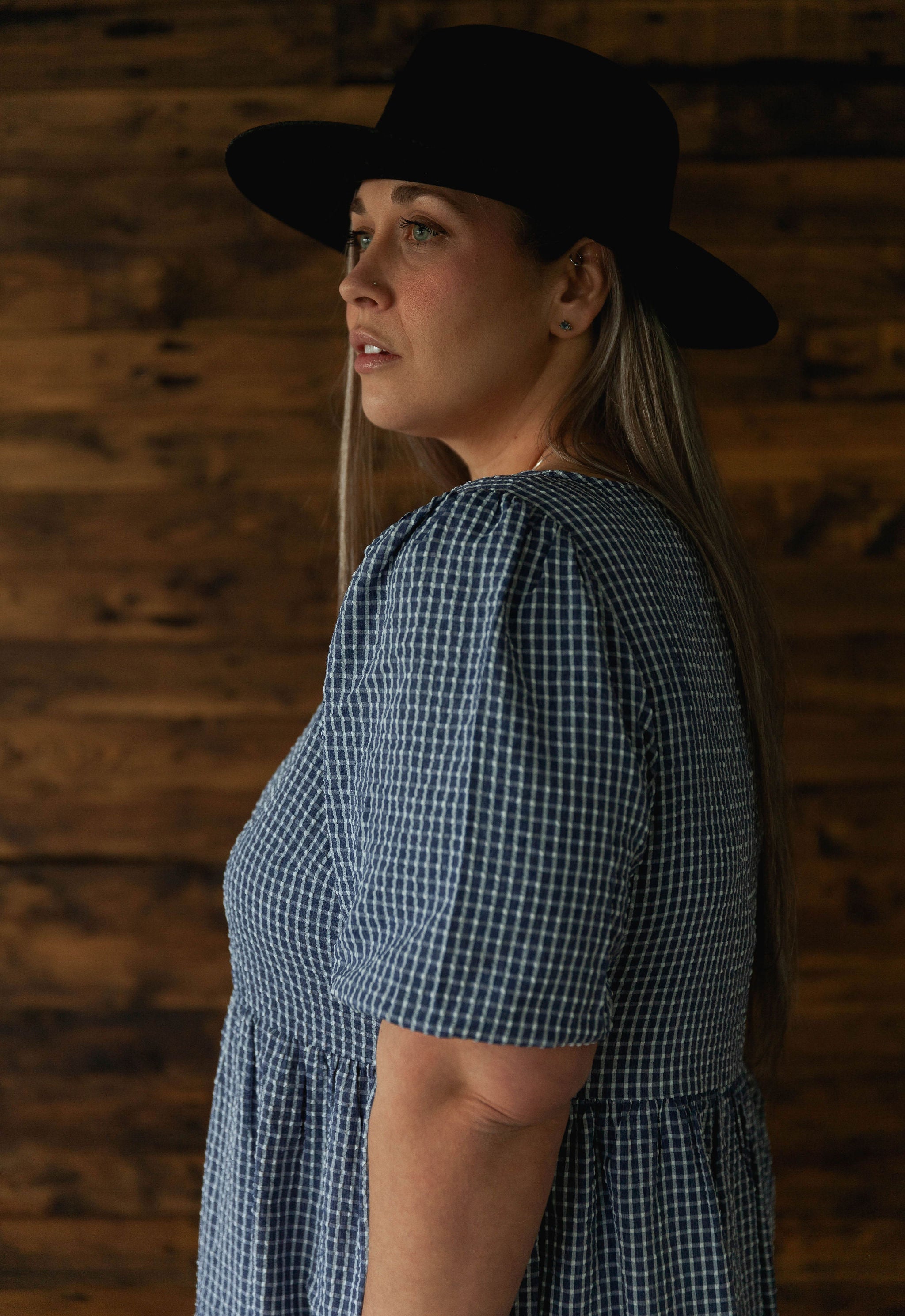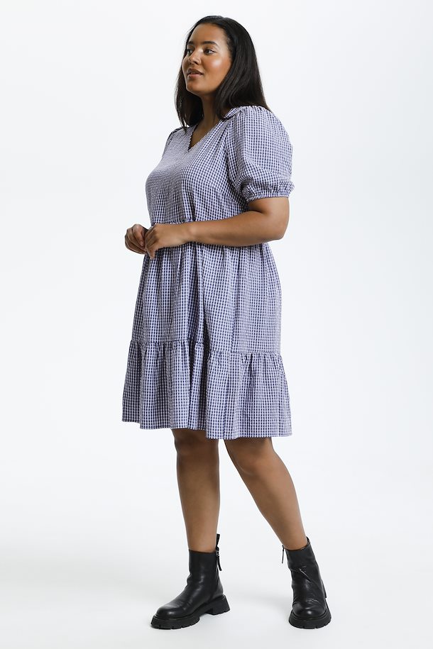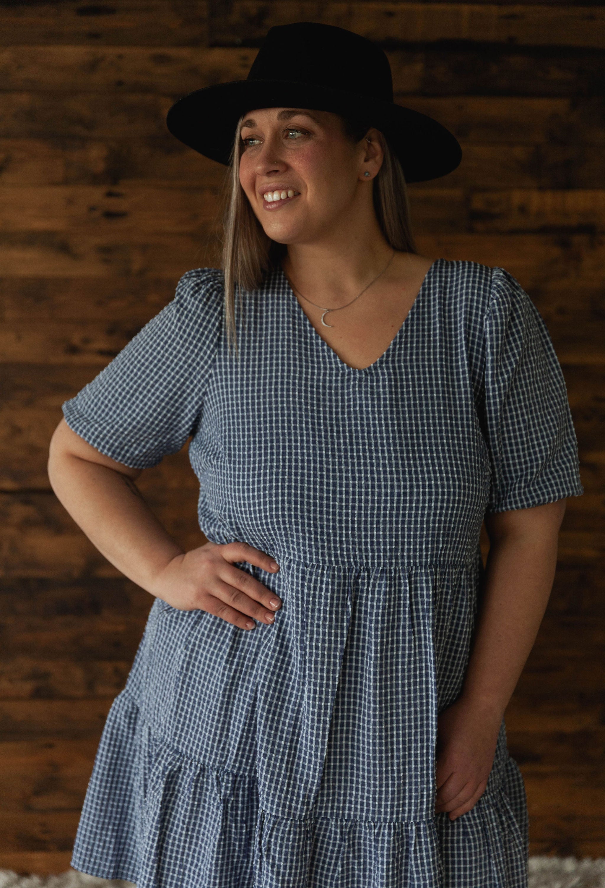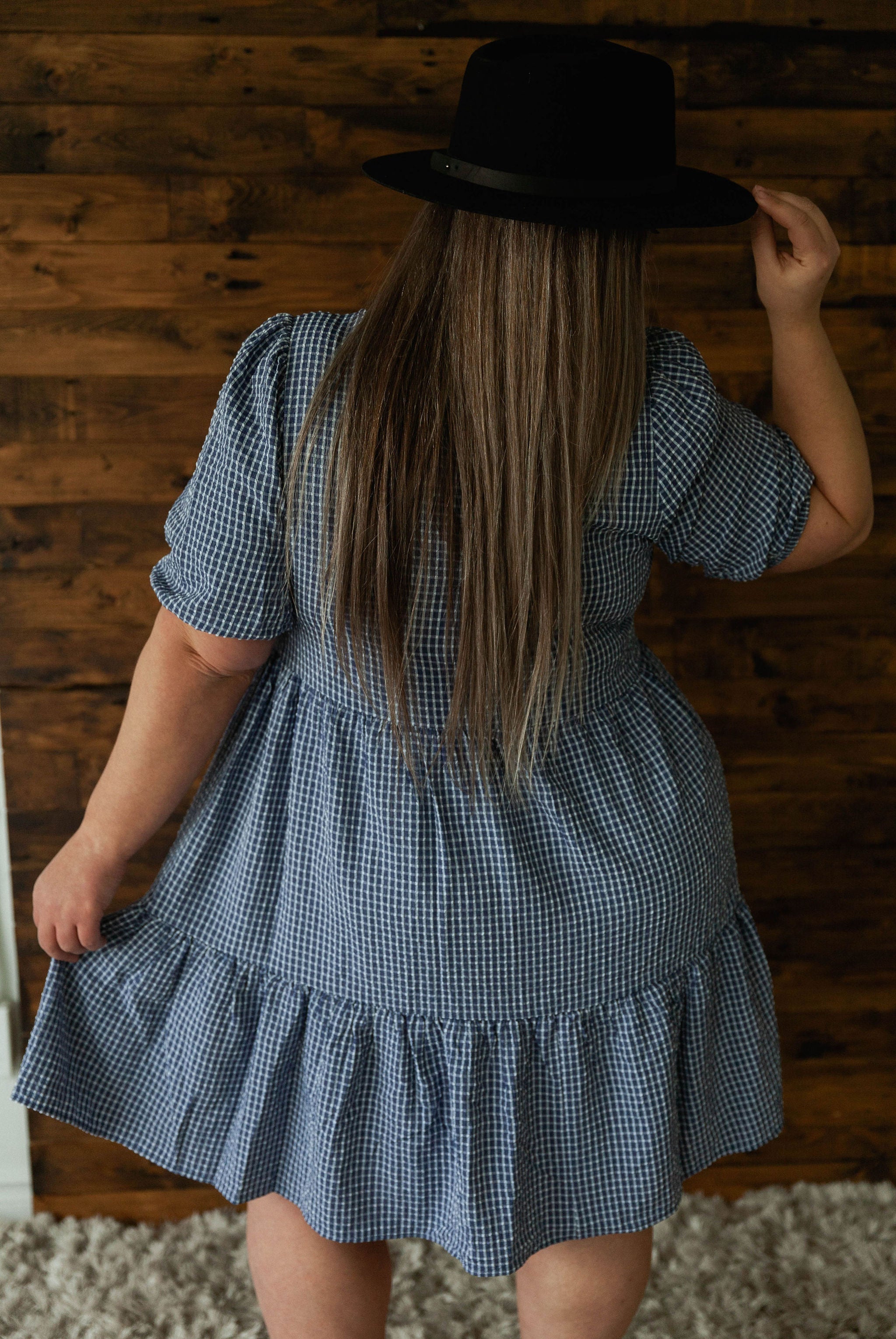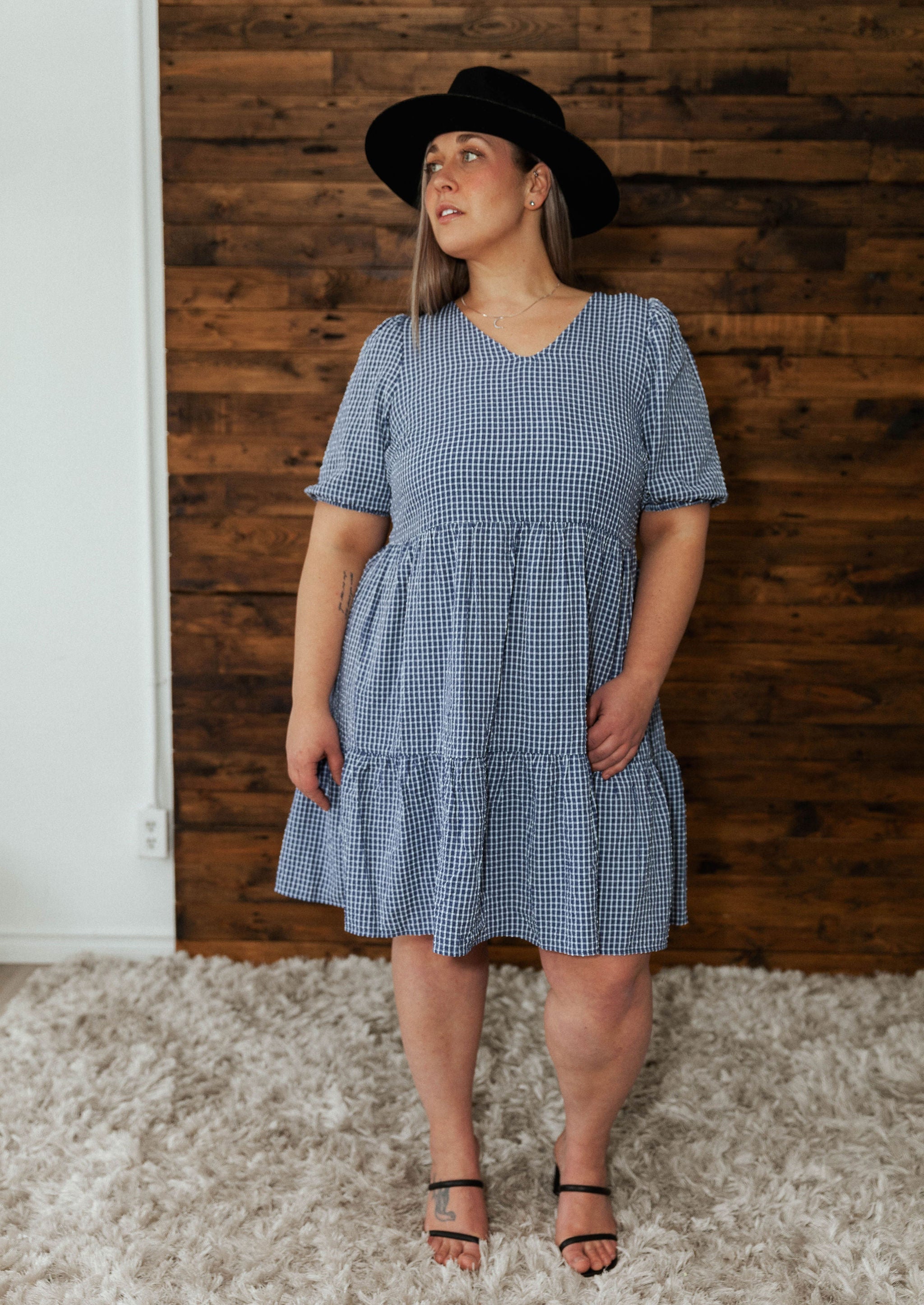 This lovely soft blue checked dress is perfect to see you through spring and summer. Its relaxed fit makes it super comfy and versatile.