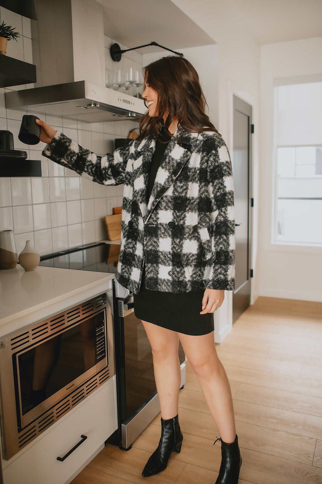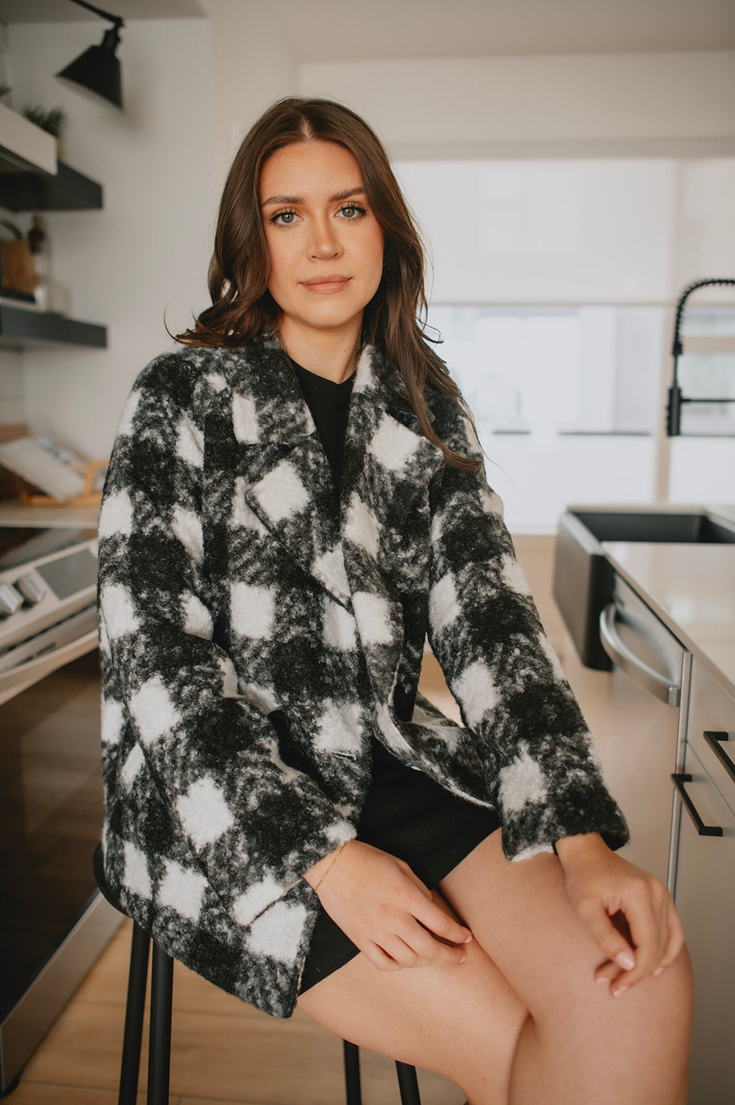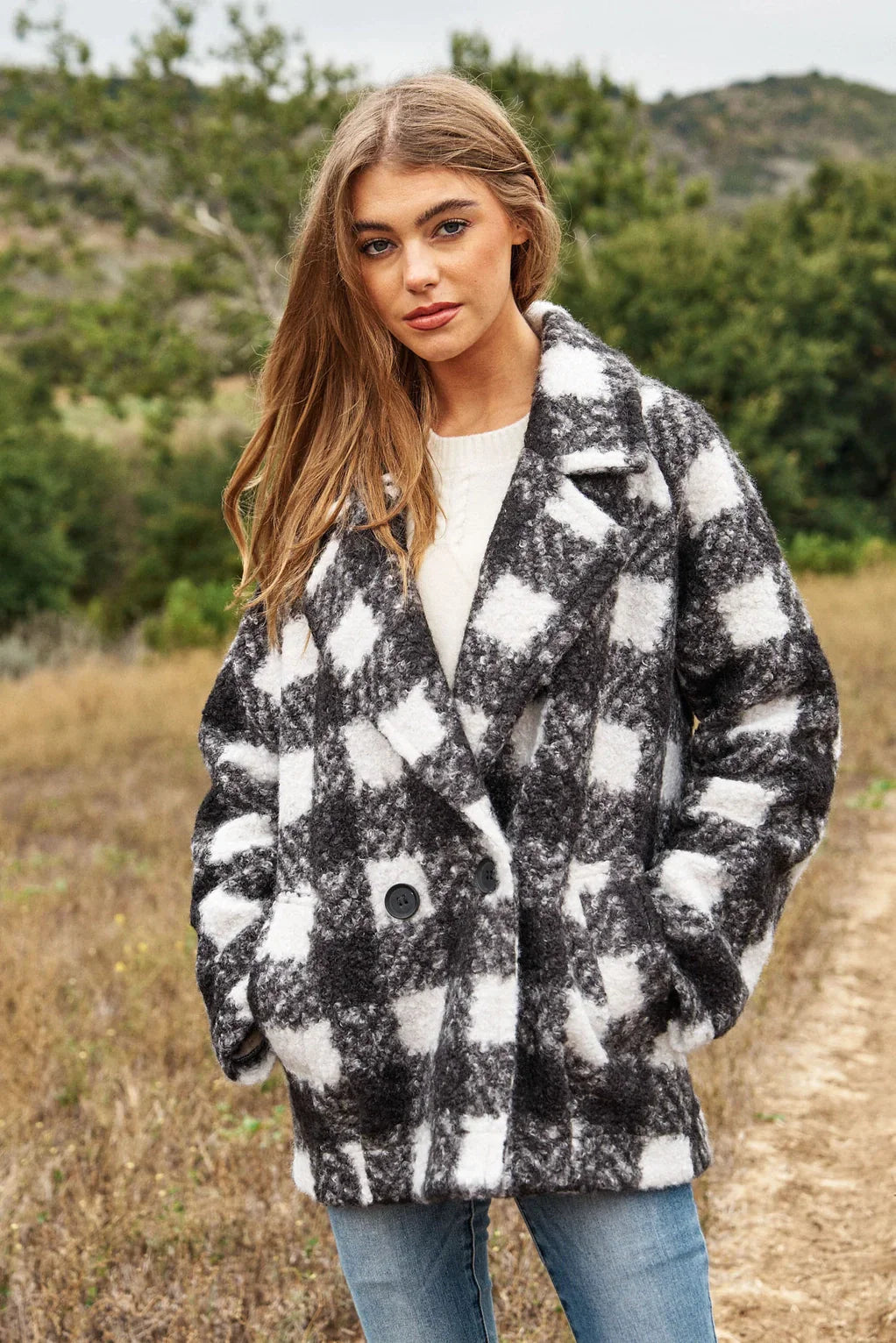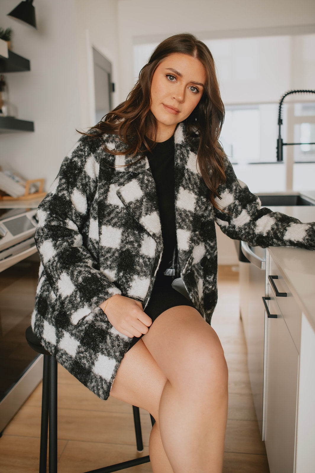 Let's face it, we wear jacket 90% of the year and this one is one you'll wear a LOT! She's unstructured which gives her more of a big sweater feel, and the bright buffalo check keeps her cheeky. Hits right at the hip and the double breasted fit helps give some shape. We love her and will be adding her to the rotation asap!