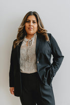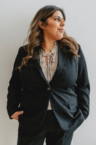 Structured perfection. A trendy fitted blazer meant to class up any outfit. Single button closure.