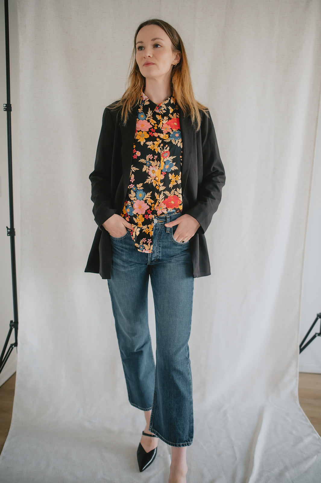 The Tara Blazer is a contemporary and versatile blazer, crafted from a classic tailored fabric blend of viscose and polyester with stretch. It is designed with a slightly oversized fit, shoulder pads and a minimalistic revers. The blazer is finished with a single button closure and welt pockets.