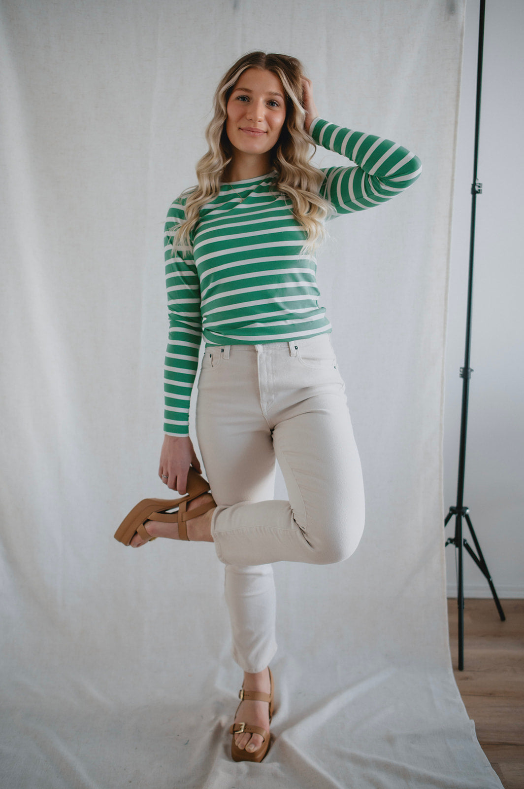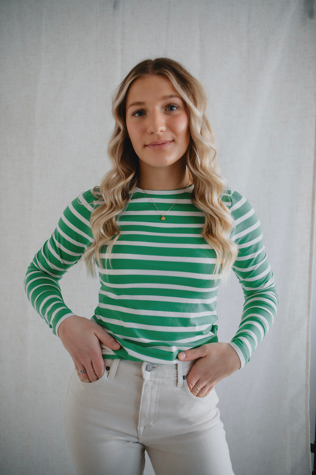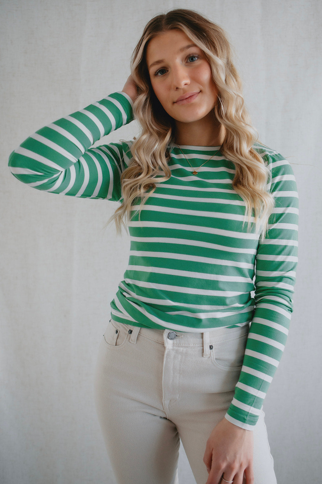 The Pamila Stripe Long Sleeve - Green Stripe - PLUS