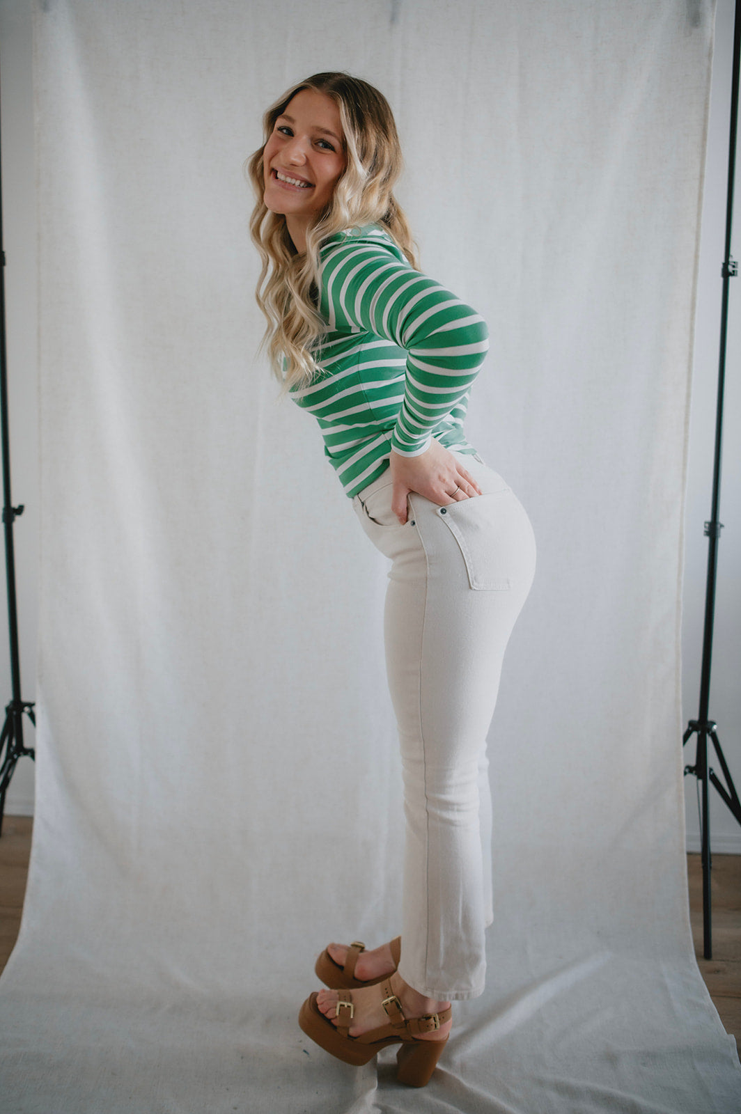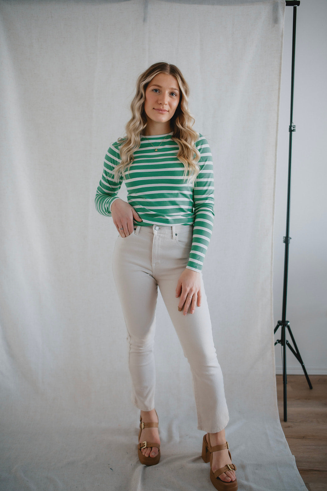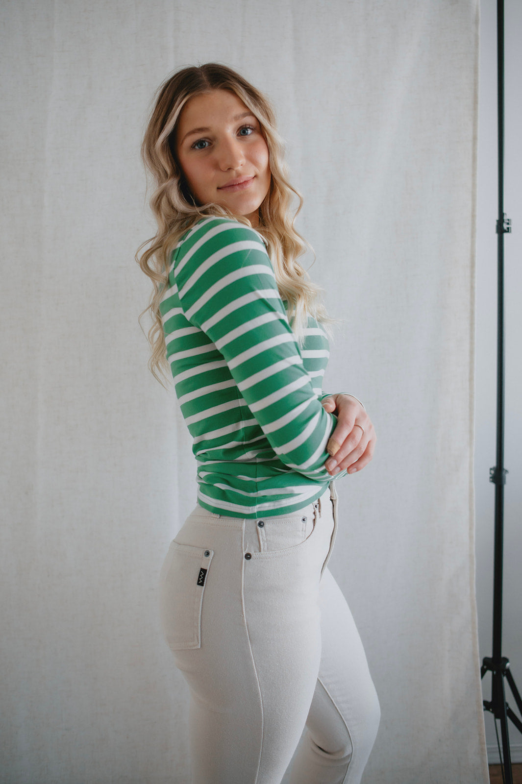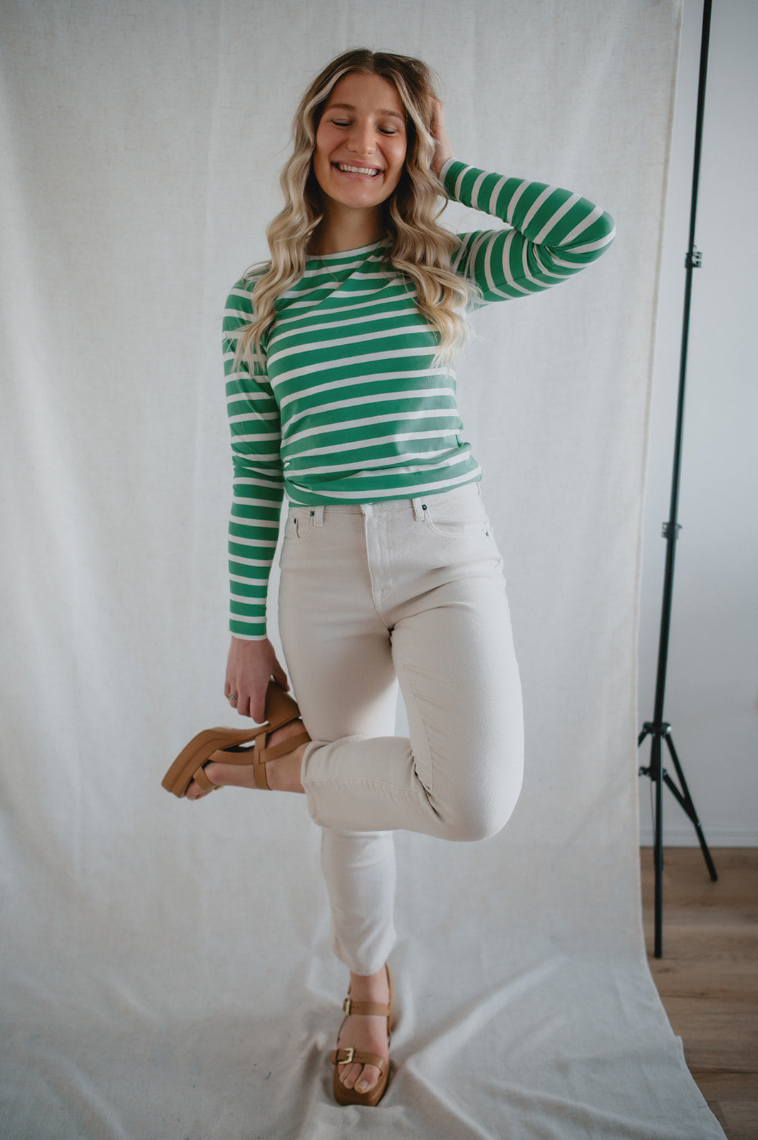 The Pamila Stripe Long Sleeve - Green Stripe - PLUS