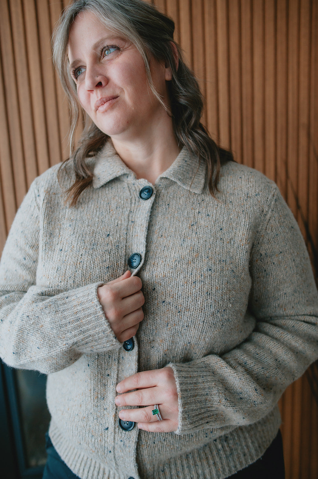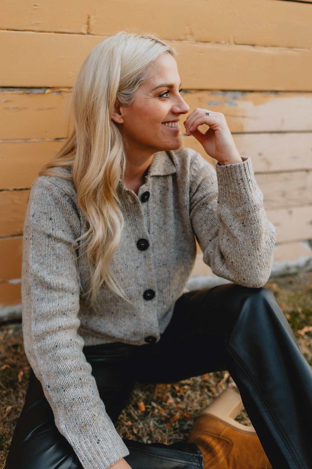 The Renette has a classic collared silhouette with contrast buttons, wear it buttoned up as a top or open as a layer.