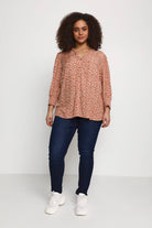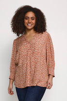 The most beautiful patterned and coloured blouse! This blouse has functional buttons and a smocked sleeve detail. It extends in the back slightly for more coverage.