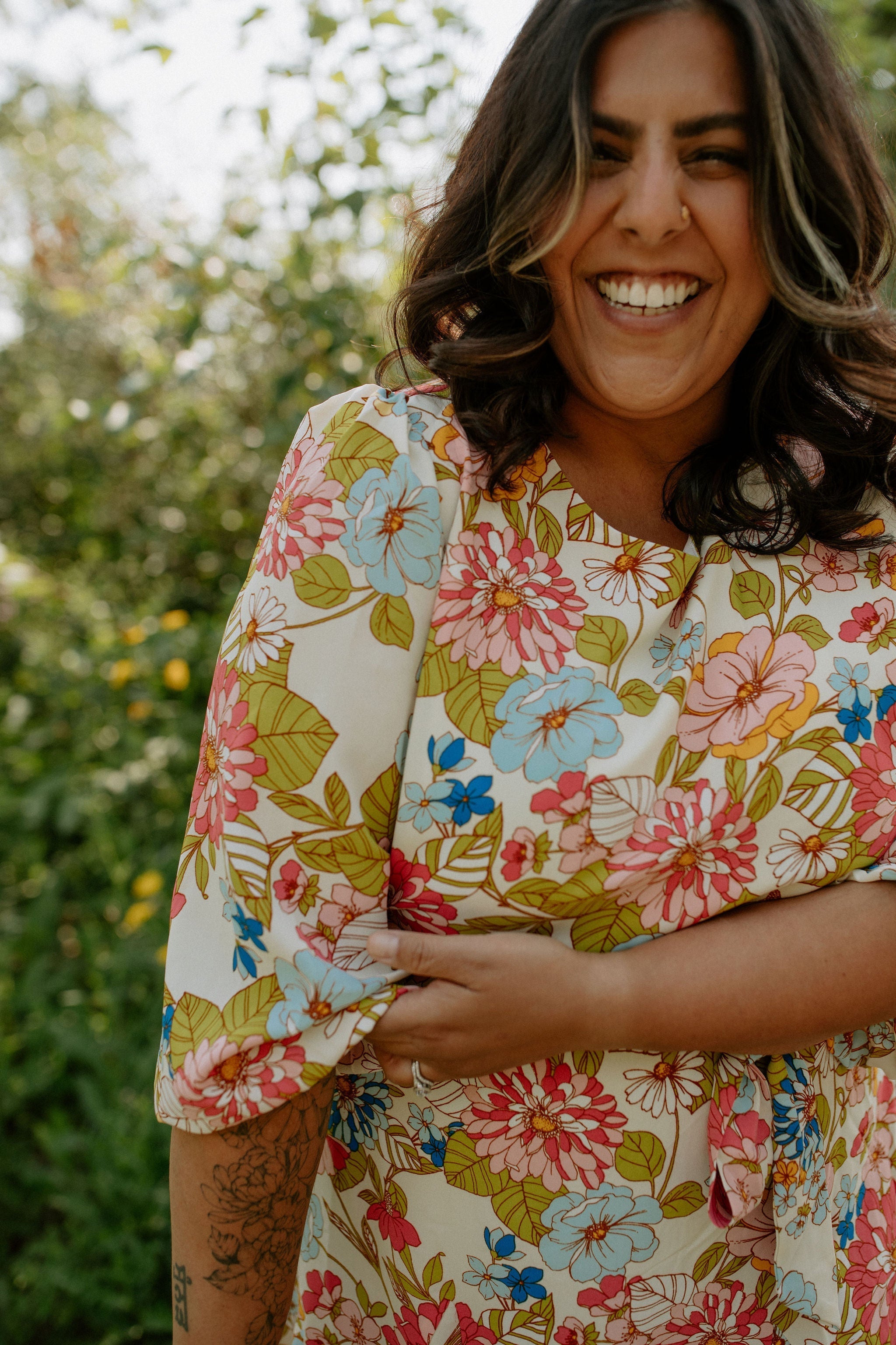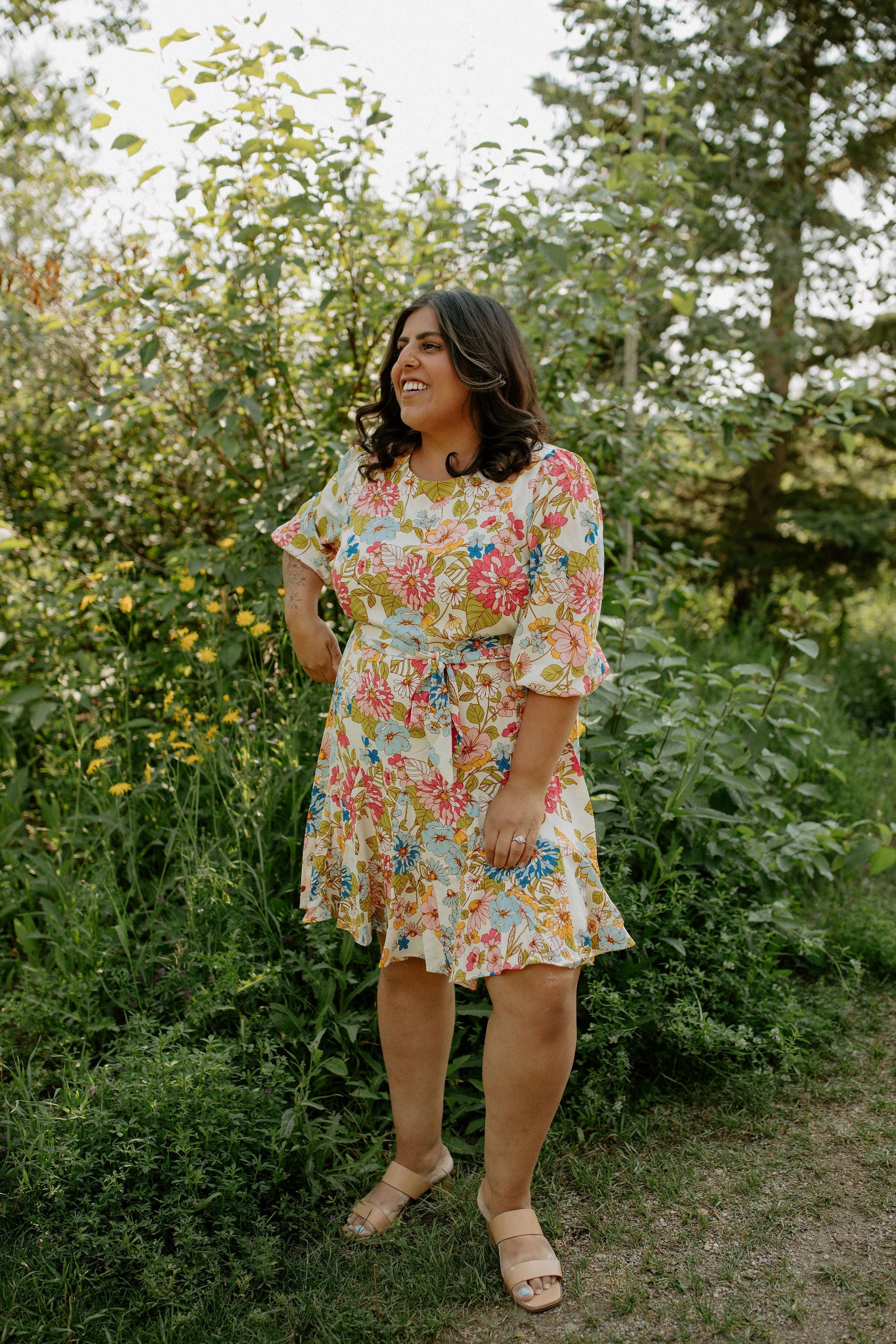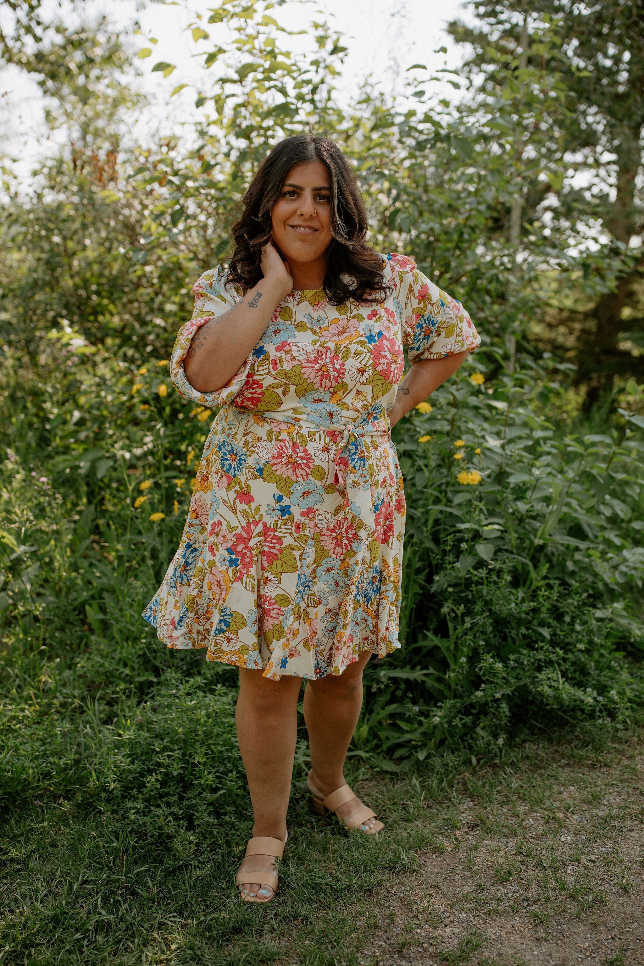 Nothing but good vibes in the Rochelle Balloon Sleeve Dress. Various bold flowers embody this classic style that features a flattering tie at the waist, and a slight ruffle at the bottom.