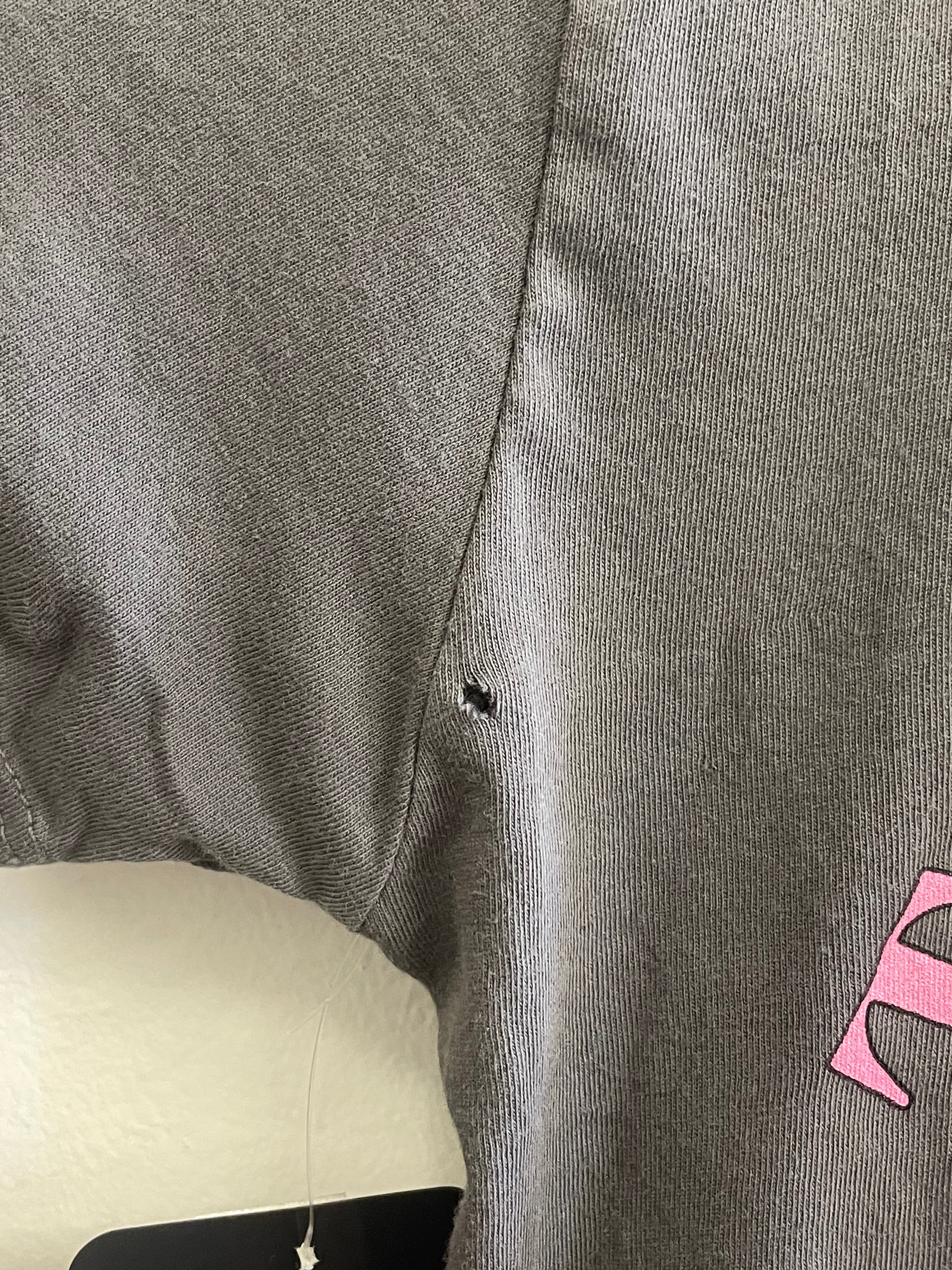 The MISFIT Details: Small hole on right shoulder seam, pictured.