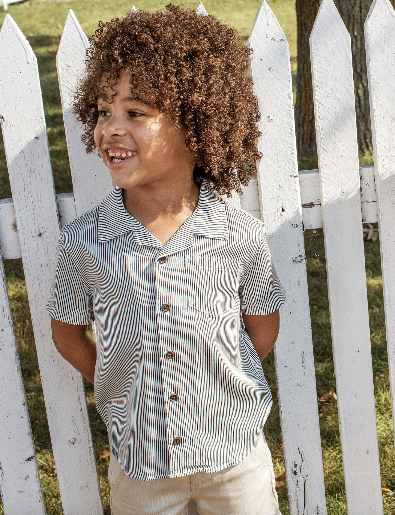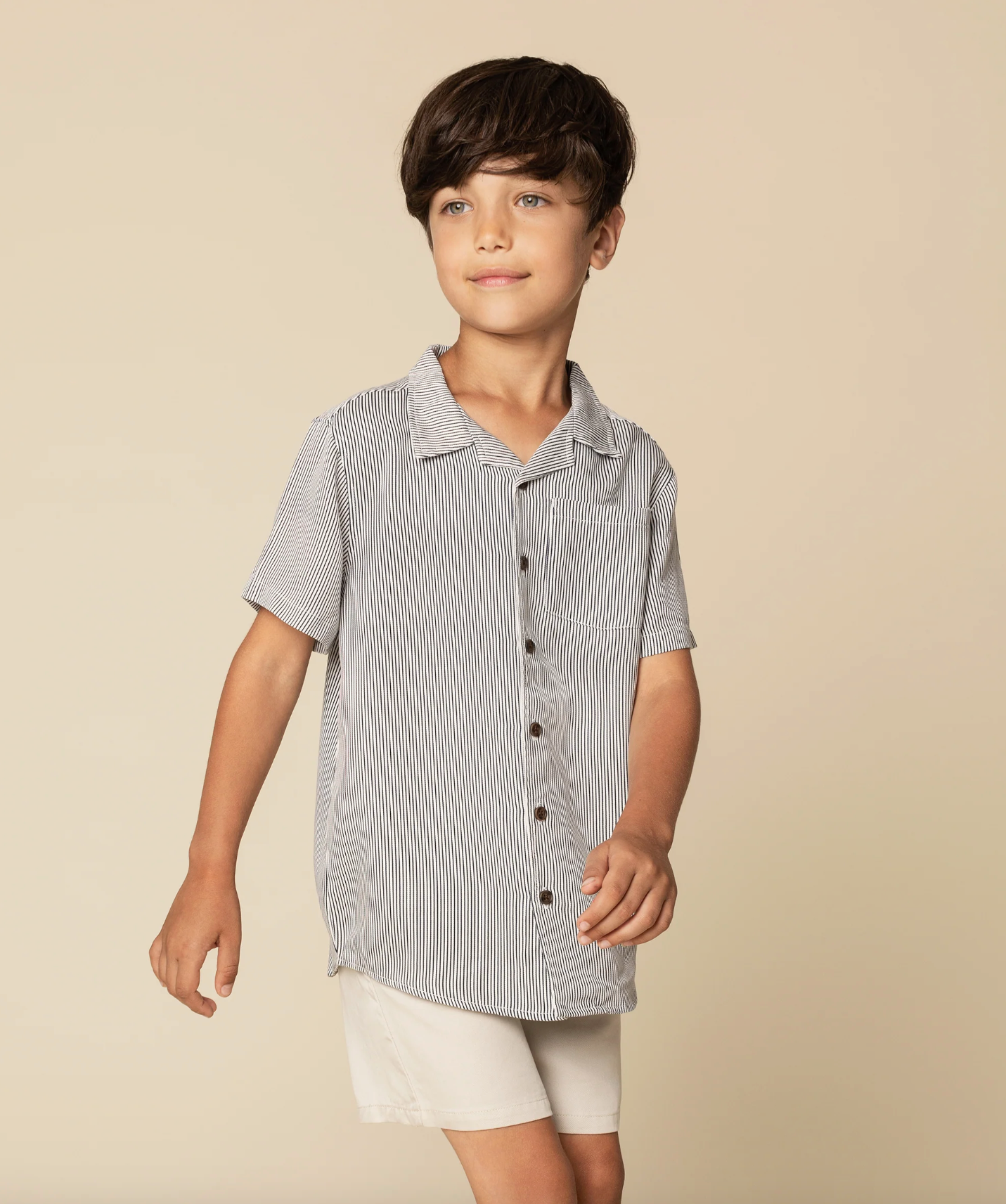 This bowling style, vintage striped shirt is perfect for a cool and quirky outfit. The shirt is made from lyocell so is super light and breathable for the warmer months. Wear buttoned up for a smart look, or buttoned down with a t-shirt and joggers for a casual all-day style.