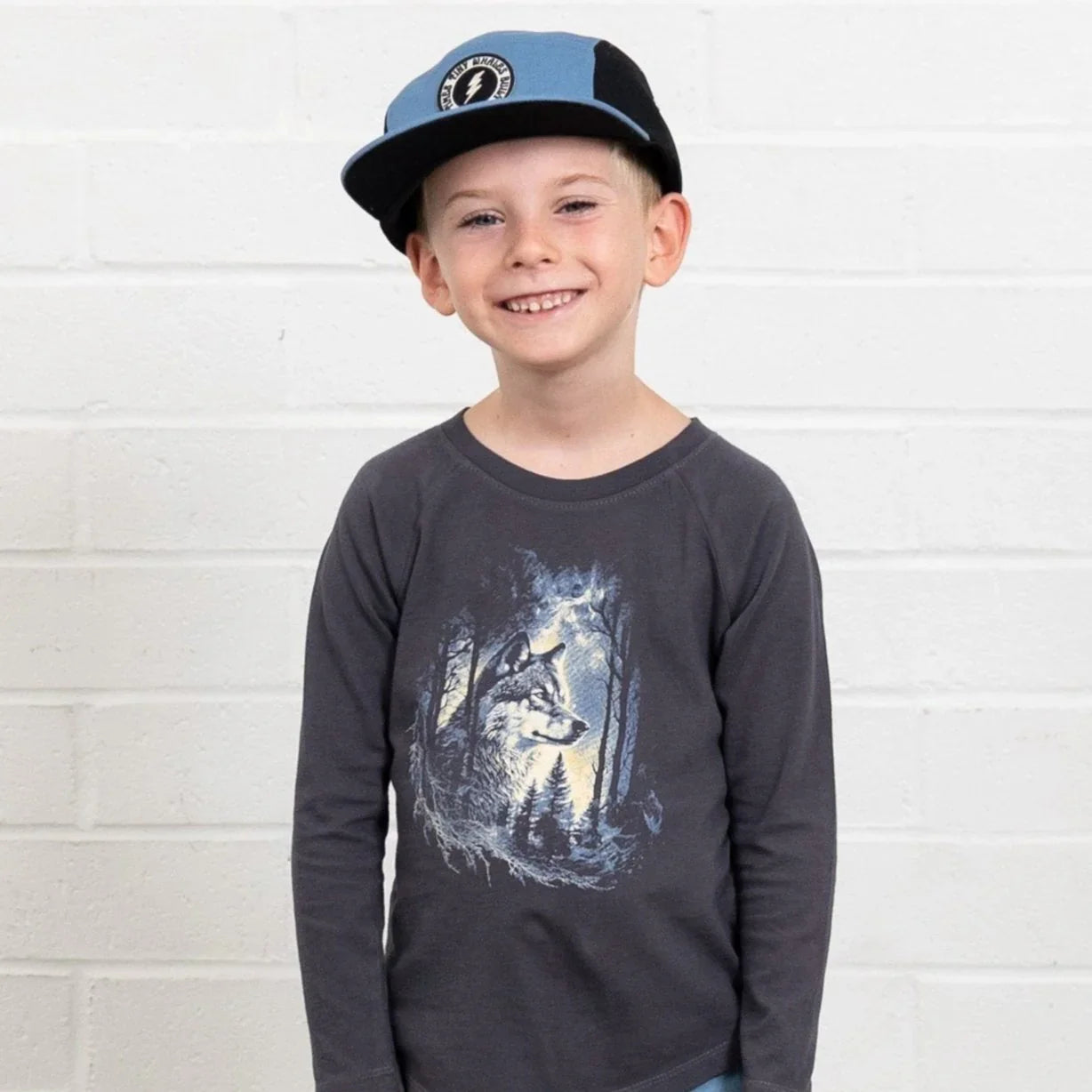 The Heed The Call Long Sleeve Tee is a cotton jersey raglan-style shirt designed for boys who love adventure. Featuring long sleeves and a bold wolf graphic on the front, this tee is as comfortable as it is cool, perfect for everyday wear.