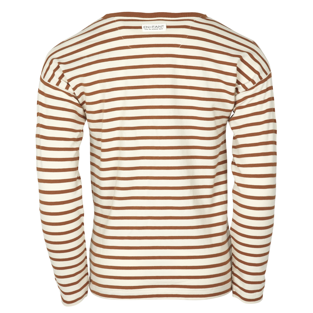 Long-sleeved shirt. The shirt has cool stripes and a soft ribbed edge at the neckline. Nice and soft quality. Pushbuttons at one shoulder.