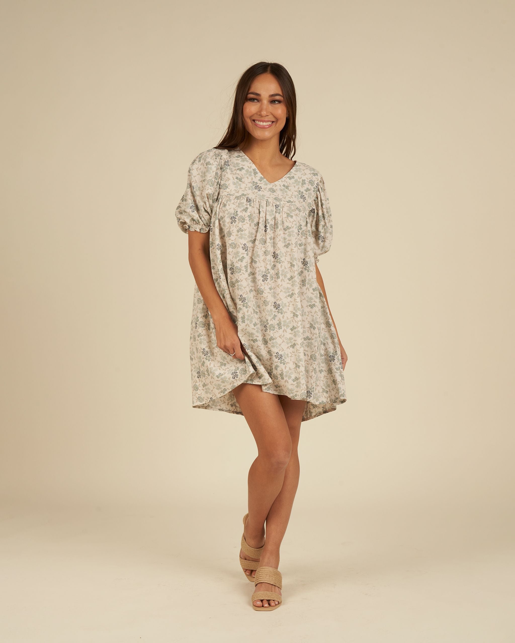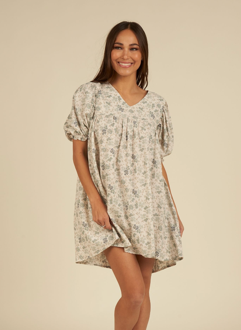 Our Jolene Dress features an empire waist dress with balloon sleeve and a shell button keyhole.