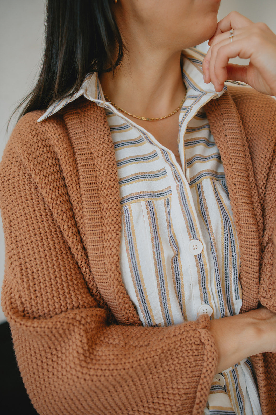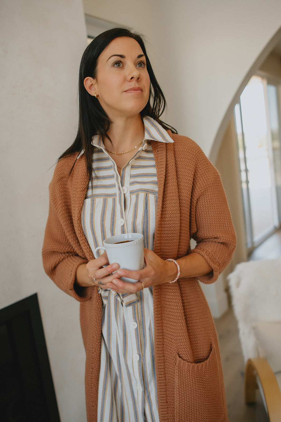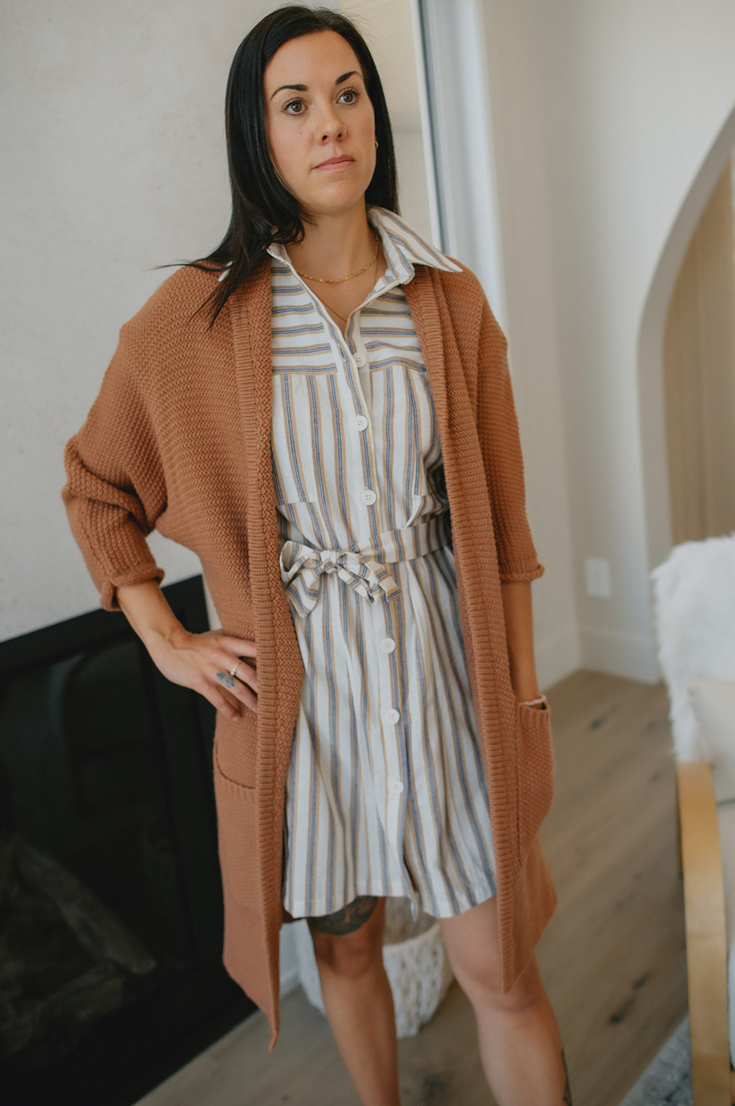 Introducing our signature design, The Erinn Cardigan! A one-of-a-kind open-front cardigan that delivers style with a generous length and roomy pockets. It looks so great around the house or while running errands, you might as well call it your take-it-everywhere sweater!
