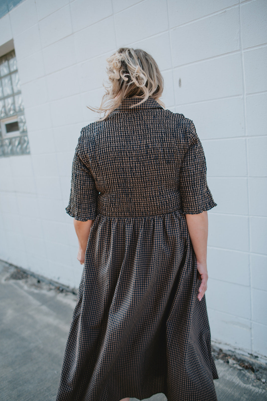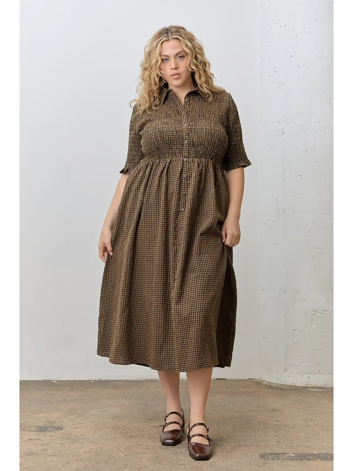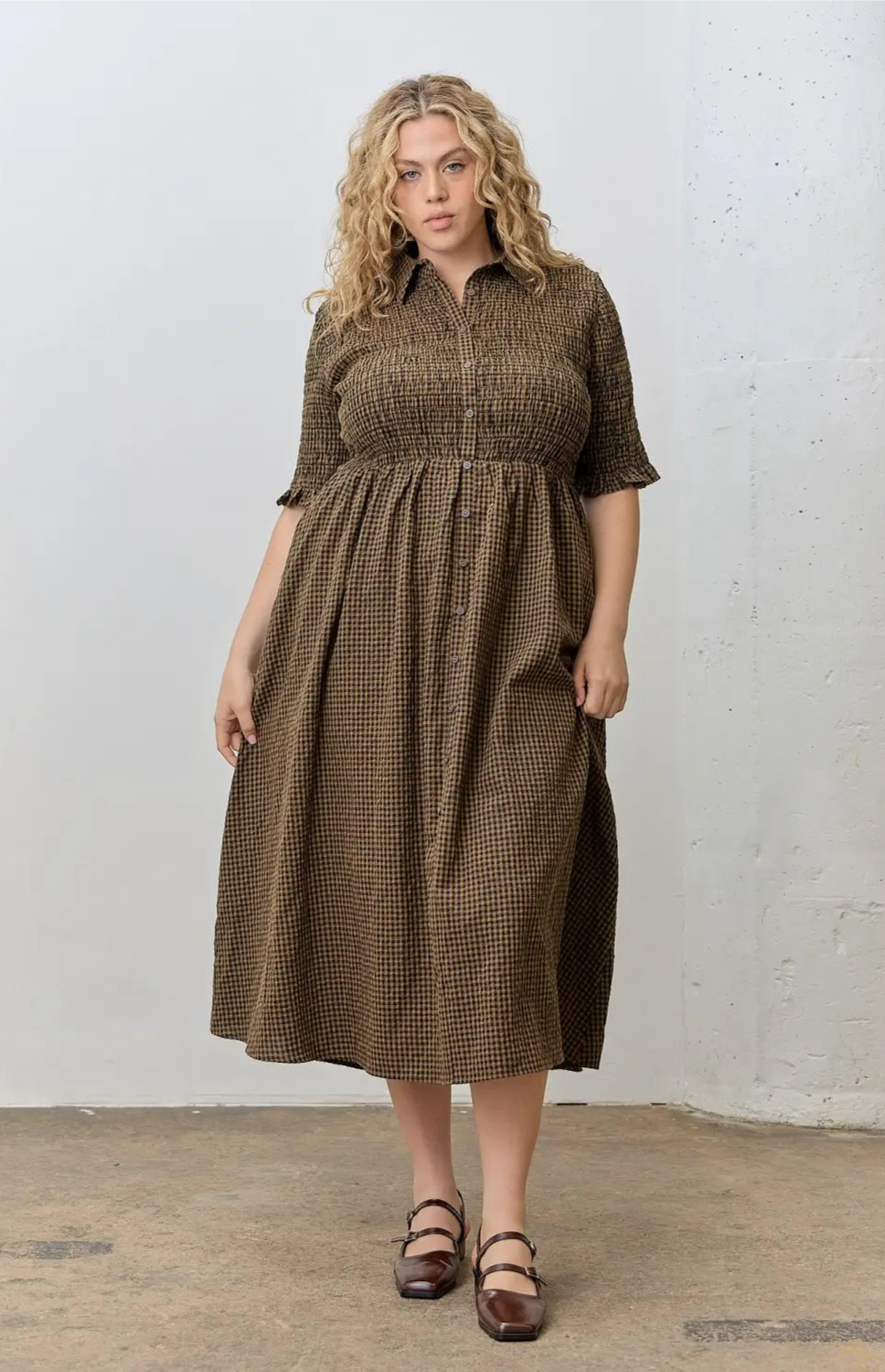 The Heritage Button Up Midi Dress - Mocha Gingham - PLUS
