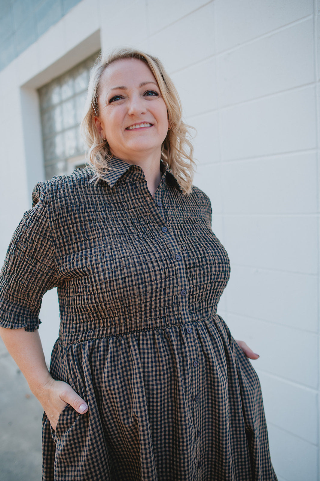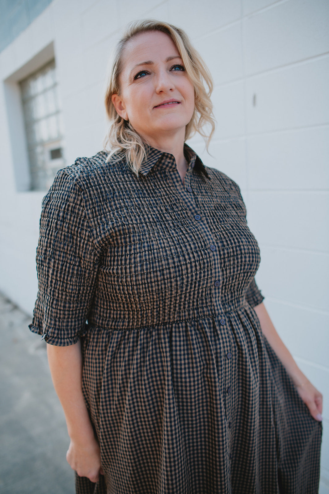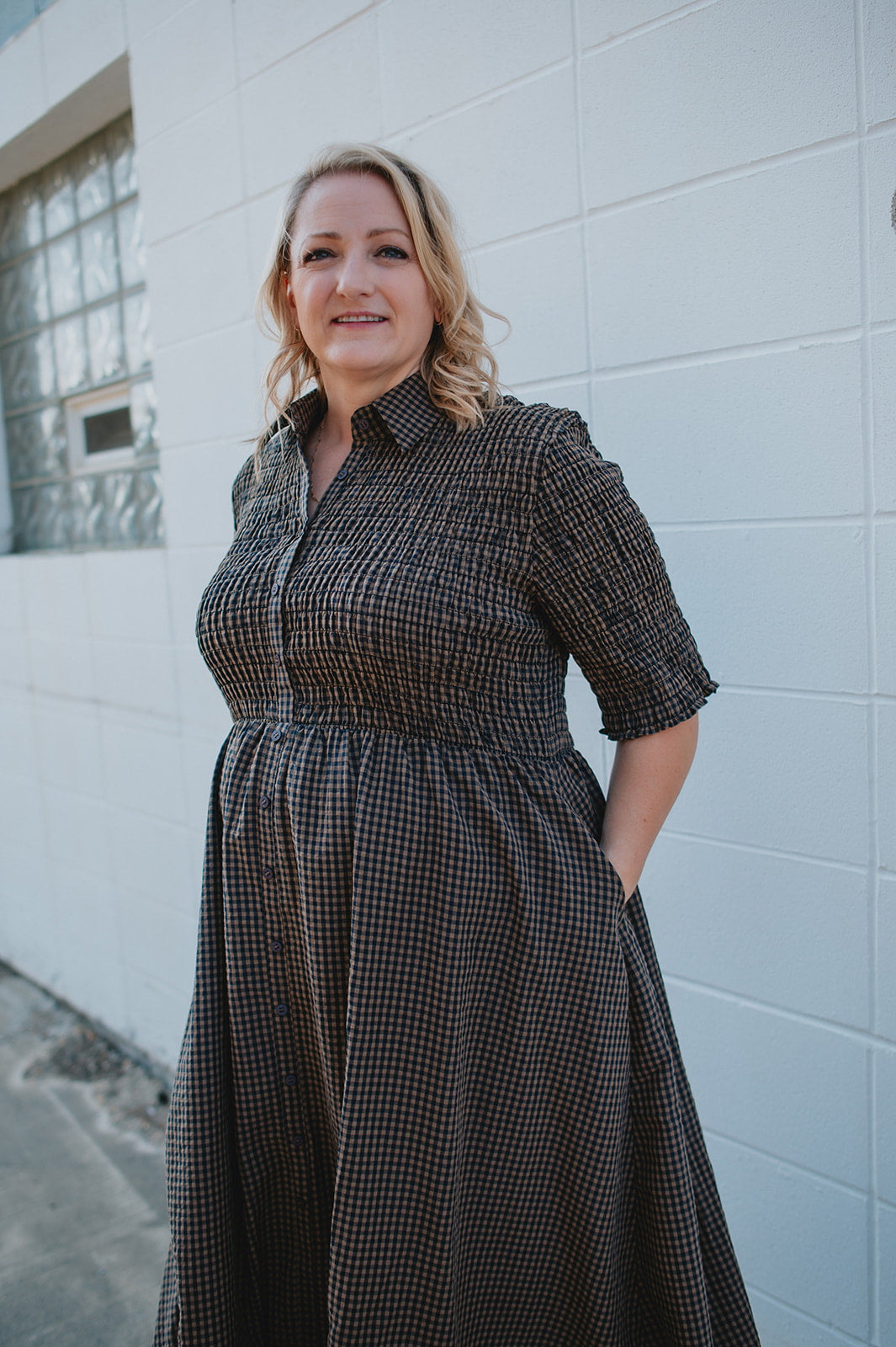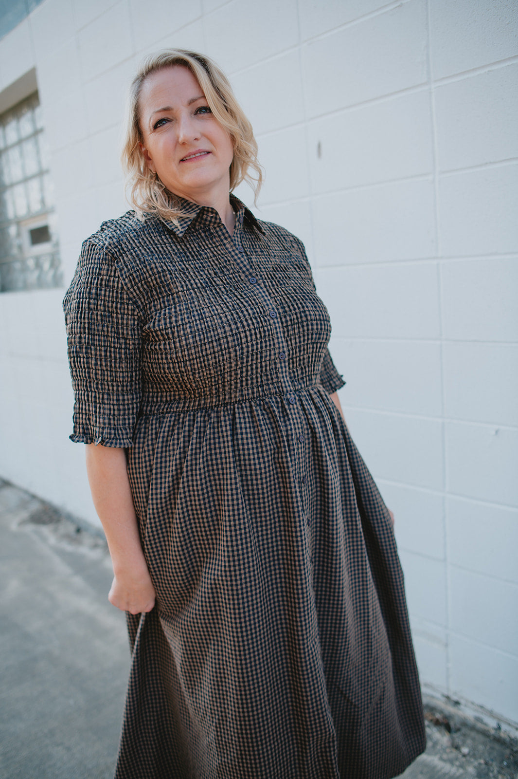The Heritage Button Up Midi Dress - Mocha Gingham - PLUS