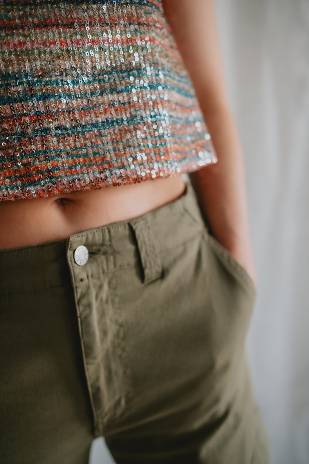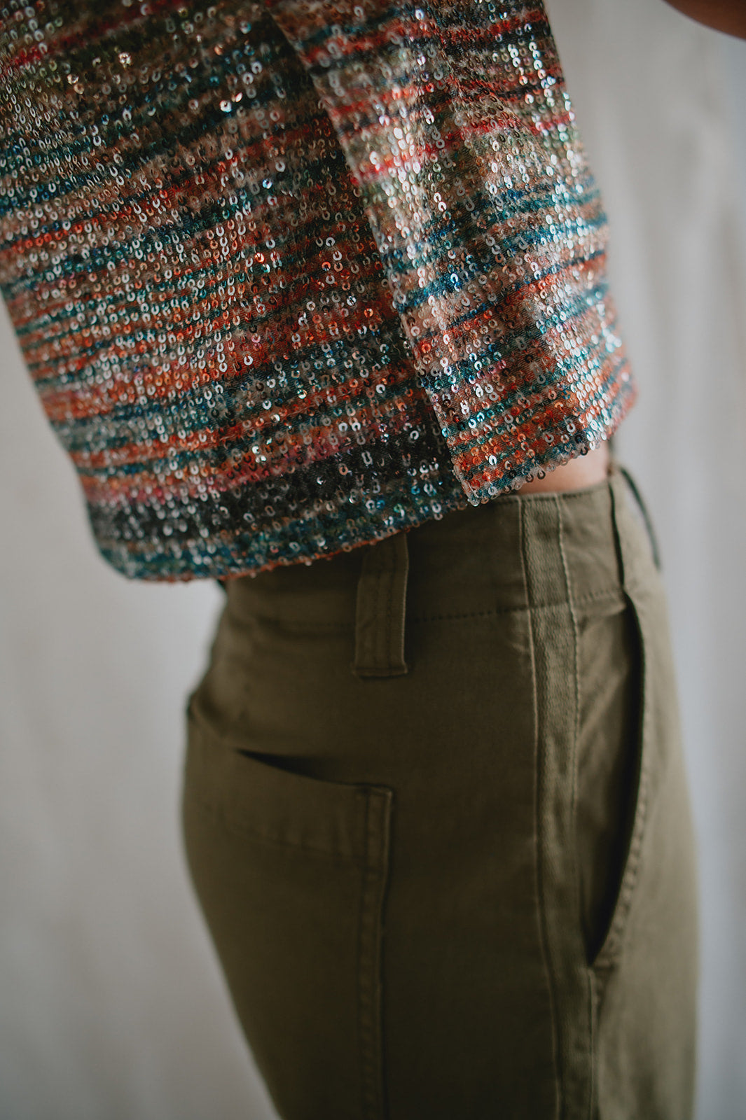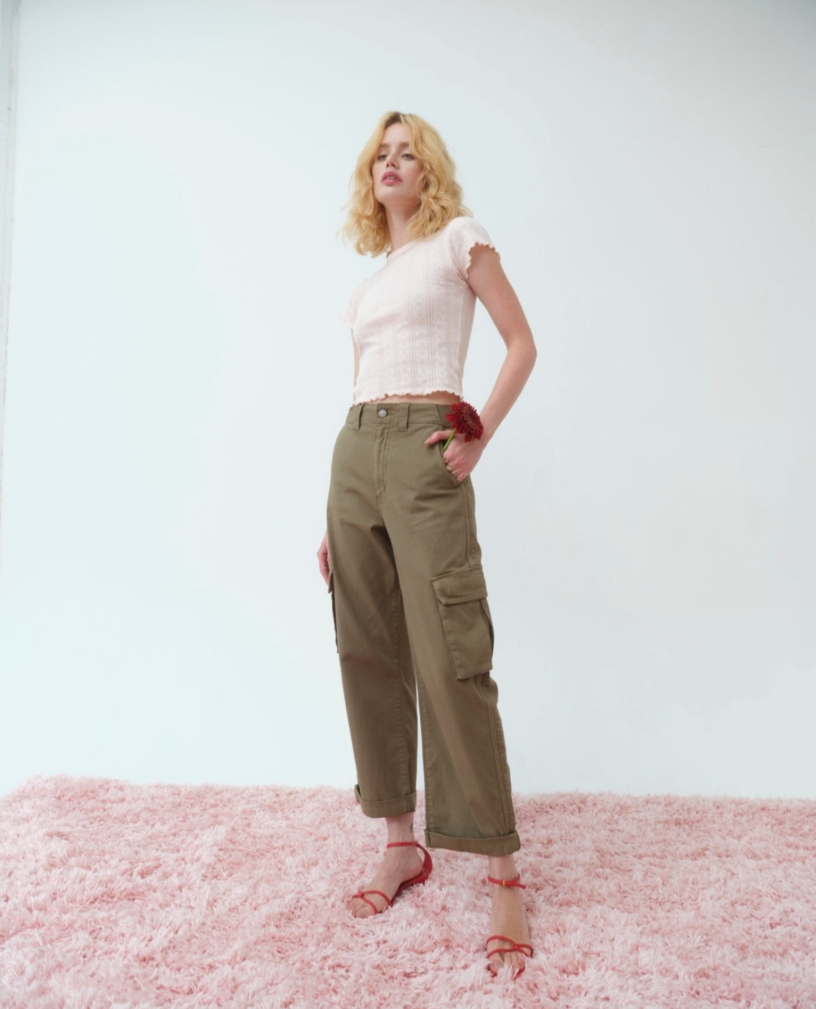 A combination of utility and high end, this structured cotton pant features a single cargo pocket on the side of each leg.