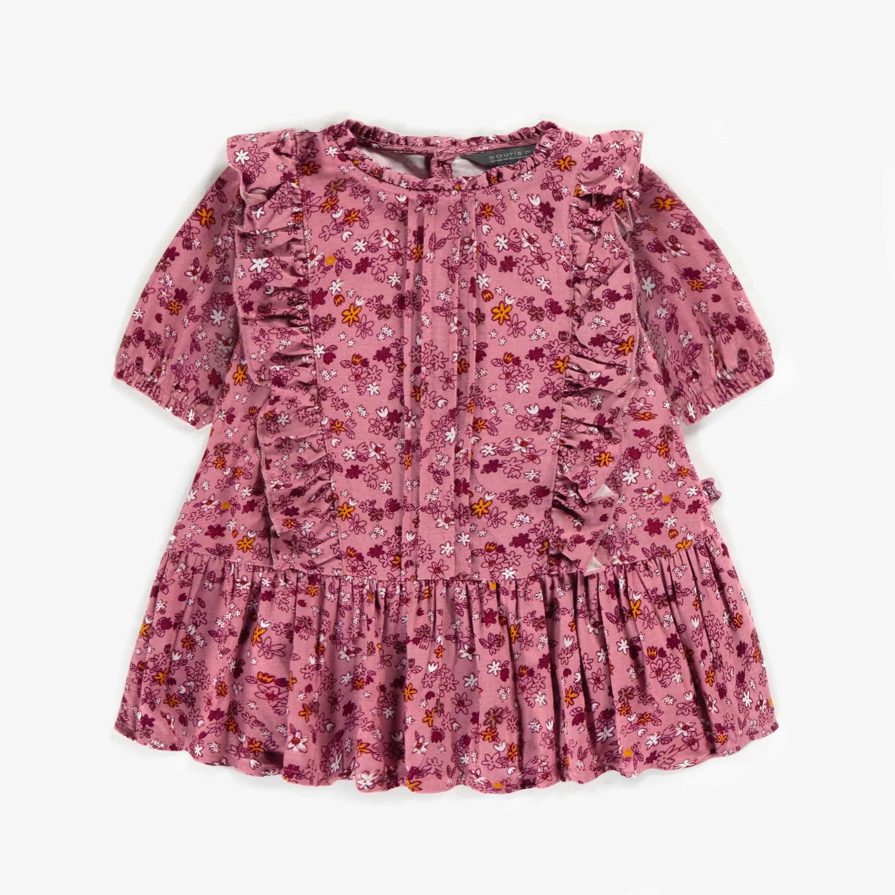 Pink floral dress, perfect for mid-season chic looks. Your mini will be so comfortable in this dress made of soft, flowing viscose.